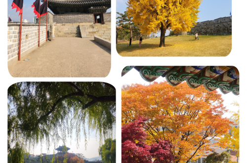 Je vous emmène de nouveau dans la ville de Suwon située à 1h au sud de Séoul, ville que j’aime beaucoup. Elle fait très clairement partie de mes trois villes préférées en Corée-du-Sud, et après mon article sur une journée estivale à Suwon, et une journée hivernale à Suwon, j’avais très envie de vous partager quelques-unes de mes photos prises lors de mes trois mois en Corée durant l’automne. L’automne étant une saison particulièrement incroyable à voir au pays du matin calme, j’ai pris beaucoup de photos ce jour-là et j’avais envie que vous voyez la ville avec les magnifiques couleurs jaune orange et rouge. Donc l’alliance entre une ville…