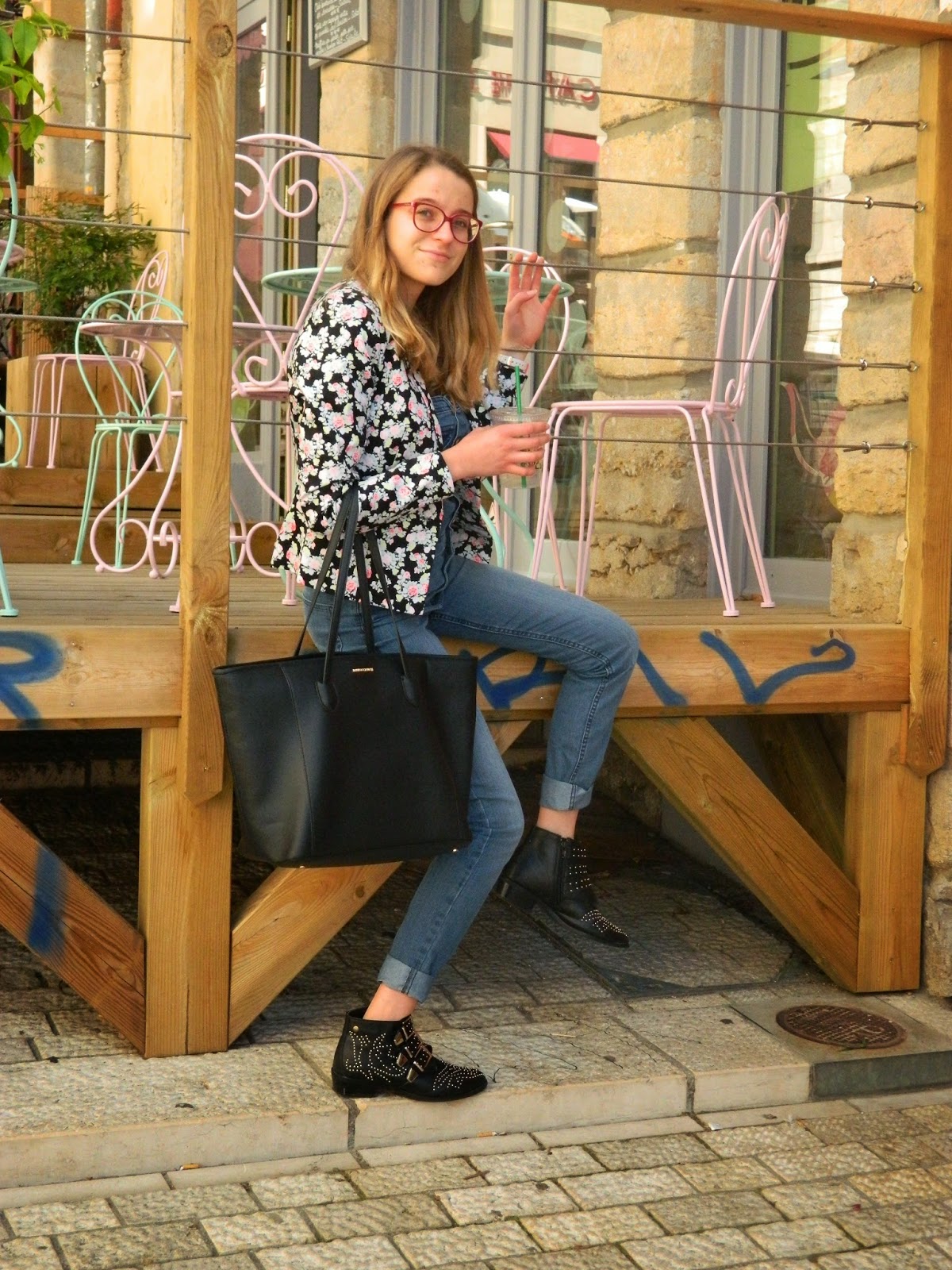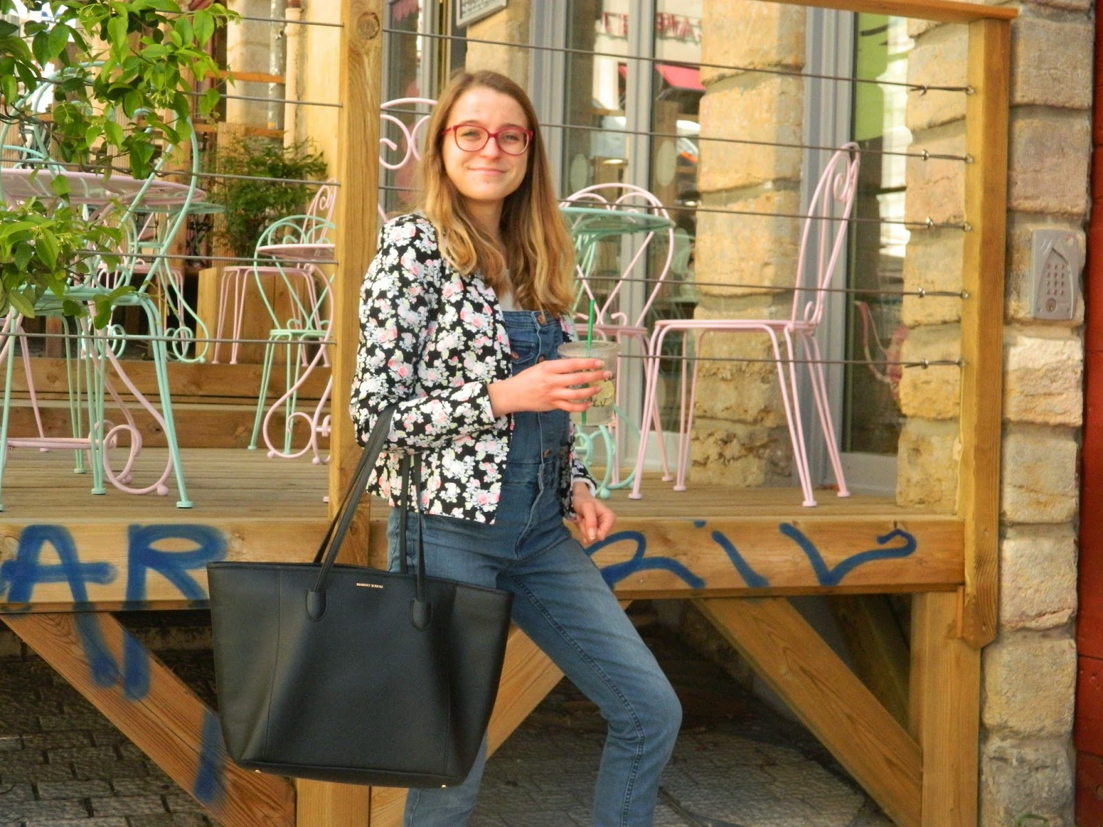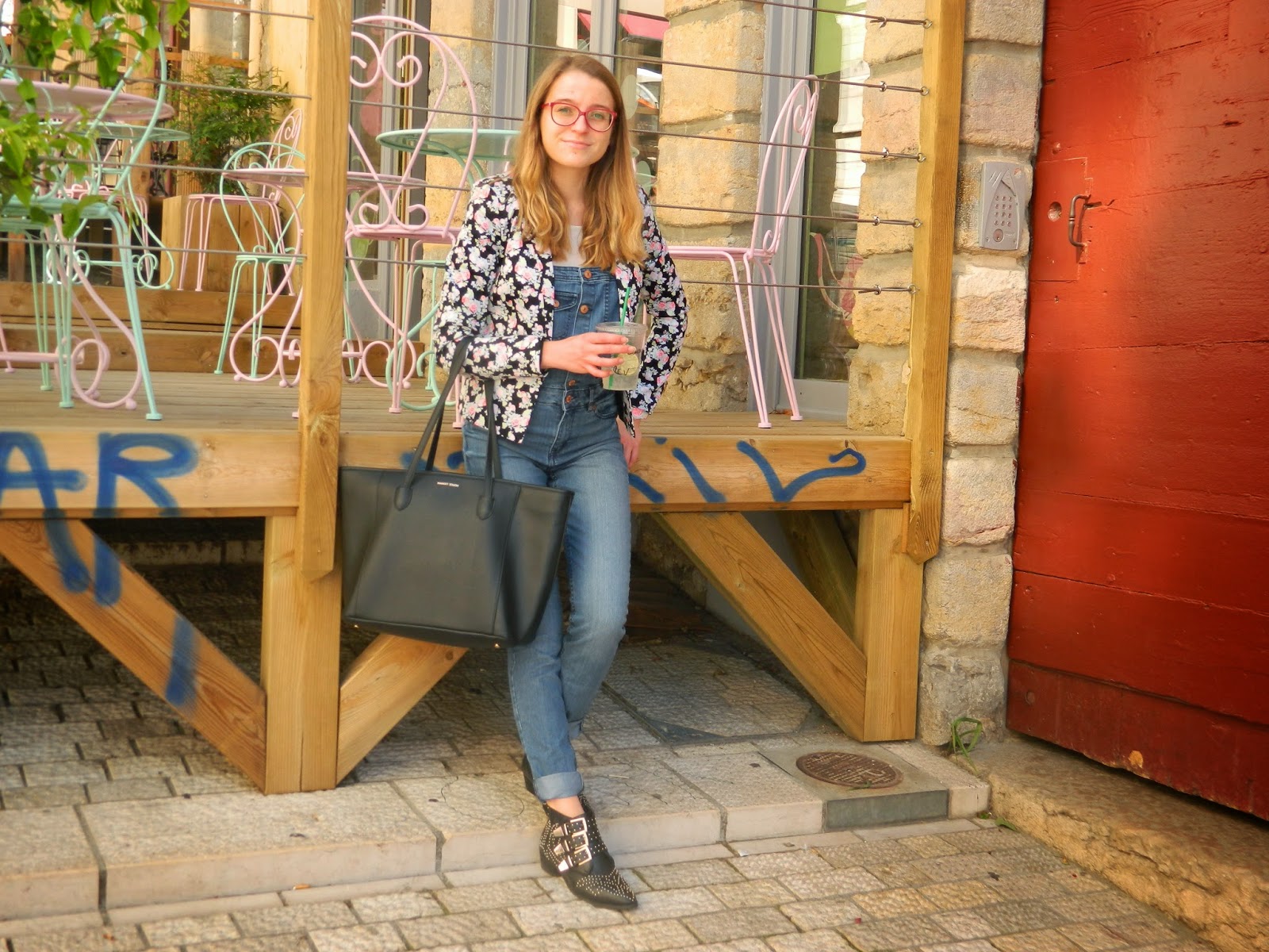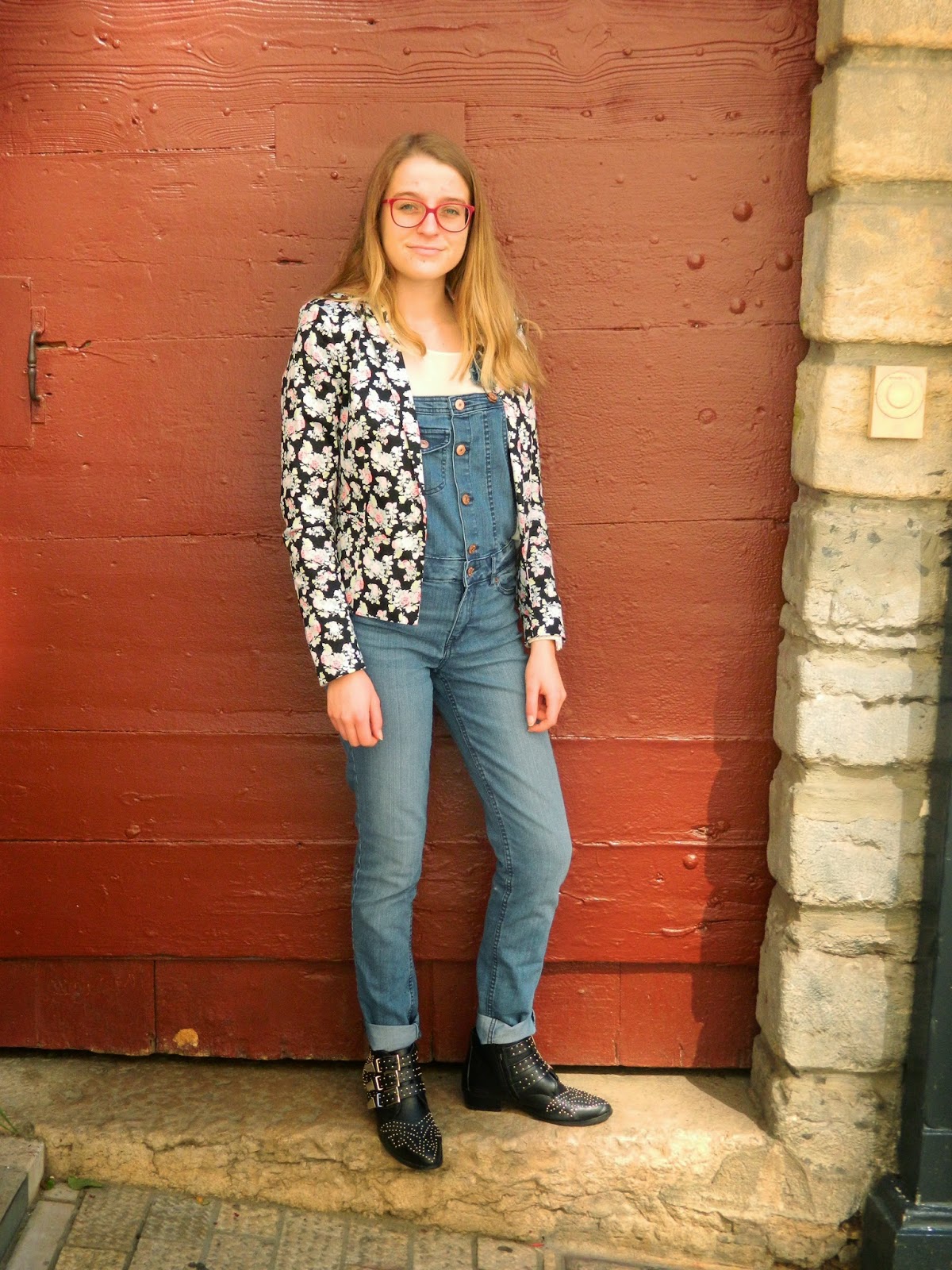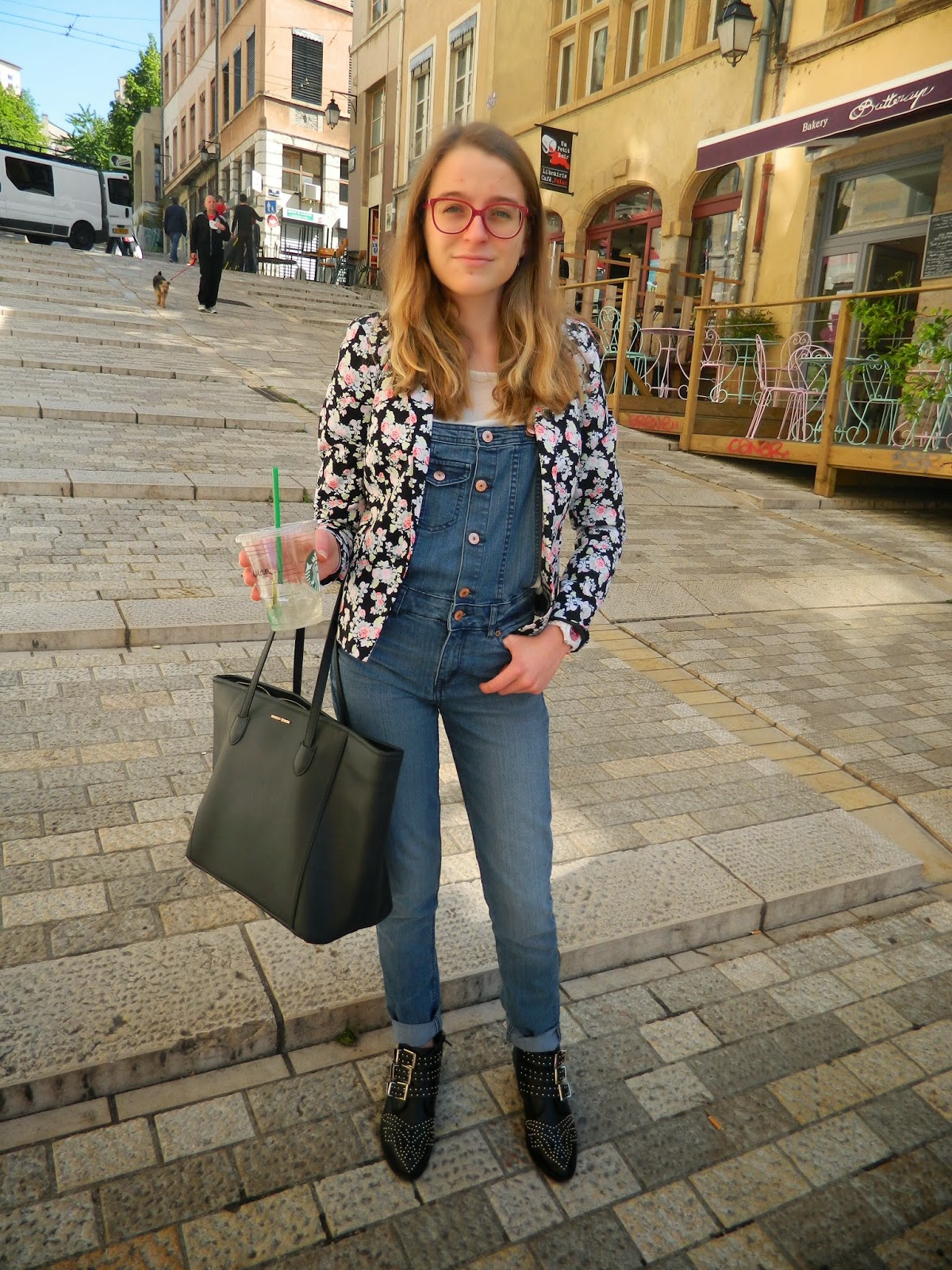 Veste/Jacket: Jennyfer; Salopette/Dungaree: H&M; Blouse/Shirt: Carré d’Ivoire; Sac/Bag: Mango; Bottines/Booties: Moa