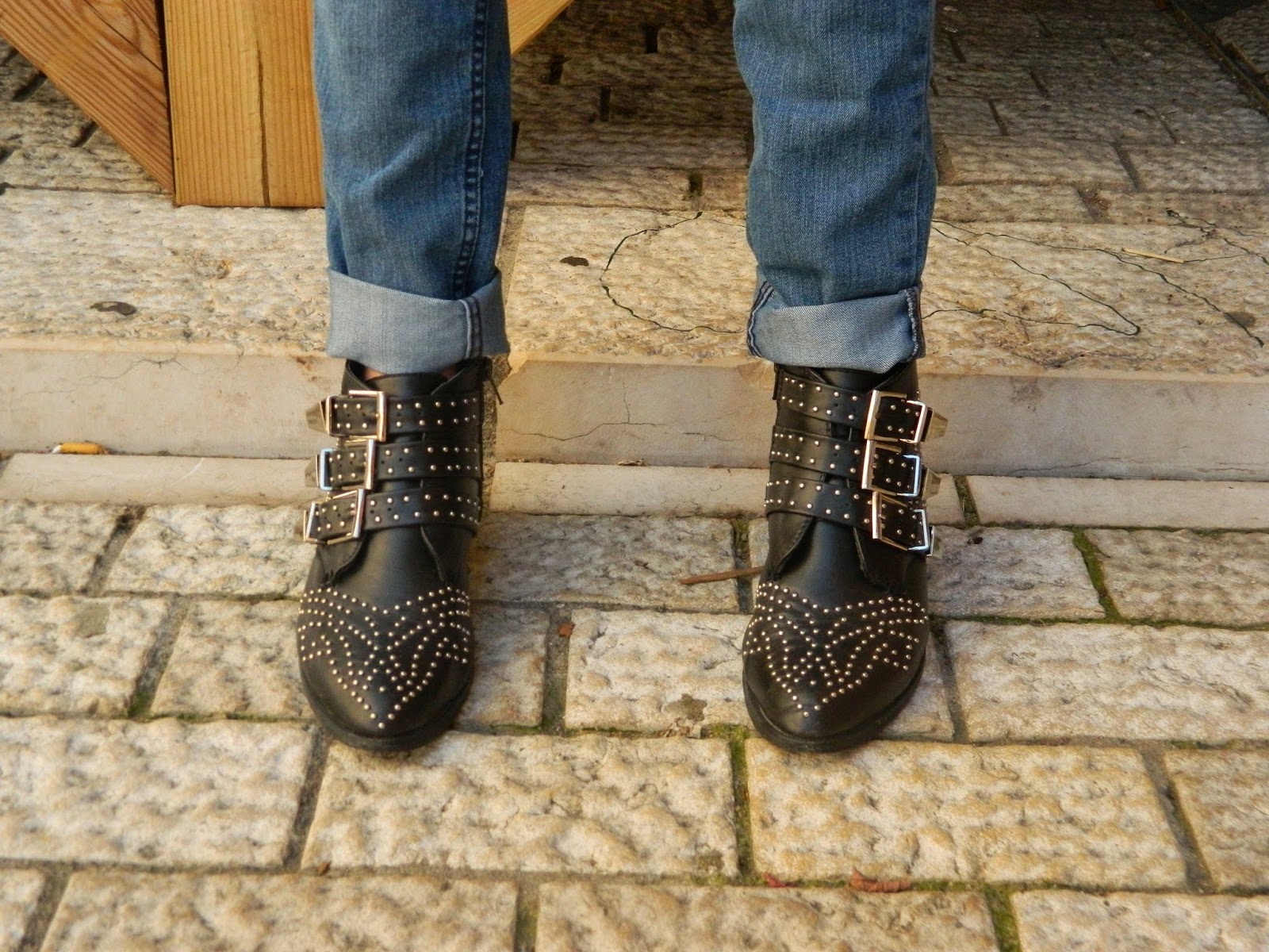 D’ailleurs, je me rends compte en mettant les libellés, que je ne vous ai jamais présenté ces bottines. Je les avais repérées il y a des mois mais à 50€, je n’avais pas trop envie. Et puis j’y retourne plusieurs fois et là elles baissent progressivement. Jusqu’à ce que je passe un jour de soldes où elles étaient à 10€! A ce prix-là, je n’ai pas réfléchi 30 heures. Il ne restait que du 39 et du 41. Je fais du 38. Aucune importance, elles étaient à peine trop grandes. Embarquées les cocottes.