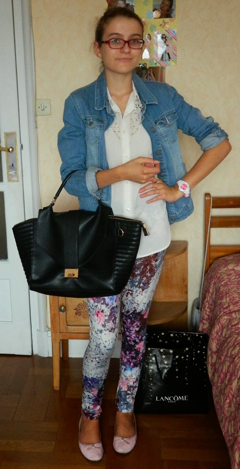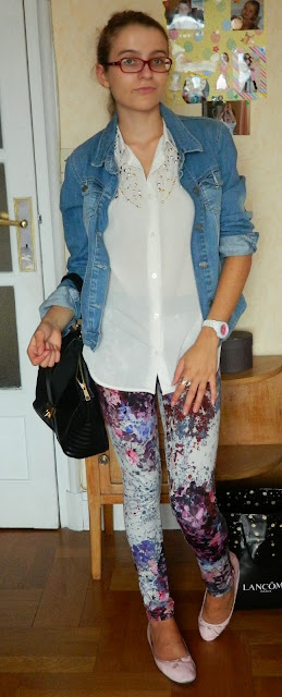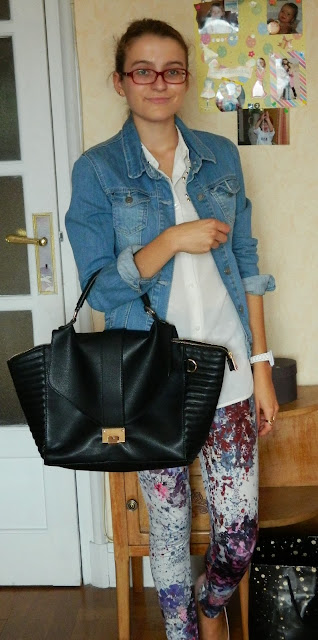 Veste/Jecket: Pimkie; Top/Shirt et legging: H&M; Bague/Ring: New Look( ne se voit pas très bien); Sac/Bag: Pimkie; Ballerines/Ballerinas: Benetton.