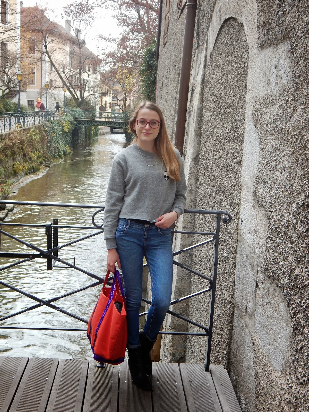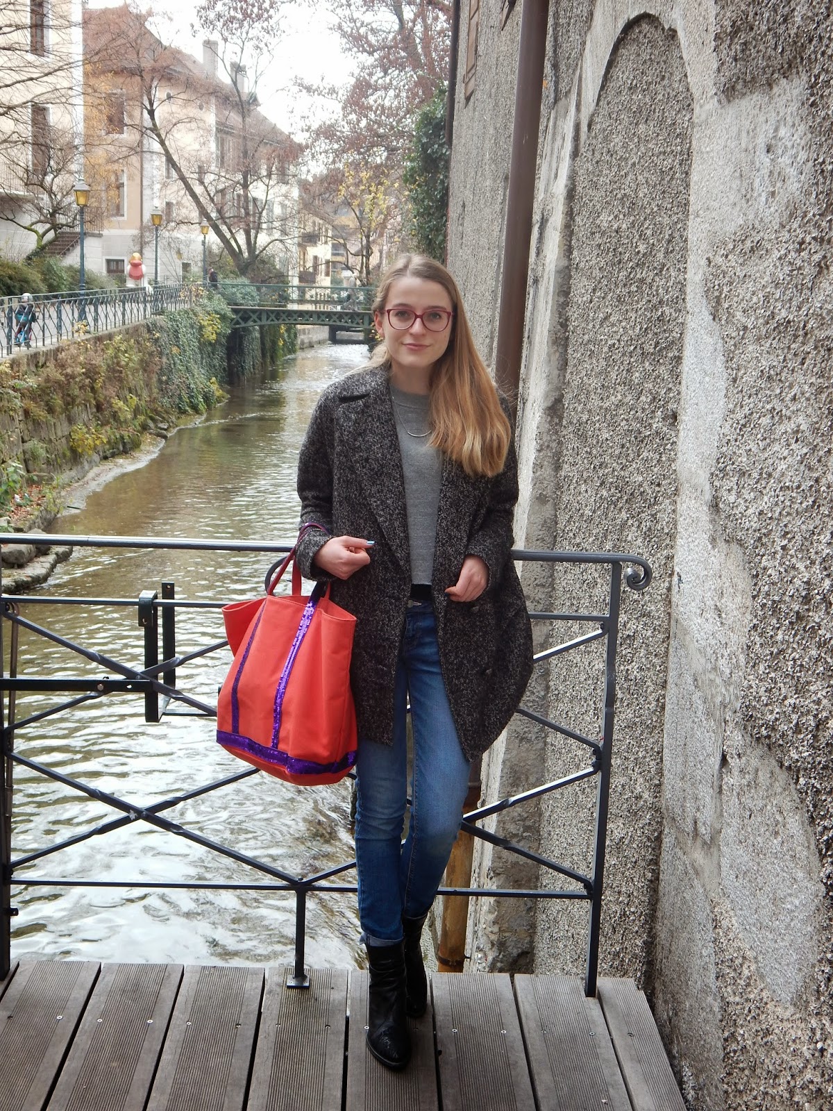 Manteau/Coat: Pimkie; Sweat/Sweater; Collier/Necklace: Brandy Melville; Jean: Zara; Sac/Bag: Vanessa Bruno; Bottines/Booties: Elite; Rouge à lèvres: Etam