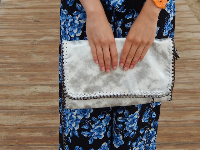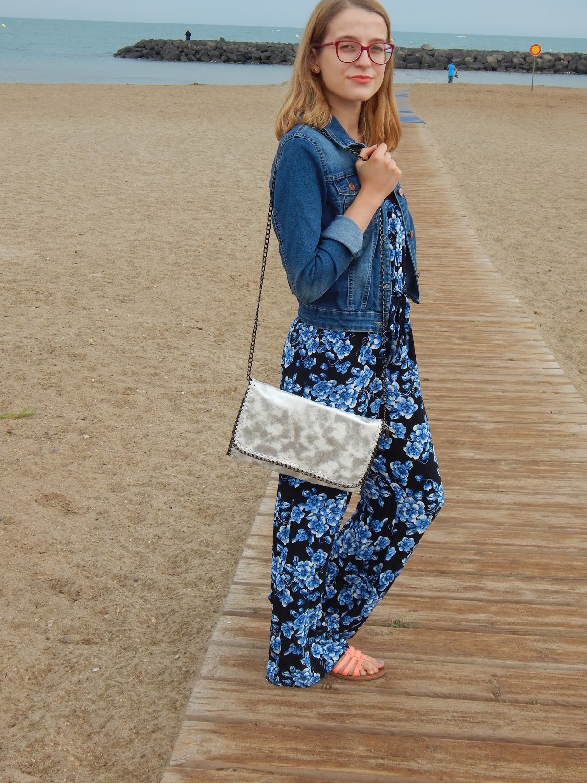 donc je ne suis pas totalement folle. En plus je m’en fichais, je ne connaissais personne, et laisser ma peau respirer était une bonne idée. Ce soir-là donc, c’était une des rares fois où j’ai fait un peu un effort en prévision d’un look à shooter. Un peu de fond de teint, mon Vegas Volt de MAC sur les lèvres et c’était tout. Ma peau se portait plutôt pas mal, j’avais quasiment aucun bouton, et mes cicatrices disparaissaient, ce n’est plus le cas en ce moment… Syndrome post-été sûrement… Il ne faisait tout de même pas très chaud, c’est pour ça que j’avais opté pour la combo-pantalon, et aussi parce que je ne travaillais pas. Ne pouvant pas porter de combis ni de robes et jupes au boulot, j’en profitais dès que j’avais l’occasion. Cette combi, je vous l’avais montrée l’été dernier ici. Cette fois-ci, une petit veste ne fait pas de mal, ( je vous l’ai montrée dans ma vidéo Haul. Cette pochette argentée, vous l’avez vue ici, mais dans cette série, c’était la première fois que je la portais. Petit inconvénient: l’ayant achetée dans une petite boutique de vacances, ce n’est pas de la super qualité, et l’intérieur sent le poisson. Véridique.