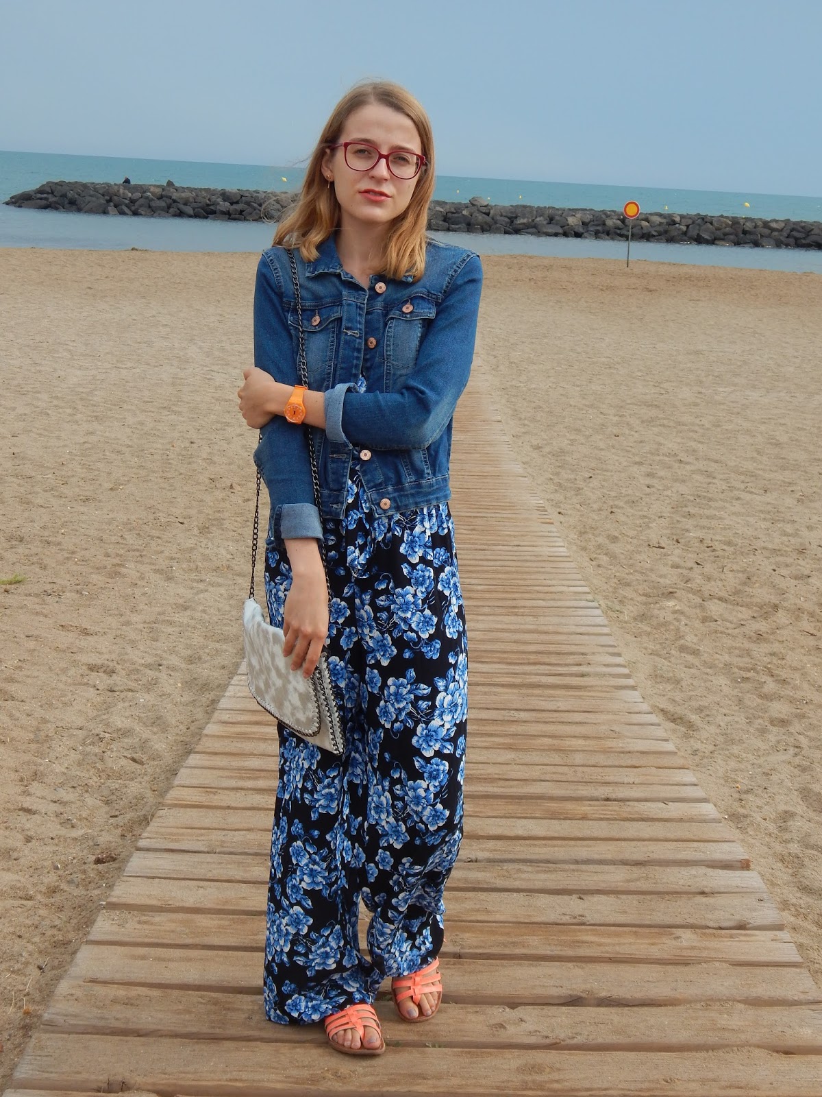 Combinaison/Overall: New Look; Veste/Jacket: Asos; Rouge à lèvres/Lipstick: Vegas Volt de MAC; Pochette/Clutch: achetée à Vias plage; Montre/Watch: Swatch; Sandales: Tropéziennes