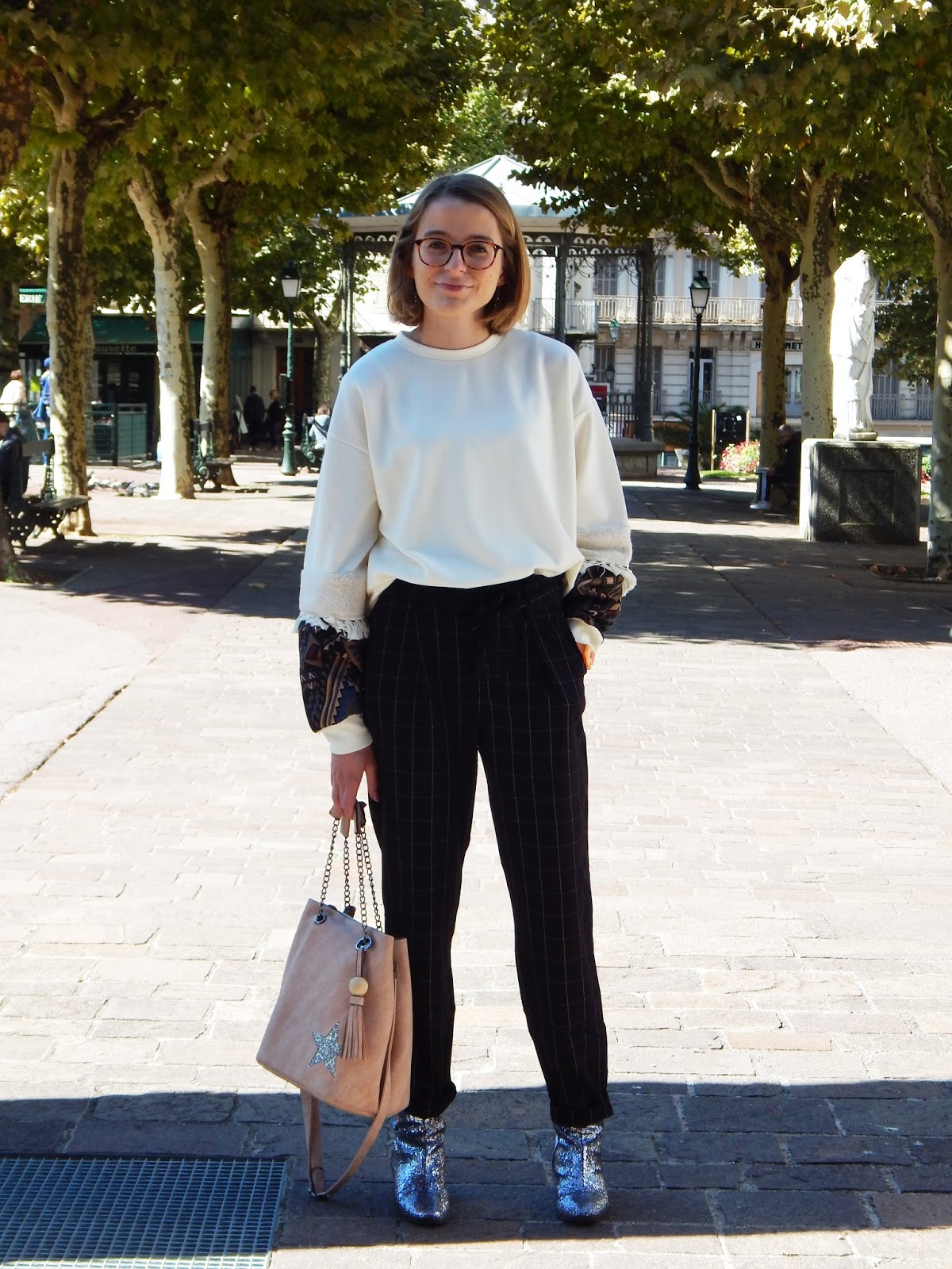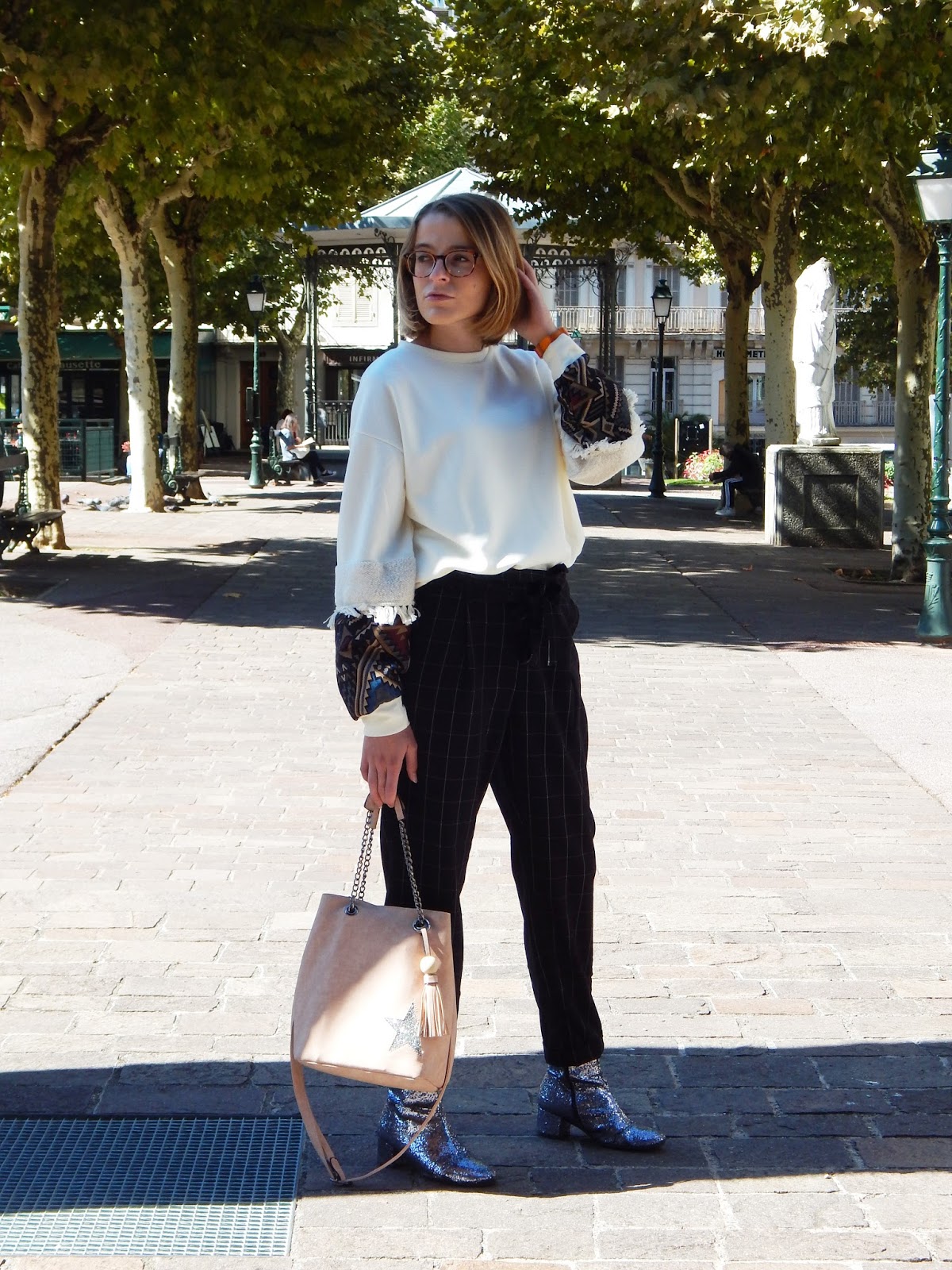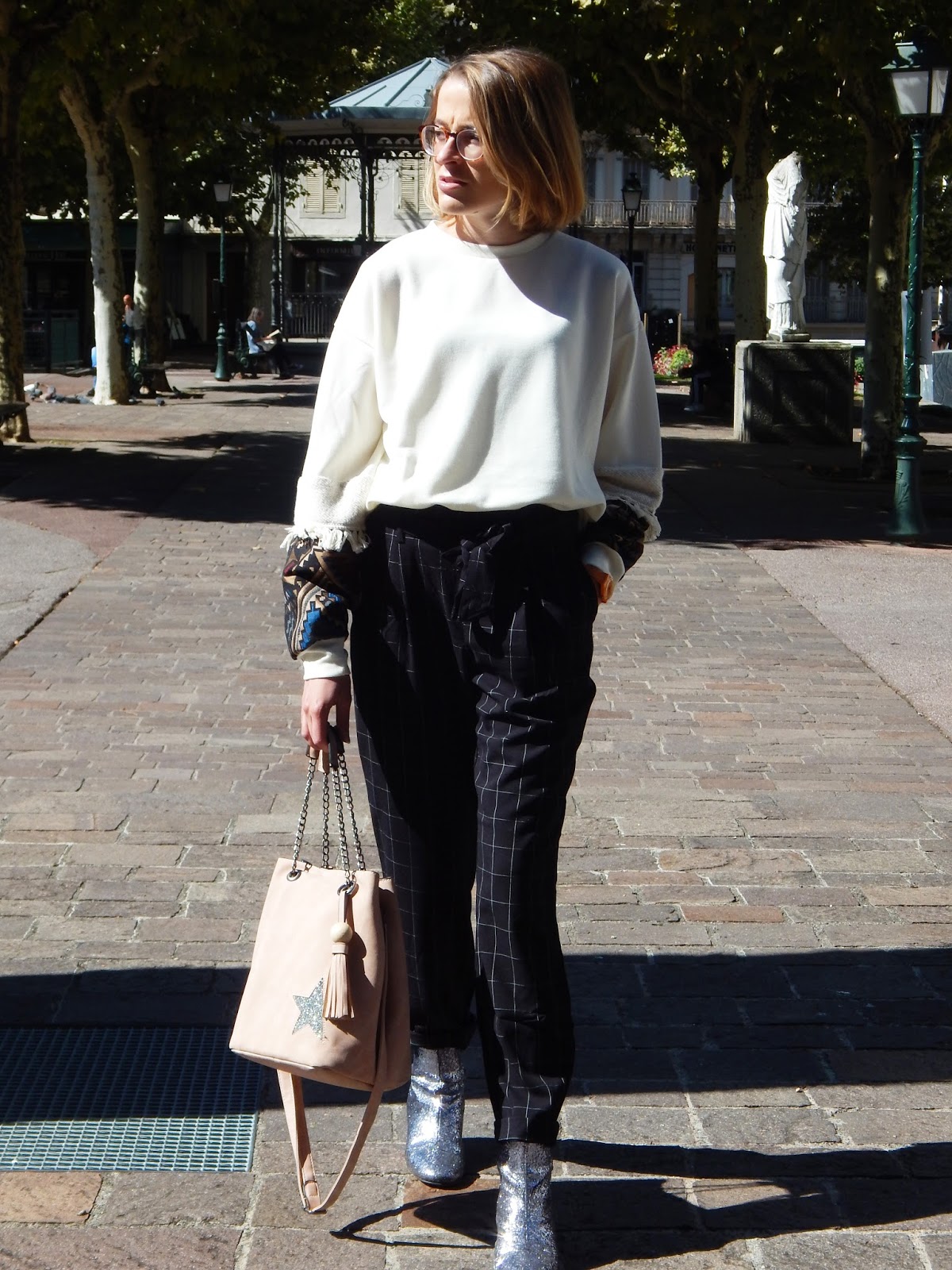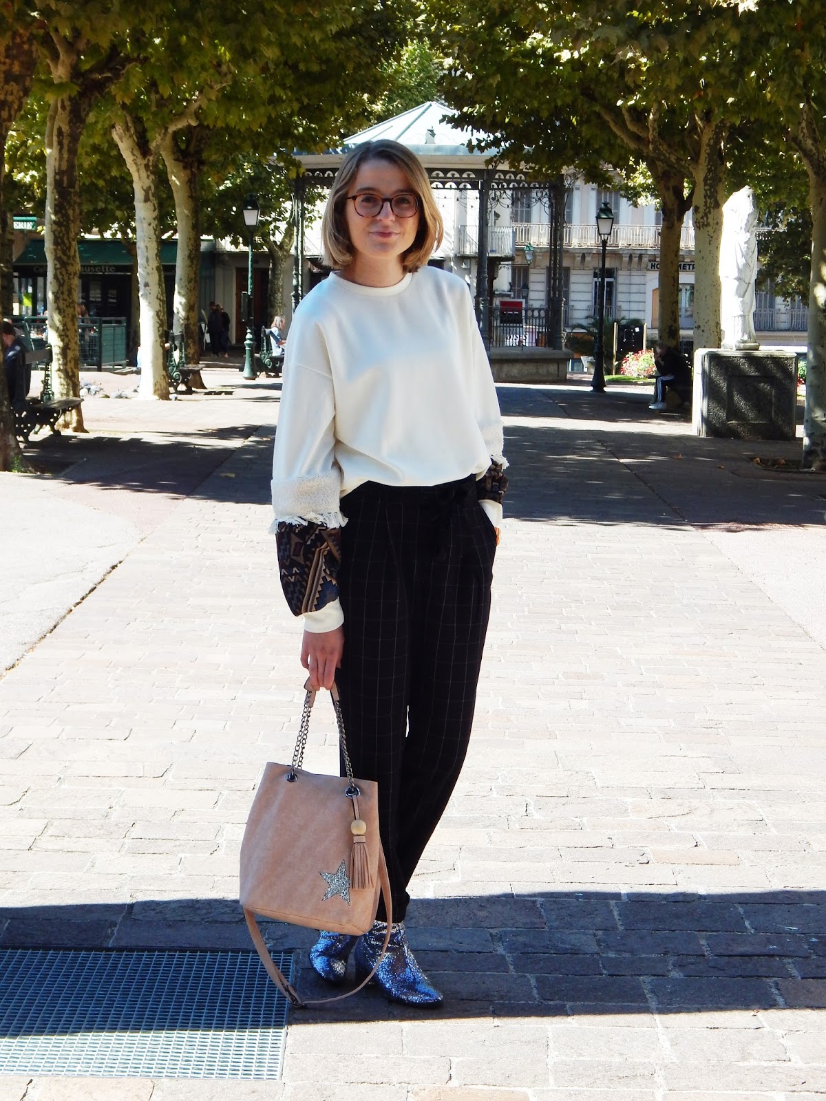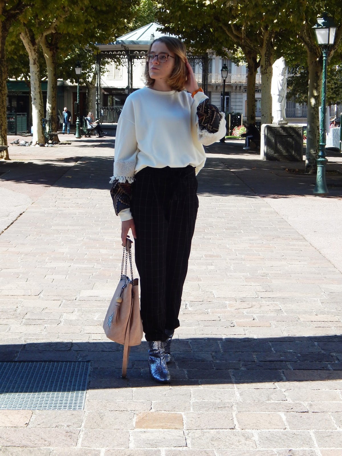 Sweat, Pantalon/Pants: Stradivarius; Sac/Purse: Mandoline; Bottines/Booties: Texto