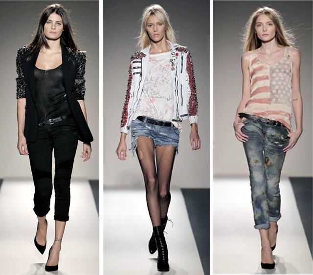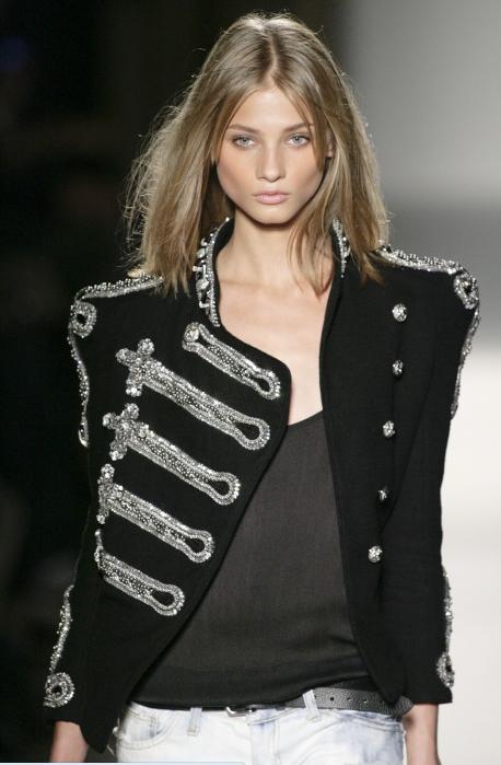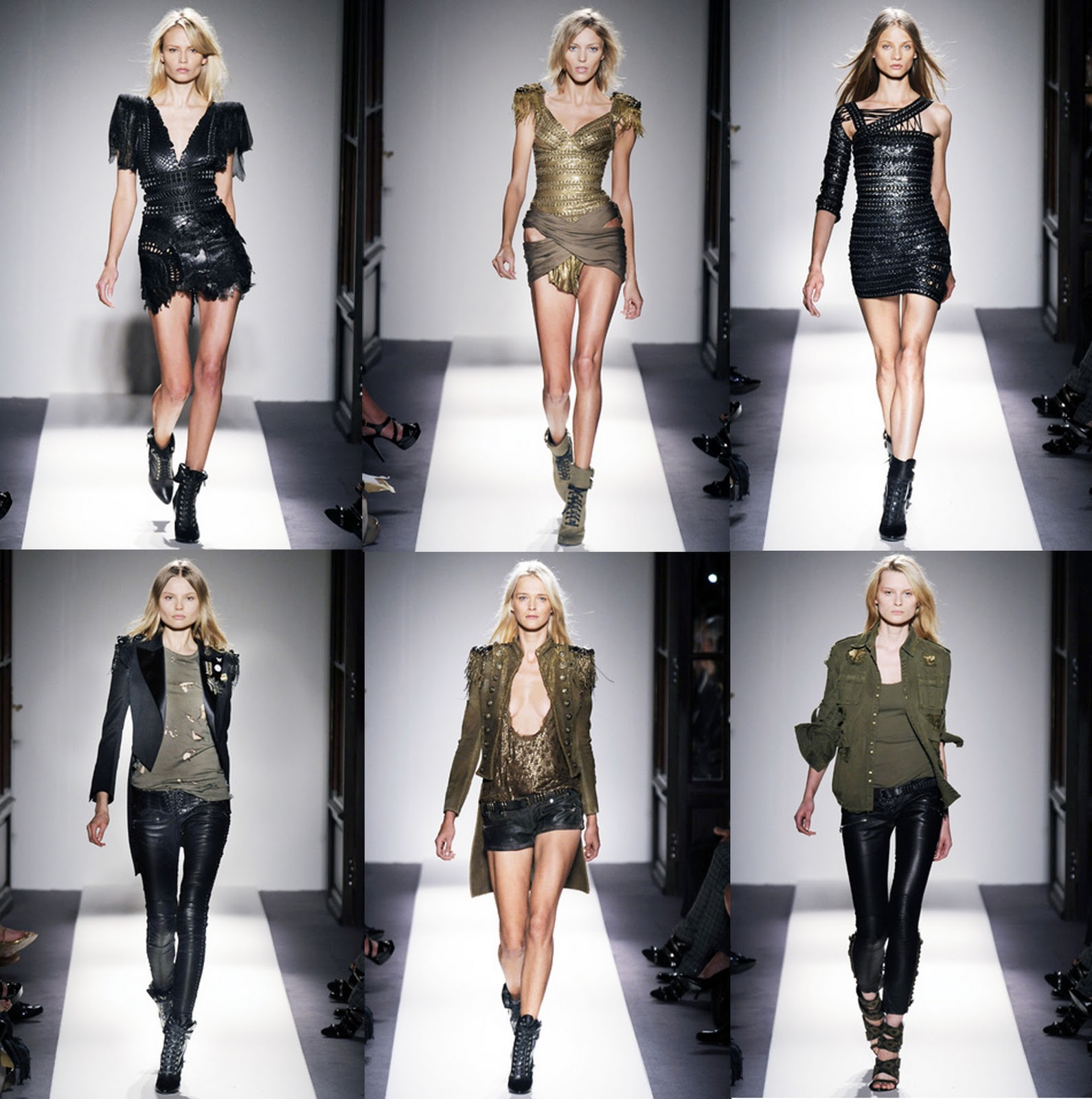 Différentes tenues Balmain avec l’esprit army, cuir et perf, très présent