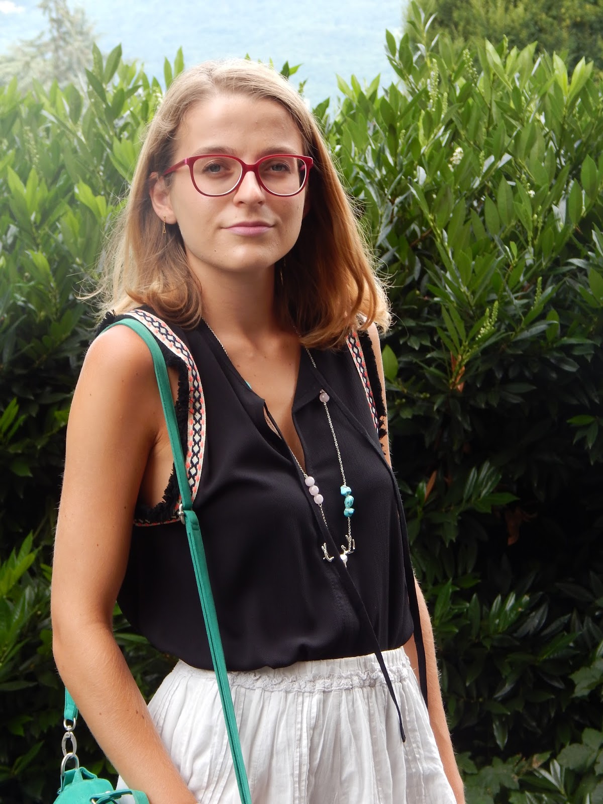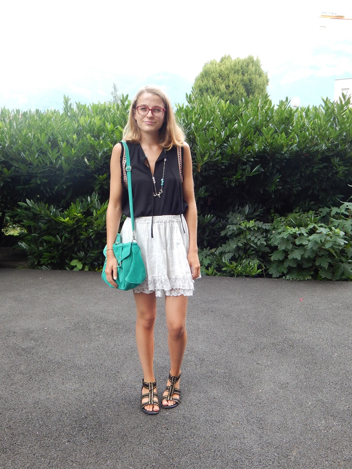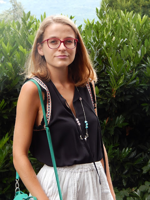Haut/Top: Version féminin chez Carré d’Ivoire; Jupe/Skirt; Sac/Purse: Pimkie; Sandales/Sandals: New Look sur Asos; Collier/Necklace: Indilly