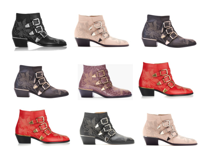 Les Susanna de Chloé, en rouges. Tellement rock, j’adore! Les peoples, les blogueuses les ont adoptées, ce ,’est pas pour rien! Mais elles sont un peu chères quand même: 950€ environ.