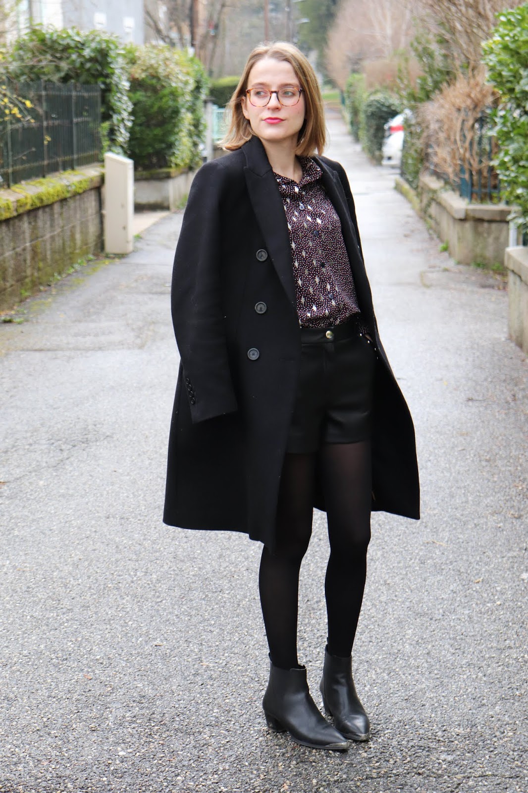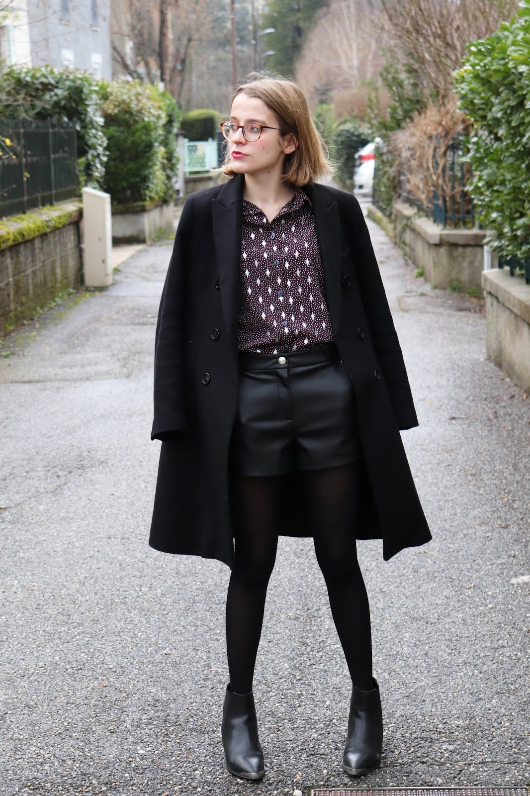 Manteau/Coat: Zara; Chemise/Shirt: Vintage Love; Short: Mango; Bottines/Booties: Office sur Asos;