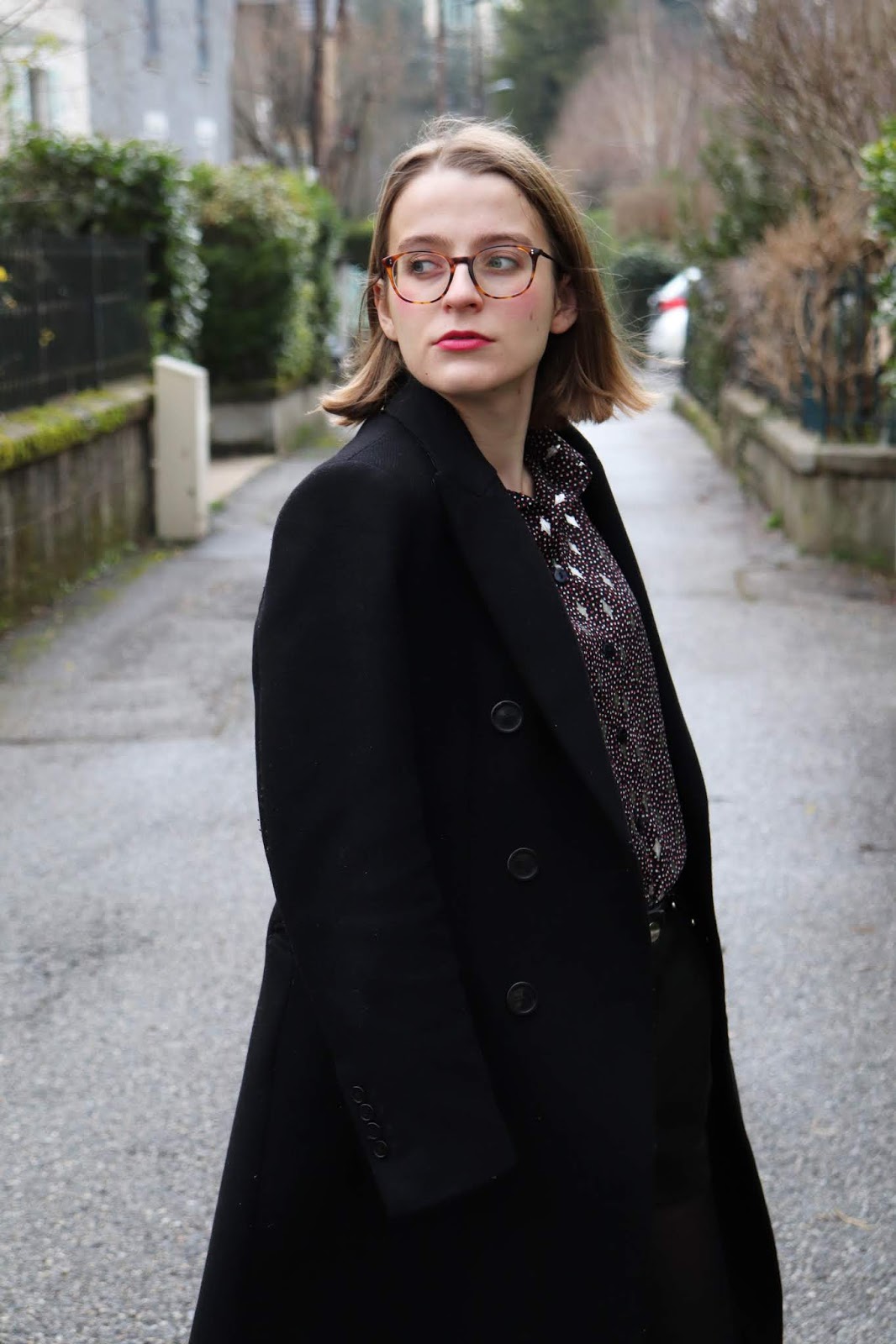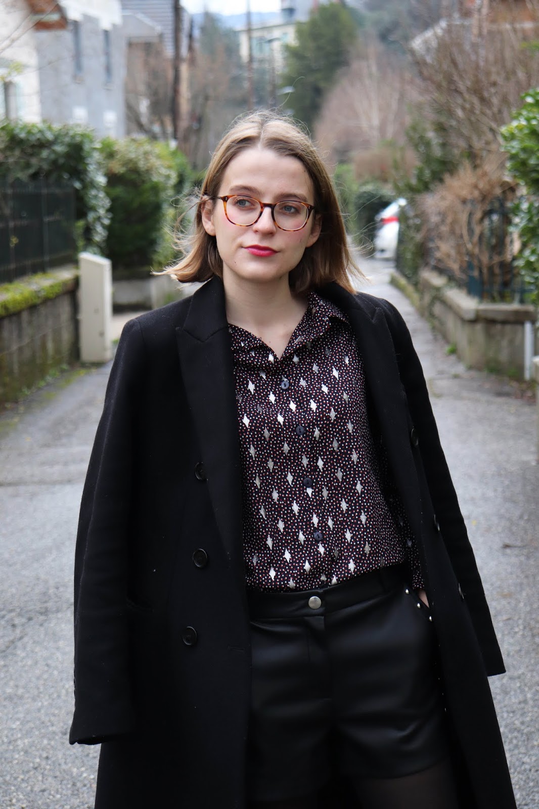 Le total look est assez sombre, pas très gai, mais je voulais vraiment vous montrer cette chemise d’une marque française que j’adore, Vintage Love.