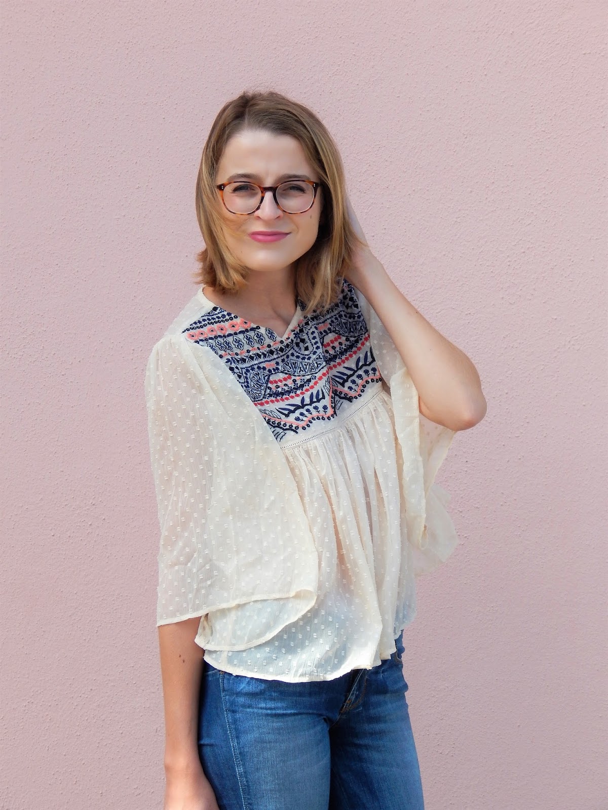 With that, I’m wearing my new Mango blouse, that I bought in sales and that I showed you in my latest Haul video.