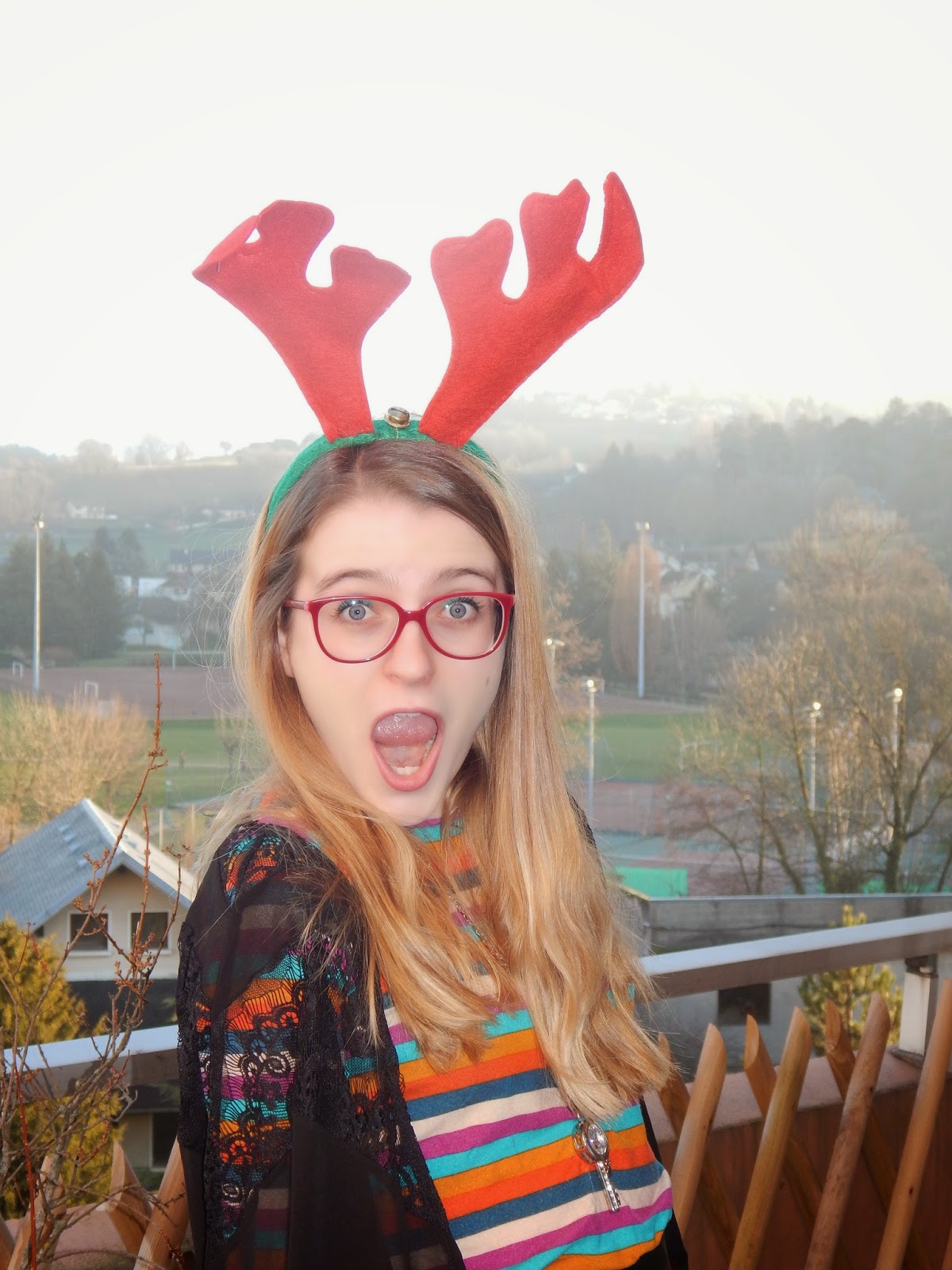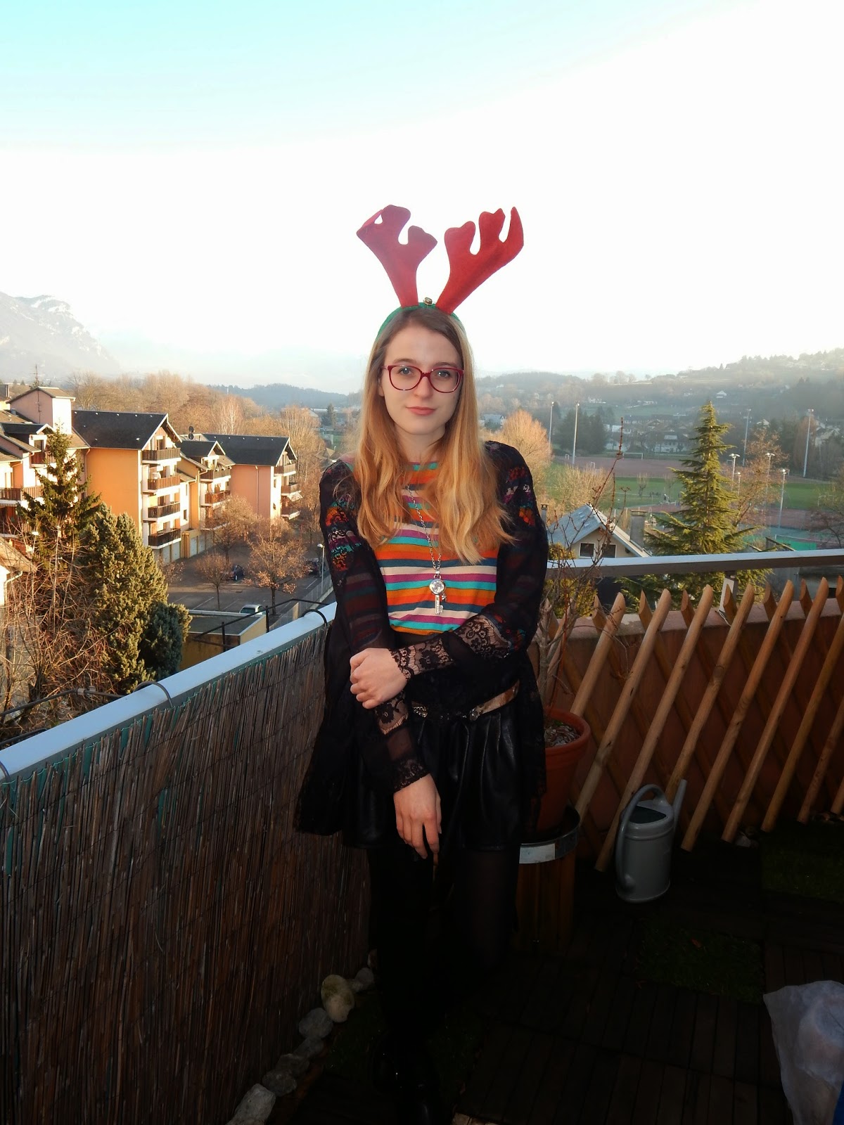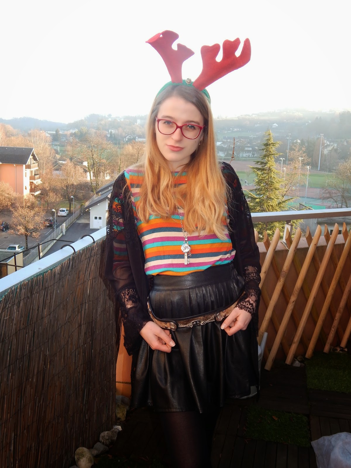 Kimono: Oasap; Haut/Shirt; Bottines/Booties: Pimkie; Jupe/Skirt: ASOS Hearts&Bows; Ceinture/Belt: d’Argentine/from Argentina; Serre-tête renne: Casa