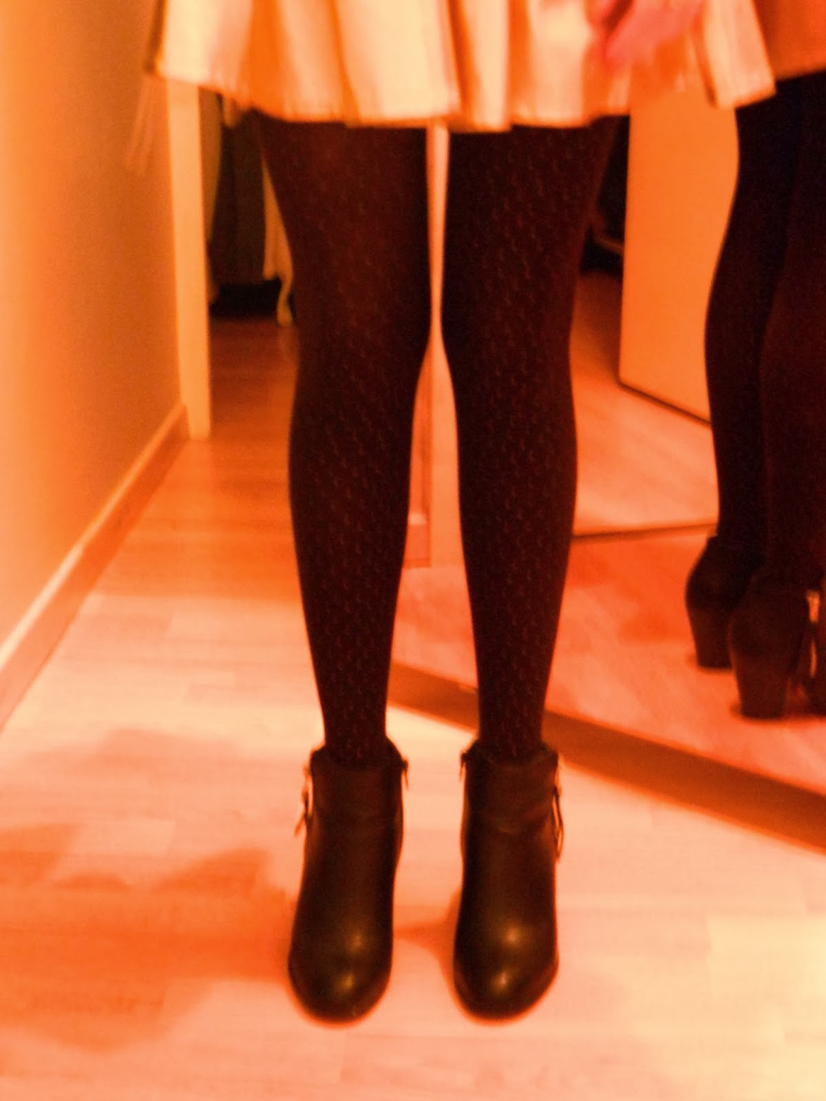 Veste/Jacket: Bizzbee; Top/Shirt: New Look; Jupe/Skirt: Tally Weijl; Collants/Tights and Boots/Booties: Pimkie; Sac/Bag and Bague anneau/Ring: H&M; Vernis: OPI Polka.com