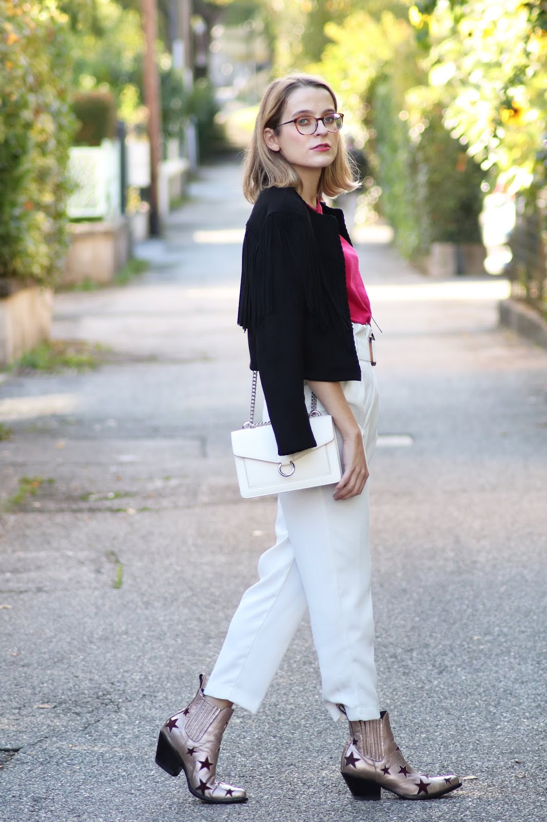Veste/Jacket; Pantalon/Pants: Stradivarius; Tee shirt: & Other stories; Sac/Purse: Friday by JWPEI; Bottines/Booties: Mexicana