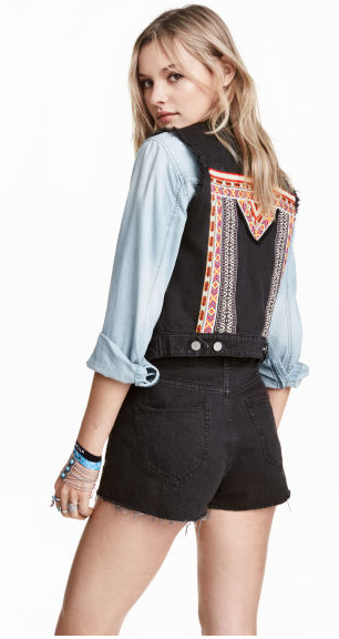 Veste en jean sans manches imprimée. Les vestes sans manches j’en ai pas mal et j’adore ça. Pour agrémenter un haut un peu simple, c’est une pièce géniale. Par contre celle-ci est un peu chère. Dommage elle est si jolie. 40€