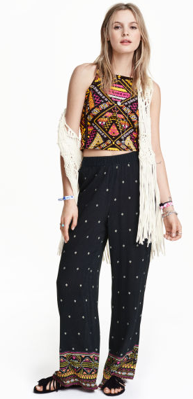 Festival rime aussi avec hippie et les longs pantalons évasés fluides, pour avoir le look hippie sans avoir chaud, parce que Coachella ne l’oublions pas, c’est la Californie. Le look fini comme sur la photo est super réussi. 15€