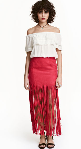 Je pense que vous le savez, les franges et moi, c’est une grande histoire d’amour. Cette jupe imitation daim d’une couleur super jolie avec de super franges, c’est le combo parfait, 35€