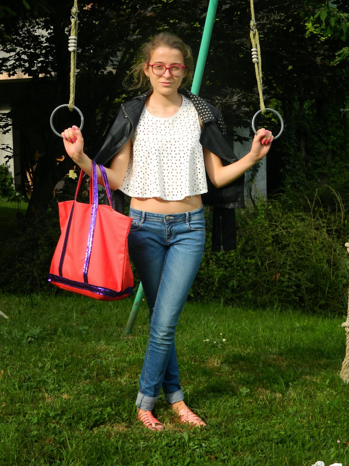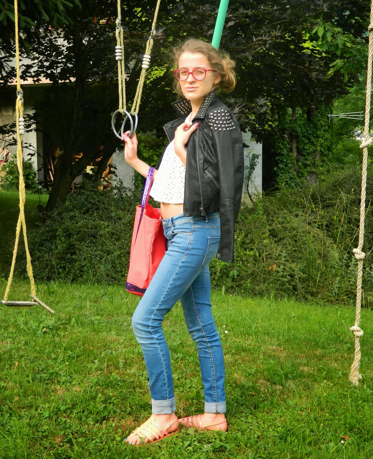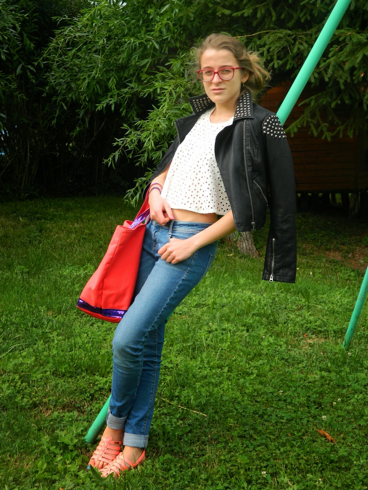 Veste/Jacket: Topshop; Haut/Shirt and Jean: Zara Trafaluc; Sandales/Sandals: Tropéziennes; Sac/Bag: Vanessa Bruno