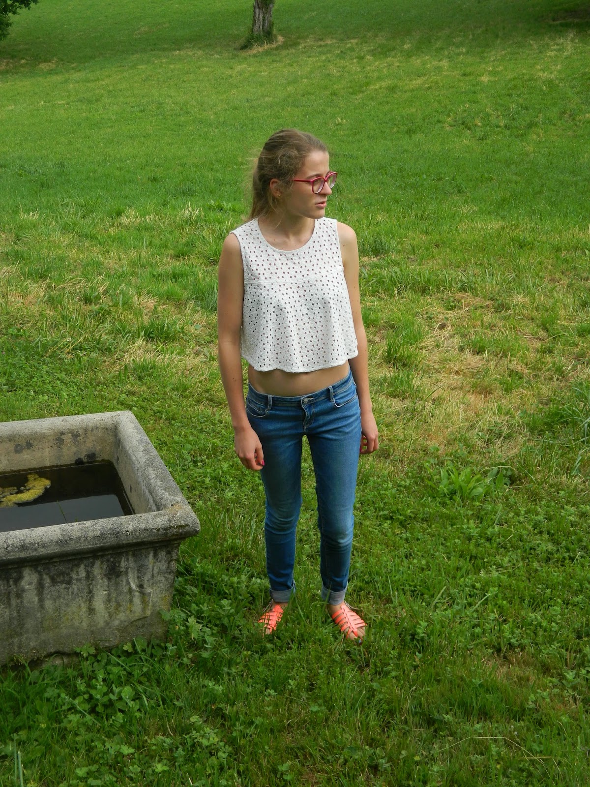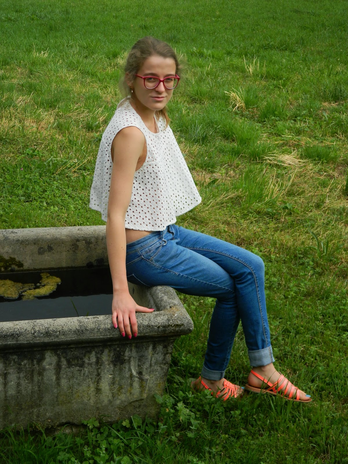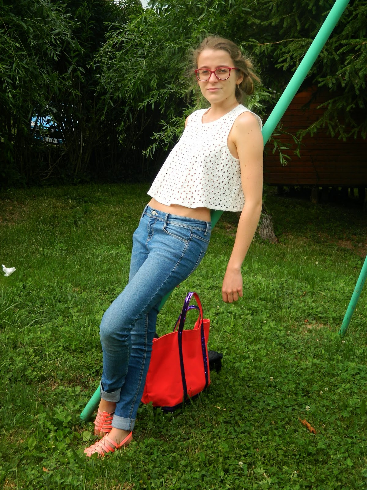 Un look de week-end avec ce haut en crochet Zara acheté il y a plusieurs mois. Je l’adore vraiment il est parfait. Sa couleur, sa matière et sa coupe, j’adore tout. J’avais mis mon short au début de la journée, mais la soirée s’était bien rafraîchie. Du orange pour la petite note de couleur avec mes tropéziennes assorties à mon sac, que je suis très contente de pouvoir ressortir. Mon perf Topshop pour éviter d’avoir froid.