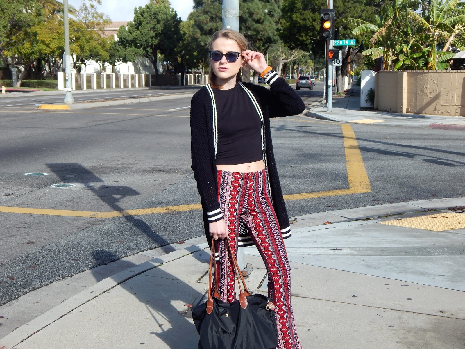 Les soldes aux US étaient vraiment intéressantes, malgré les taxes perpétuelles qu’ils rajoutent à chaque achat. Le jour où j’ai acheté ce cardigan j’ai aussi acheté ce haut manches longues noir tout simple, shoppé chez Forever 21. Il est un peu crop, chose que je n’avais pas trop remarqué quand je l’ai pris, sans l’essayer j’avais la flemme, mais qu’importe. La matière est super douce, et je l’ai payé 6$. J’étais vraiment en manque de hauts manches longues, et j’en ai profité pour m’offrir celui-ci. J’ai associé le cardigan et le haut à mon pantalon H&M issu de la collection avec Coachella que j’adore toujours autant. Je voulais vraiment le porter à Los Angeles celui-là, matchant parfaitement avec la Californie. Aux pieds des Converse, n’ayant pas envie de portes des talons.