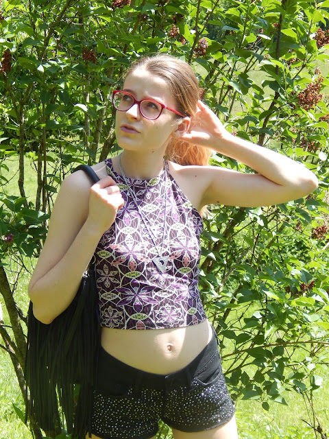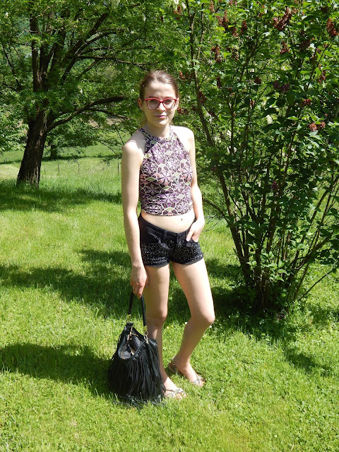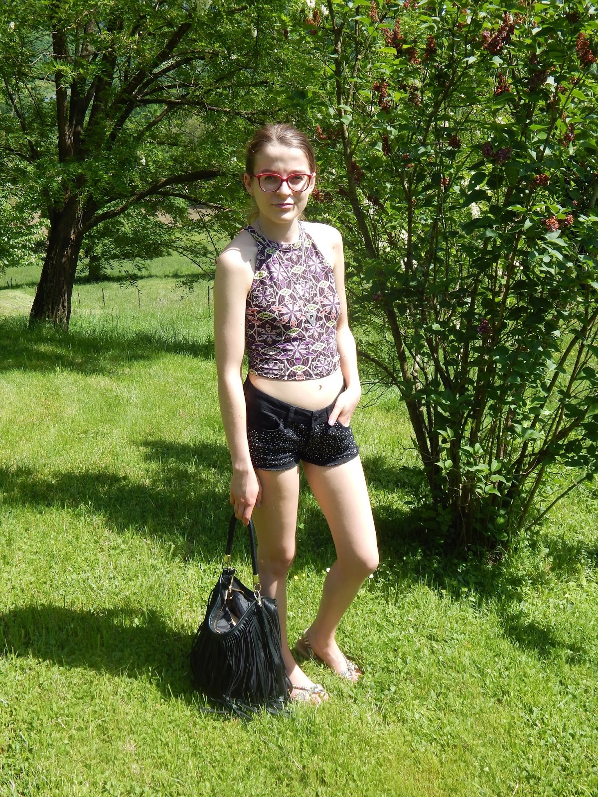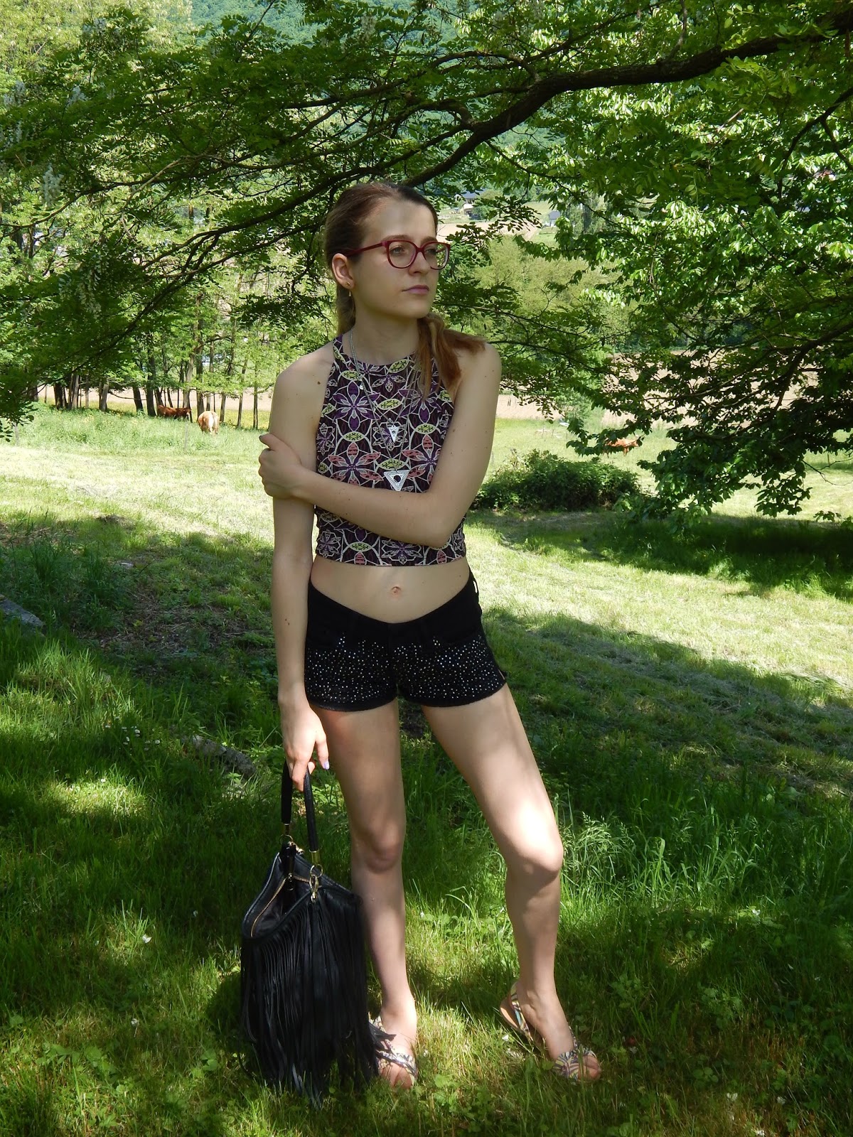 c’est pour ça que j’ai préféré vous faire des looks avant. Ce jour-ci, c’était un dimanche et nous allions faire un barbecue chez mon beau-père comme fréquemment à cette période. Un crop top acheté chez New Look pour 8€, mon short strassé H&M et mes sandales H&M dont l’imprimé est assez ressemblant à celui de mon top du coup, allez un look avec. J’espère que les photos vous plairont. Sur celles-ci j’avais toujours les cheveux longs, j’ai deux looks à vous montrer avec ma nouvelle coupe, j’espère que ça vous plaira.