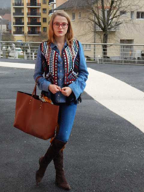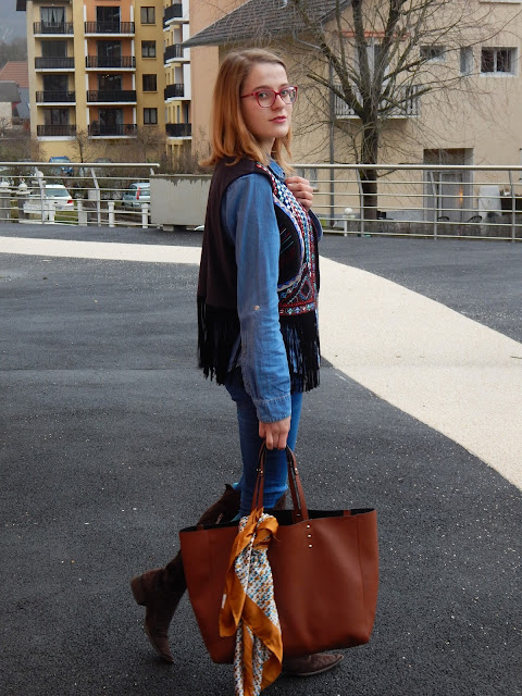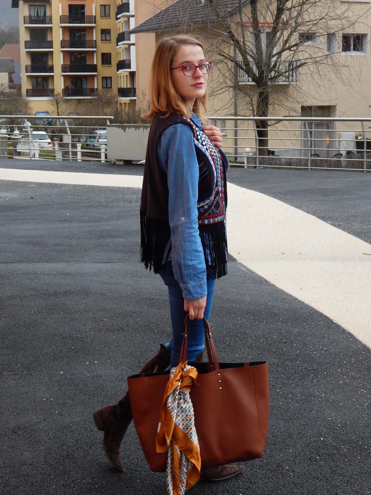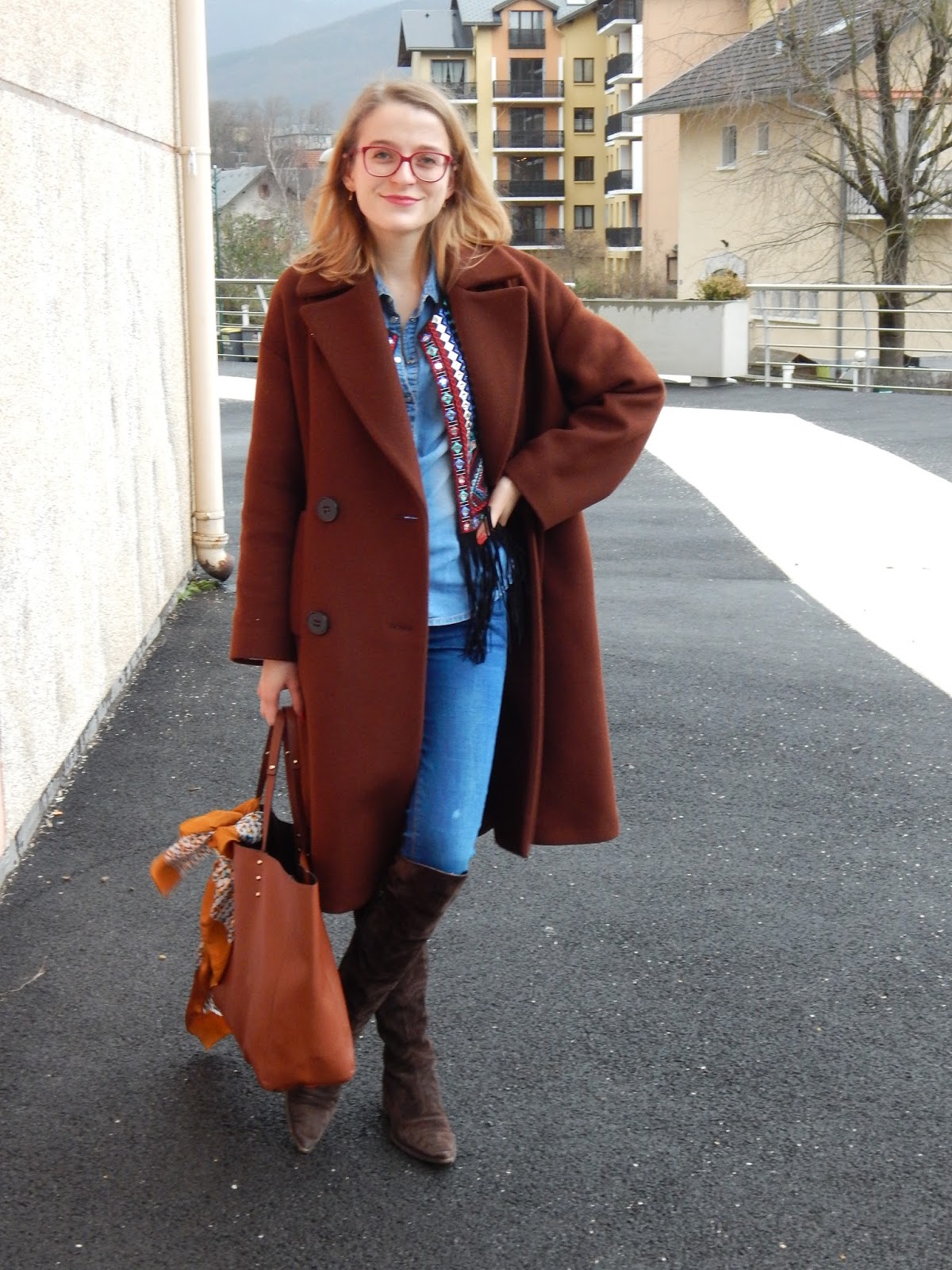 Manteau/Coat: Sac/Bag. Jean: Zara; ; Chemise/Shirt; Foulard/Scarf: Pimkie; Gilet/Jacket: Vis ta vie chez Charly&Gaby