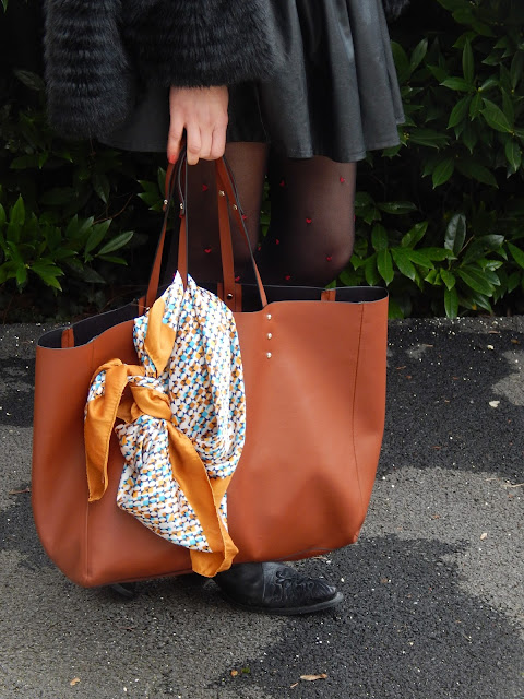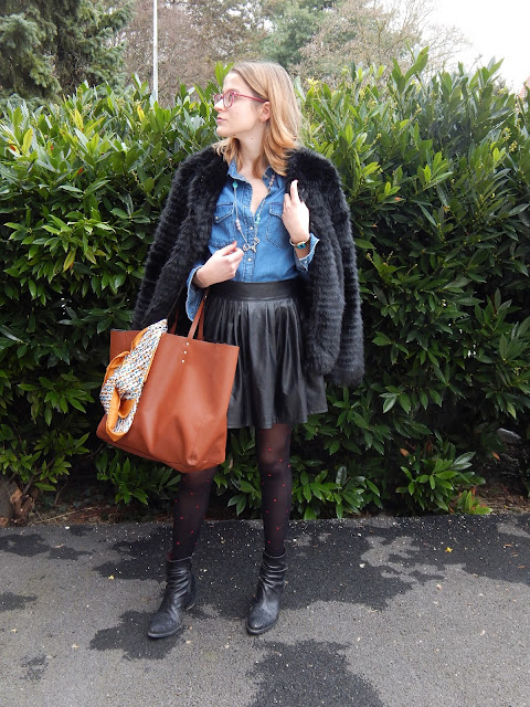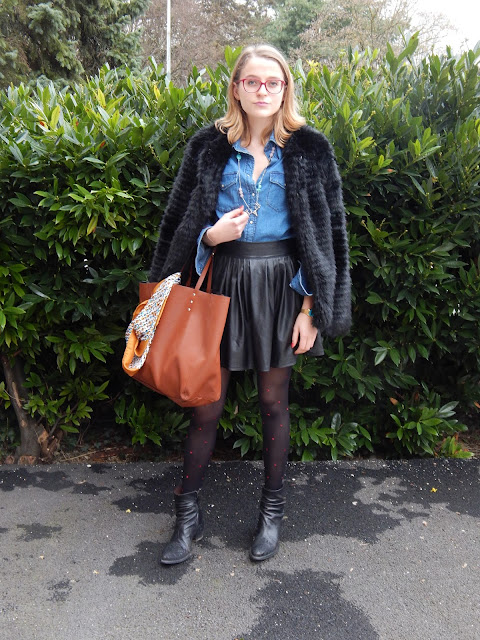 Veste/Jacket; Foulard/Scarf: Pimkie; Chemise/Shirt; Collants/Tights: H&M; Sac/Bag: Zara; Jupe/Skirt: Hearts&Bows sur Asos; Collier/Necklace: Indilly