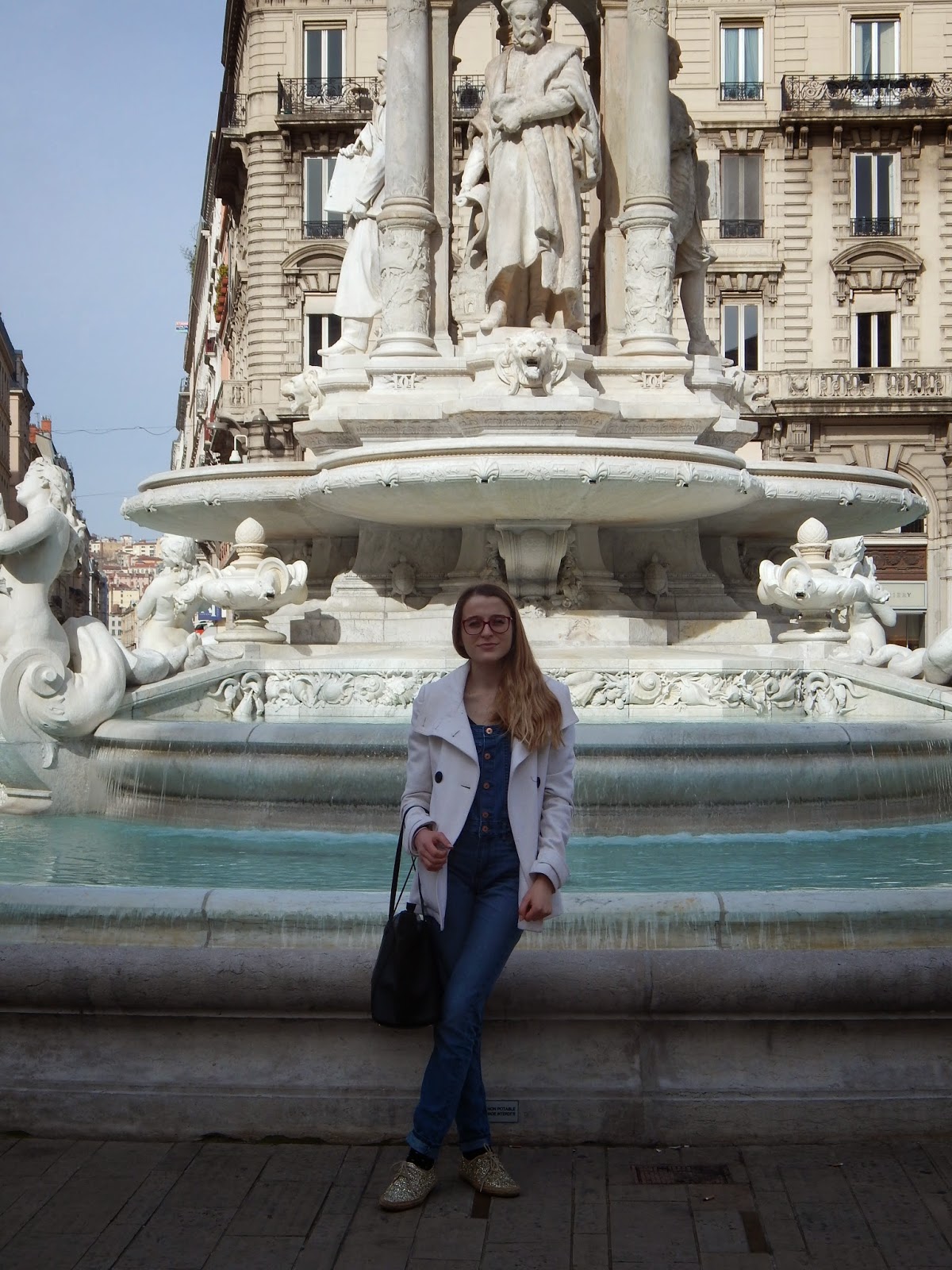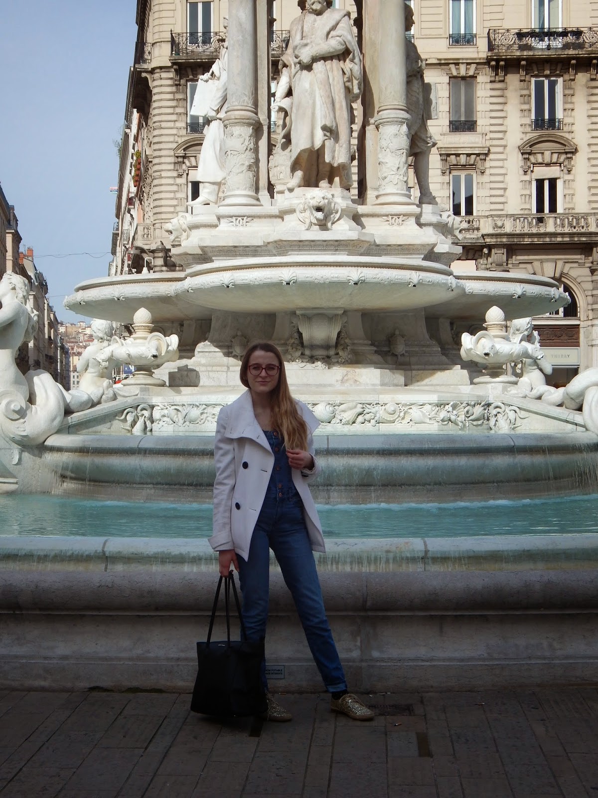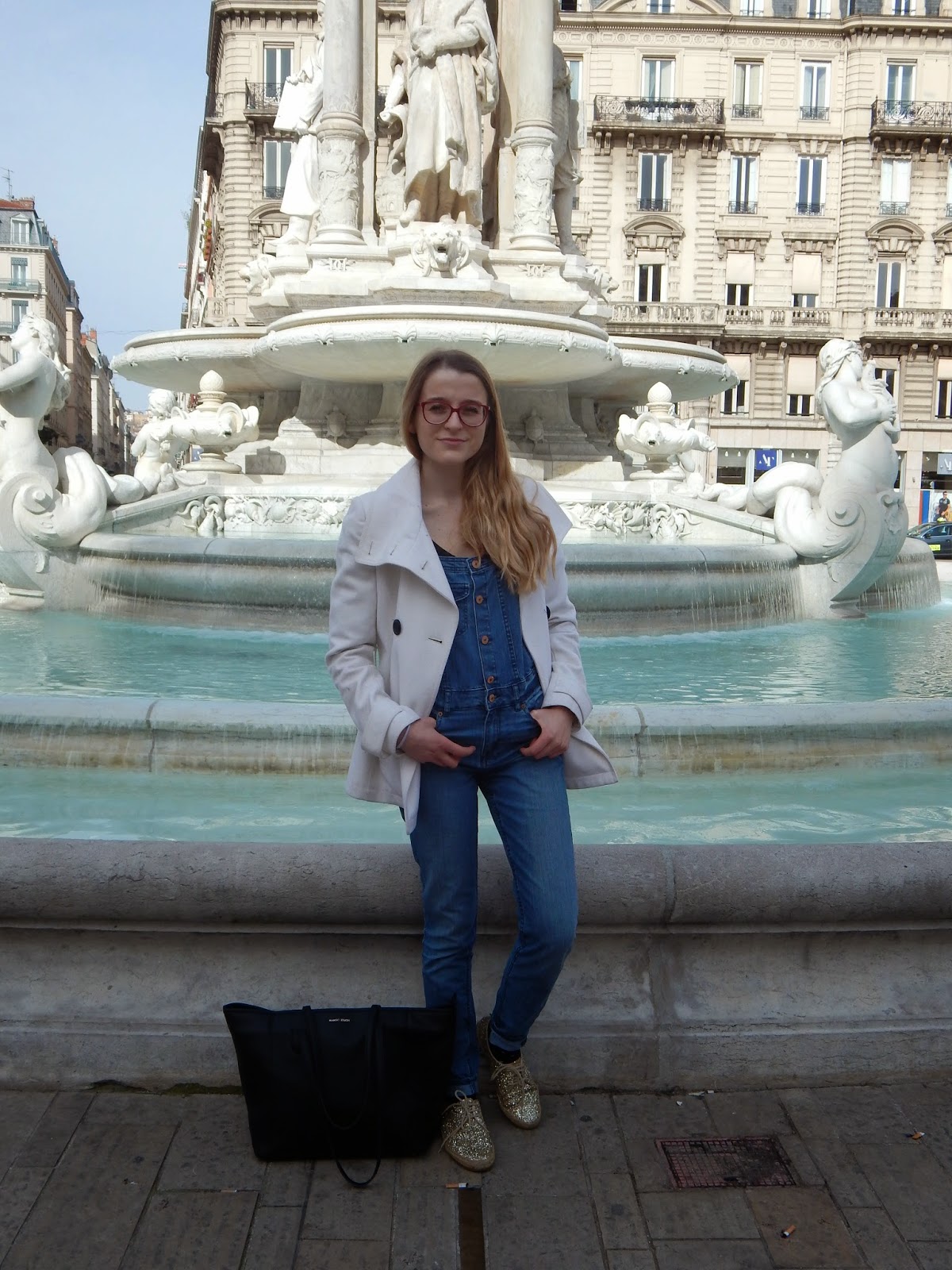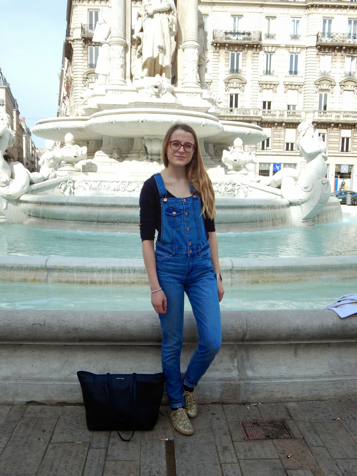 Oh oui, je reconnais bien la Place des Jacobins et les jolies rues de Lyon! J'espère que vous en avez quand même bien profité 🙂 Une tenue sympa, j'adore tes chaussures à sequins et le look salopette, je suis fan ! Bises