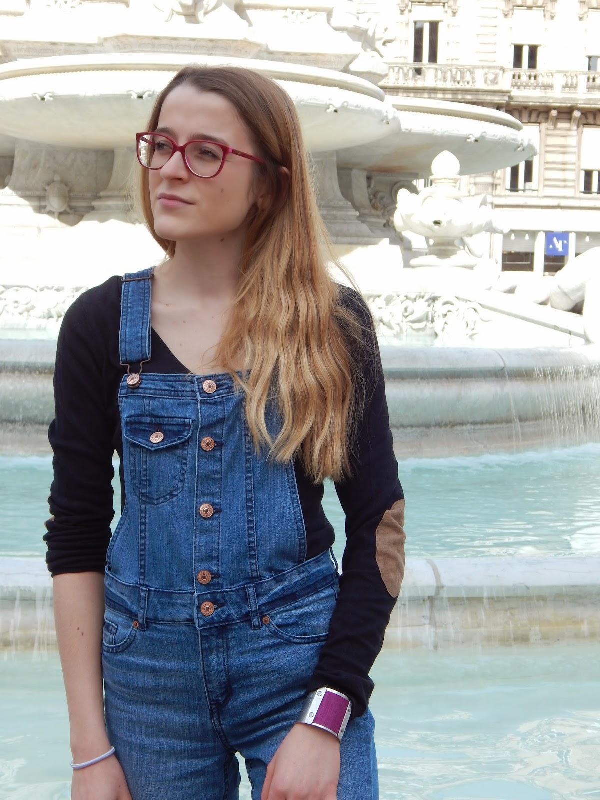 Manteau/Coat: Pimkie; Salopette/Dungaree: H&M; Haut/Shirt: Sud Express; Chaussures dorées/Gold shoes; Talons/Heels: Jennyfer; Manchette/Bracelet: Argentine