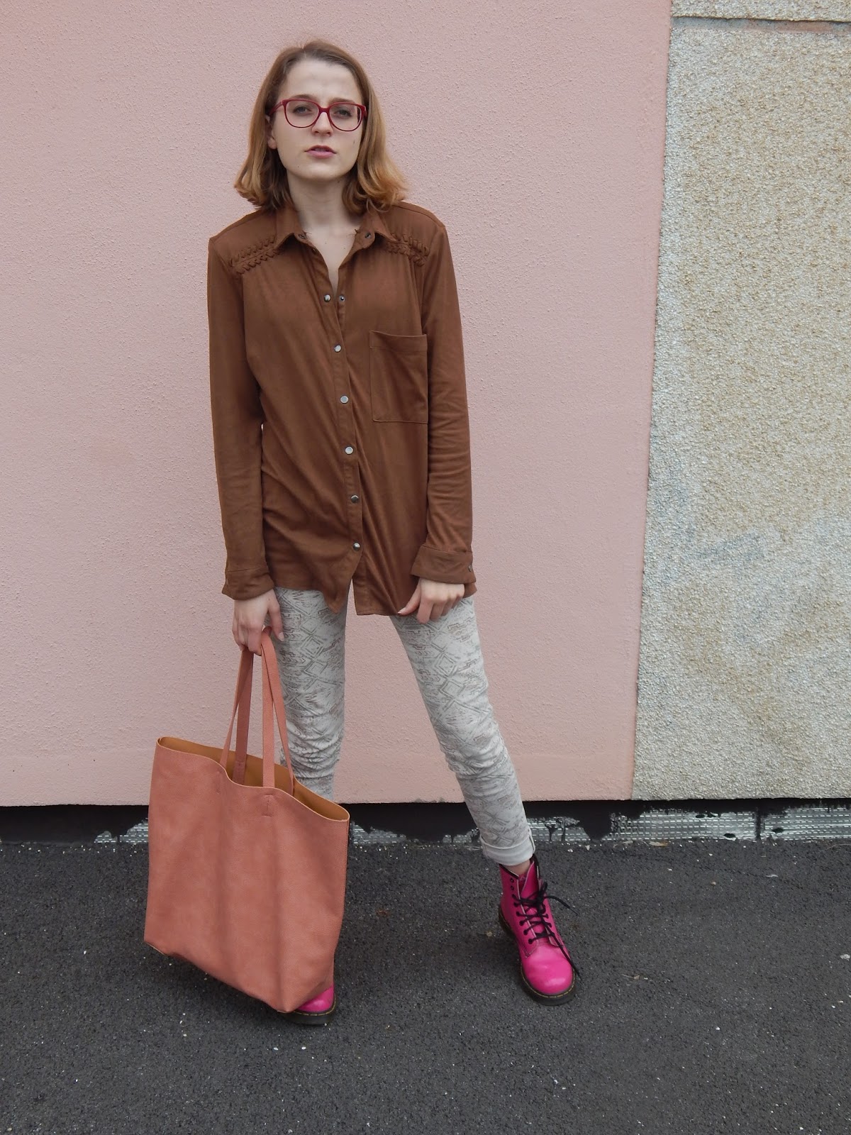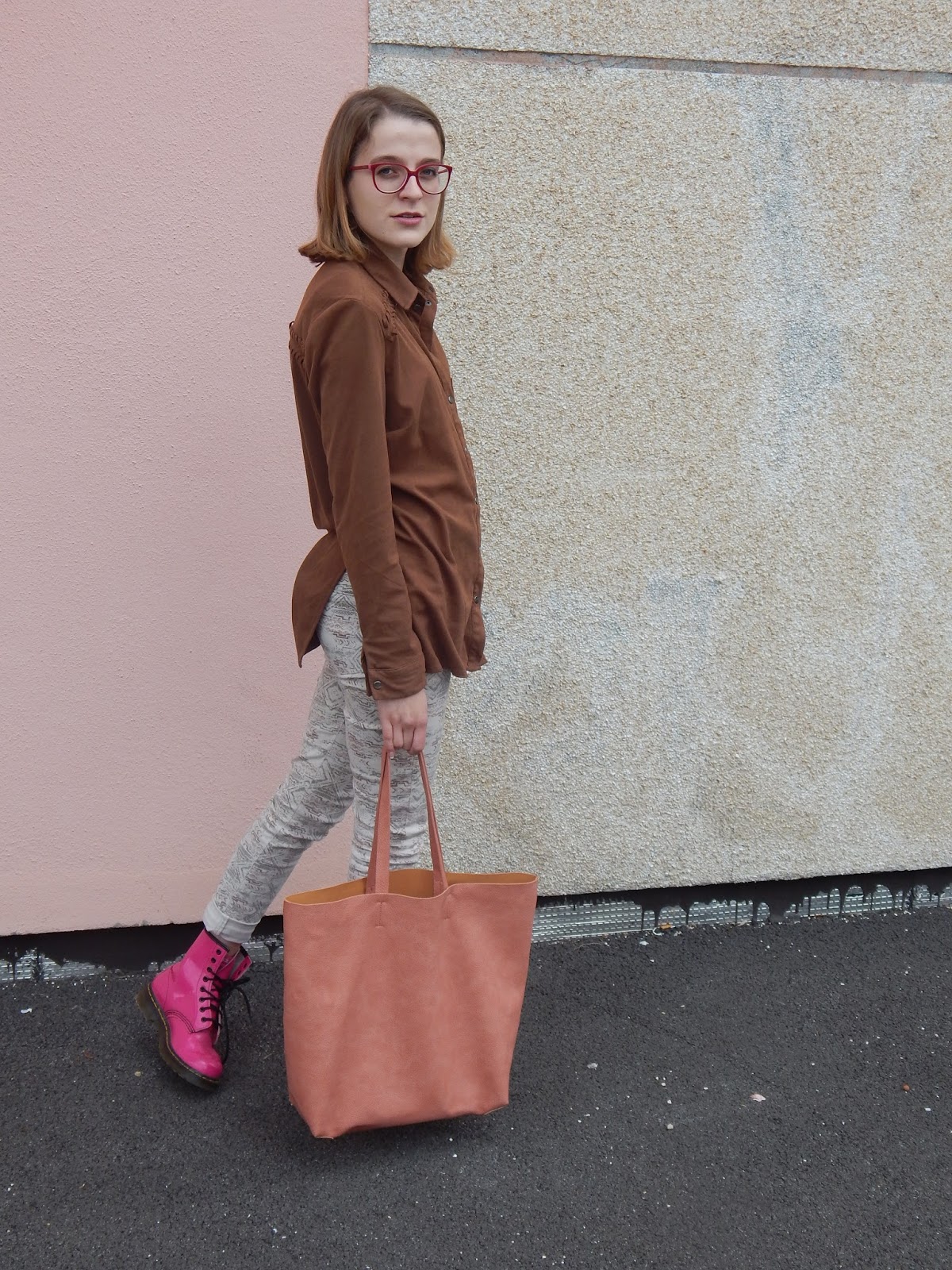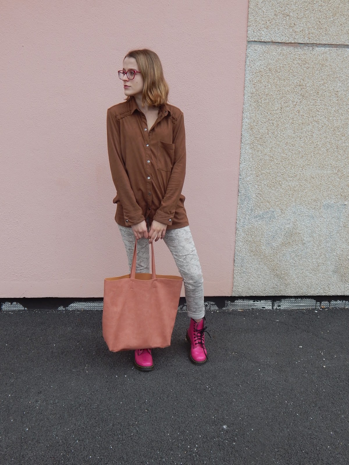 Mais cette fois-ci, j’étais bien décidée de vous montrer ENFIN ce look, nous sommes déjà au printemps… D’ailleurs, ce jean, vous l’avez vu il n’y a pas longtemps avec ce look. La chose qui change, sont les chaussures, puisque les fois où j’ai porté cette chemise et ce jean ensemble, j’avais mis des bottines marrons. J’ai voulu changer, et ressortir mes Doc, pour ajouter une touche de couleur. Mon sac rose clair en prime