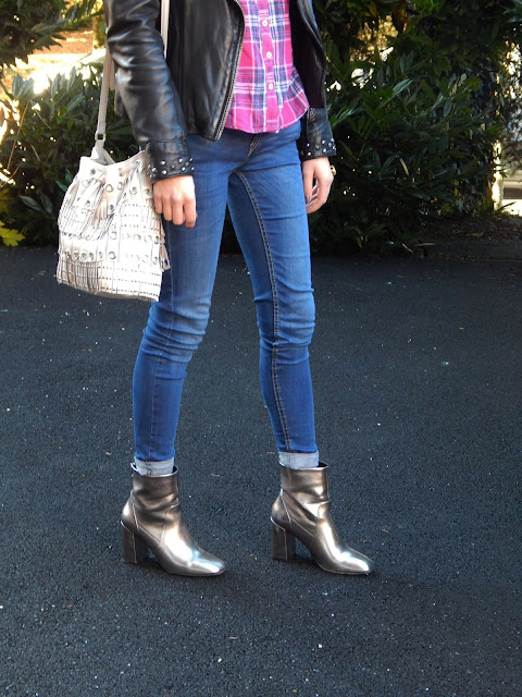 que je porte et reporte tout le temps, présenté dans mes « indispensables mode du moment » en vidéo, et mes bottines argentées vues dans mon dernier look, avec lesquelles j’apprends tous les jours à marcher avec, parce qu’elles glissent et qu’elles sont quand même assez hautes. Vous aimez?