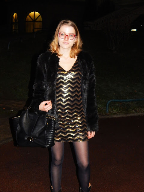 je poste plusieurs fois par jour, peut être moins en ce moment, vu que quand vous verrez ces photos, je serai à Bangkok, à profiter un maximum de ce voyage.  Mon look de ce soir sera donc un crop top glitter et une jupe sans collants étant donné les températures estivales qu’il fait en Thailande ( 25-30°), j’aime passer mes hivers au chaud c’est tellement différent. Je vous posterai ce look à mon retour. Mais intéressons nous à ce look-ci. Il s’agit de la tenue que je portais samedi soir pour sortir au restaurant avec mes parents et allez ensuite au casino où j’ai gagné 30€. Je me suis arrêtée de peur de les perdre, je suis prudente. J’ai très rarement l’occasion de porter cette robe que j’adore pourtant tellement mais il faut dire que tous ces sequins ne sont pas facilement portables au quotidien, même si briser les conventions ne me dérange pas. A essayer une prochaine fois en mode ville avec peut être un gros cardigan noir en laine ( que je n’ai pas ahah). Quant à cette veste, il s’agit d’un des cadeaux de ma grand-mère que j’ai commandée sur le site de Pimkie, n’étant plus en boutiques dans ma taille. J’ai été bluffée par la livraison en magasin hyper rapide ( puisque je l’ai faite livre en magasin pour éviter les frais de ports), en deux jours. Et surtout le détail important, j’ai reçu cinq sachets de thé Kusmi Tea avec et rien ne pouvait me faire plus plaisir j’adore le thé et en particulier celui-ci, j’ai d’ailleurs commandé un coffret de cinq thés que j’aurais reçu quand vous lirez ces lignes. Cette veste franchement, je suis bluféfe devant la qualité, c’est vrai qu’elle fait vraiment de très bonne qualité, mais rassurez-vous tout de suite, c’est de la fausse hein. Jamais de la vraie et surtout à 50€ de la vraie n’existe pas. J’ai d’ailleurs été complimentée par une vendeuse des Galeries Lafayette ( si vous passez par là, je vous remercie encore). En clair, une tenue assez classe et festive, que vous aimerez j’espère. Je vous souhaite à tous un joyeux Noel et de bonnes fêtes.