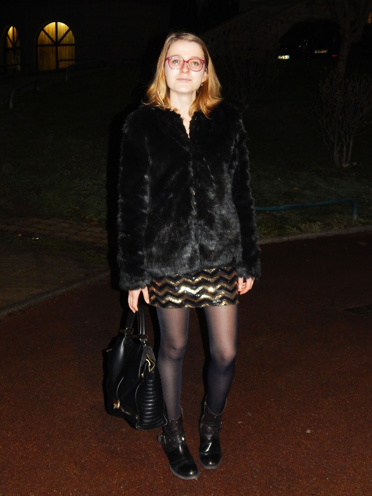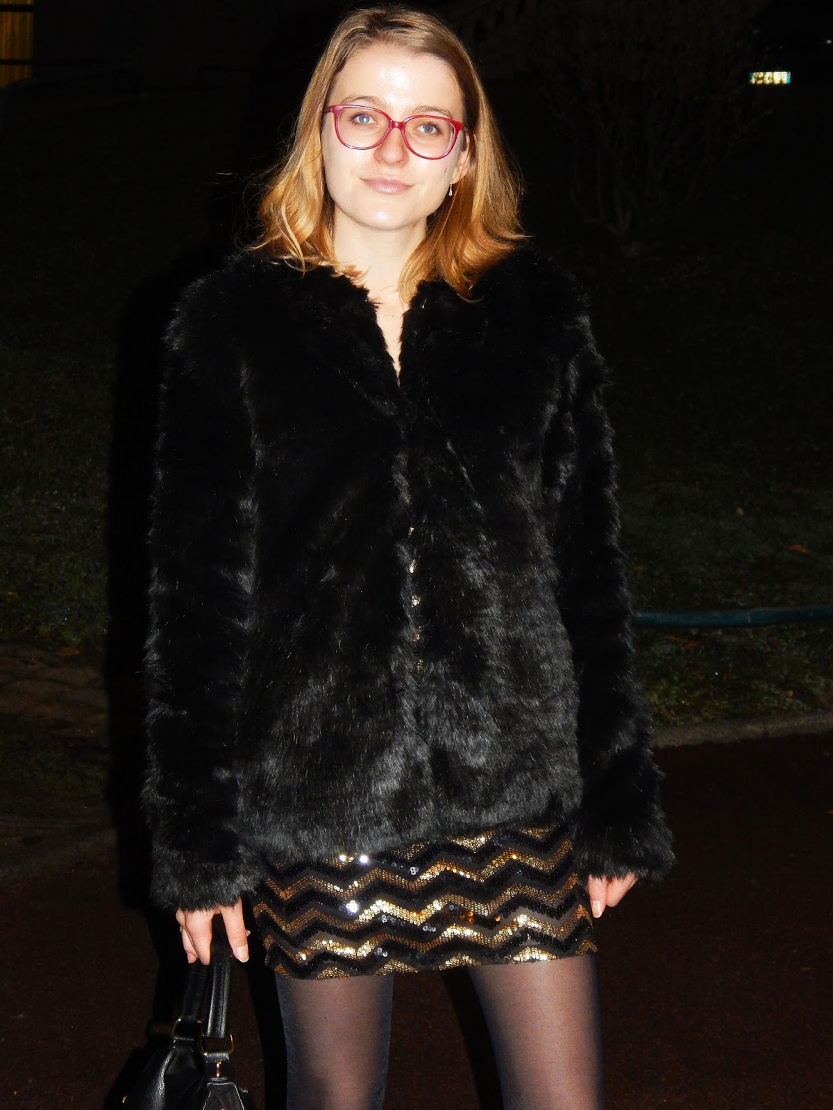 je poste plusieurs fois par jour, peut être moins en ce moment, vu que quand vous verrez ces photos, je serai à Bangkok, à profiter un maximum de ce voyage.  Mon look de ce soir sera donc un crop top glitter et une jupe sans collants étant donné les températures estivales qu’il fait en Thailande ( 25-30°), j’aime passer mes hivers au chaud c’est tellement différent. Je vous posterai ce look à mon retour. Mais intéressons nous à ce look-ci. Il s’agit de la tenue que je portais samedi soir pour sortir au restaurant avec mes parents et allez ensuite au casino où j’ai gagné 30€. Je me suis arrêtée de peur de les perdre, je suis prudente. J’ai très rarement l’occasion de porter cette robe que j’adore pourtant tellement mais il faut dire que tous ces sequins ne sont pas facilement portables au quotidien, même si briser les conventions ne me dérange pas. A essayer une prochaine fois en mode ville avec peut être un gros cardigan noir en laine ( que je n’ai pas ahah). Quant à cette veste, il s’agit d’un des cadeaux de ma grand-mère que j’ai commandée sur le site de Pimkie, n’étant plus en boutiques dans ma taille. J’ai été bluffée par la livraison en magasin hyper rapide ( puisque je l’ai faite livre en magasin pour éviter les frais de ports), en deux jours. Et surtout le détail important, j’ai reçu cinq sachets de thé Kusmi Tea avec et rien ne pouvait me faire plus plaisir j’adore le thé et en particulier celui-ci, j’ai d’ailleurs commandé un coffret de cinq thés que j’aurais reçu quand vous lirez ces lignes. Cette veste franchement, je suis bluféfe devant la qualité, c’est vrai qu’elle fait vraiment de très bonne qualité, mais rassurez-vous tout de suite, c’est de la fausse hein. Jamais de la vraie et surtout à 50€ de la vraie n’existe pas. J’ai d’ailleurs été complimentée par une vendeuse des Galeries Lafayette ( si vous passez par là, je vous remercie encore). En clair, une tenue assez classe et festive, que vous aimerez j’espère. Je vous souhaite à tous un joyeux Noel et de bonnes fêtes.
