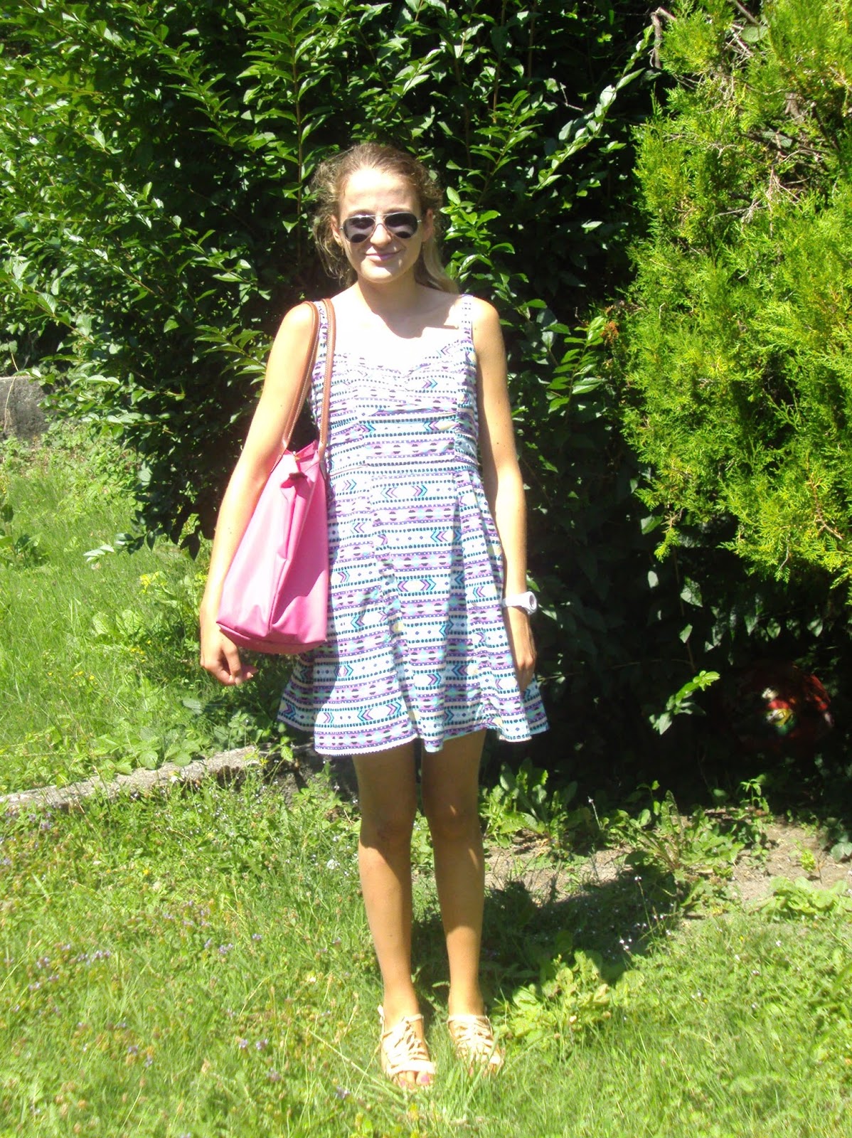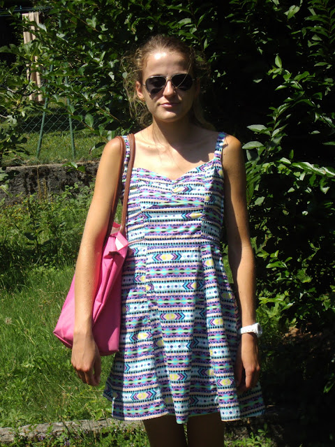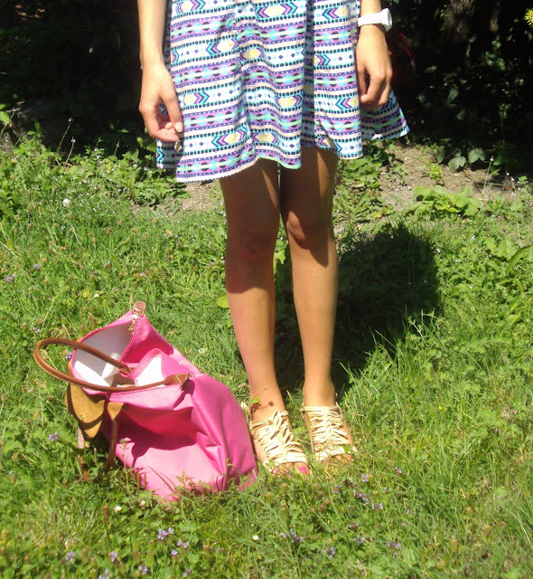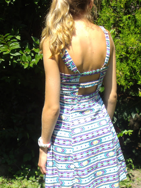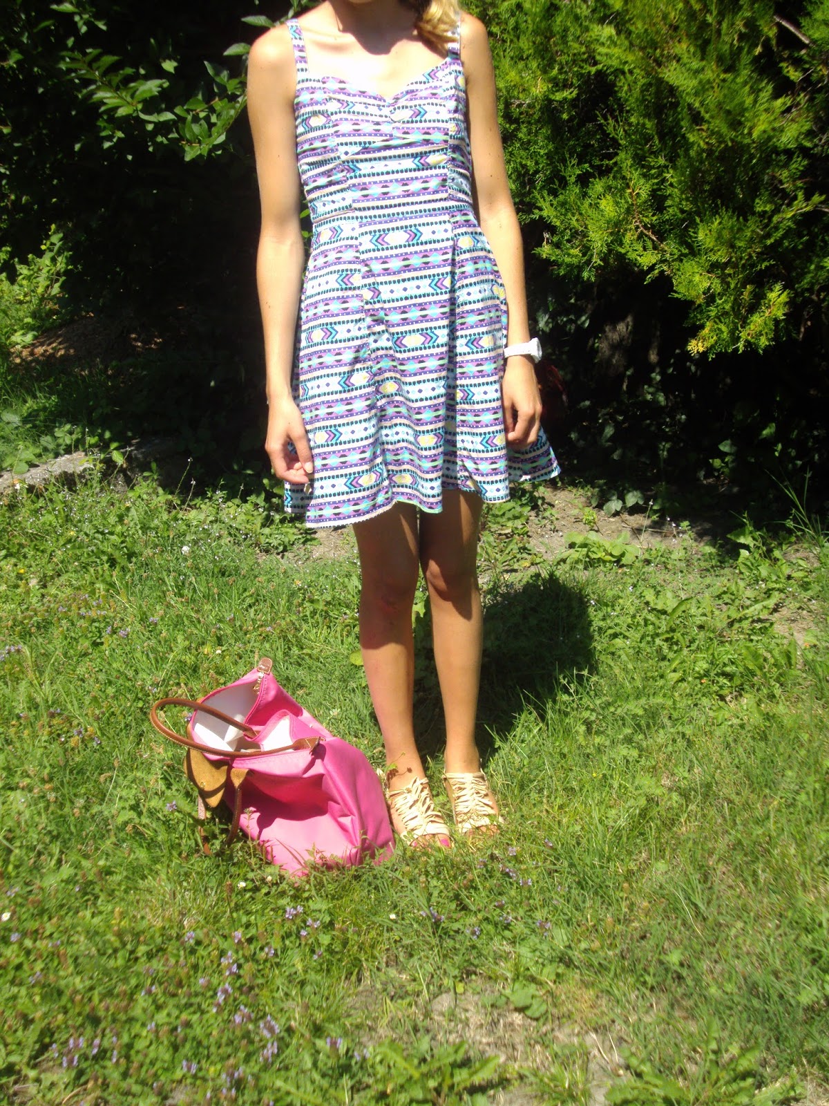 très jolie cette robe ! j'adore son motif et sa découpe dans le dos =) ton sac rose est top 🙂 !