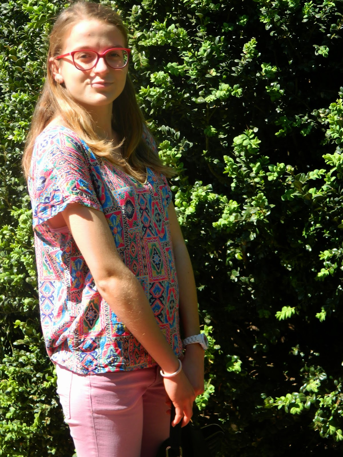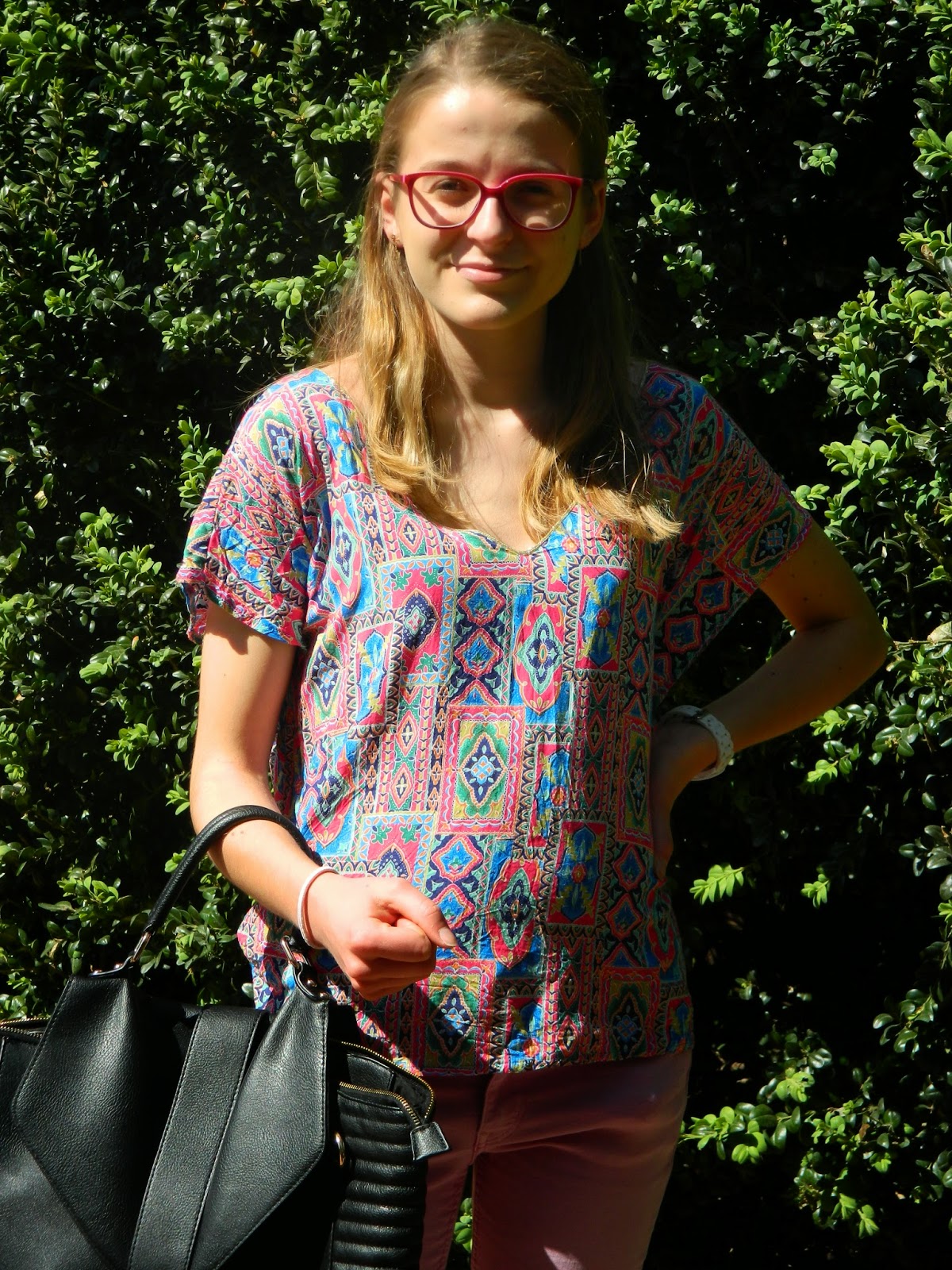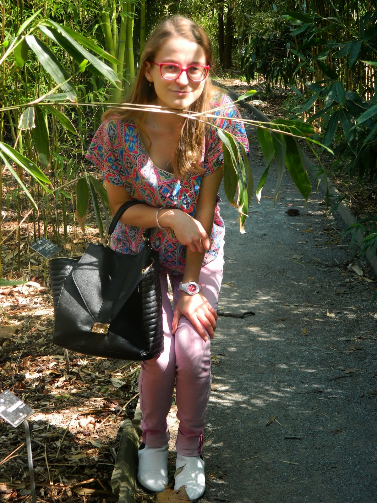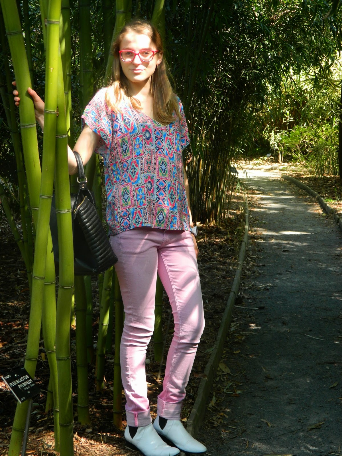 Une balade au parc Dimanche dernier. J’étais revenue pour le week-end. Lyon me manque pas mal depuis que je suis rentrée chez moi, mais je vais essayer d’y retourner régulièrement. Une après-midi ensoleillée et très agréable. L’occasion de dégainer mes bottines blanches, très salissantes comme vous pouvez l’imaginer. Mon nouveau haut bariolé, et mon jean bubble-gum. Très agréable aussi de pouvoir enlever le perf’.