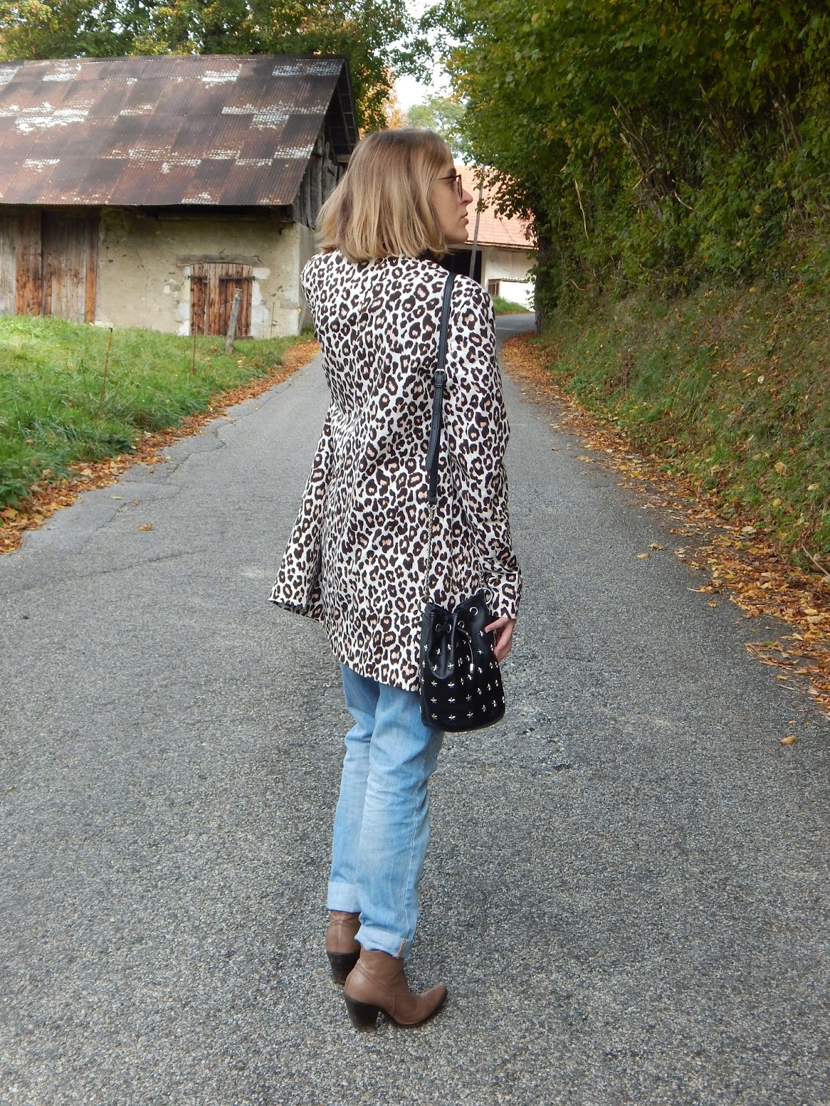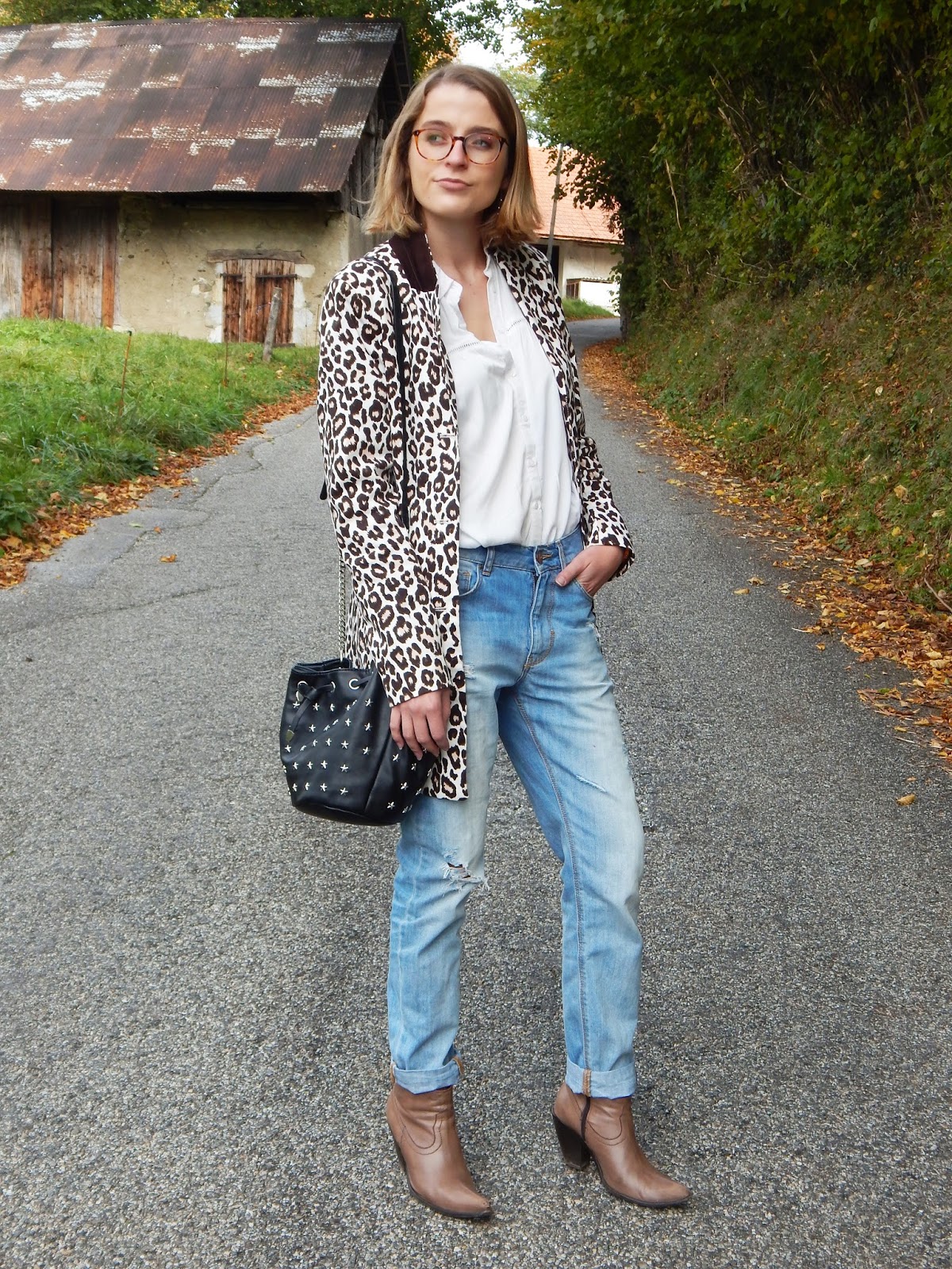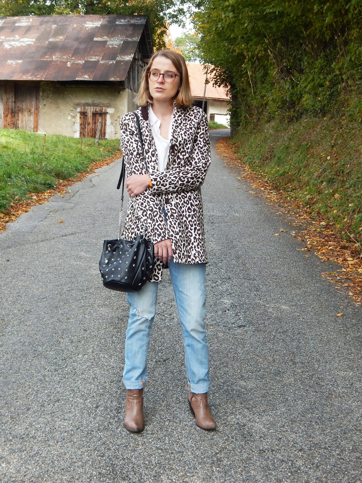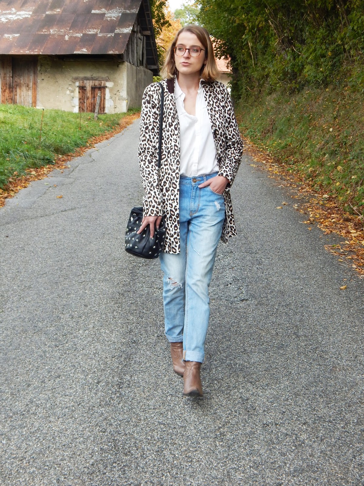 I haven’t wear this coat from a long time and I missed it a lot. I enjoyed warm temperatures of october to do it. Generally I wear it with these pair of booties, finding, it was matching pretty well. The same for these jeans. On the top, I was wearing my new shirt from Stradivarius which I showed you, in my « My closet » tab. I’m totally crazy about it, I was looking for a white shirt for the times where I wanted to wear printed jeans. It’s really agreable to wear, light, original which matches with everything.