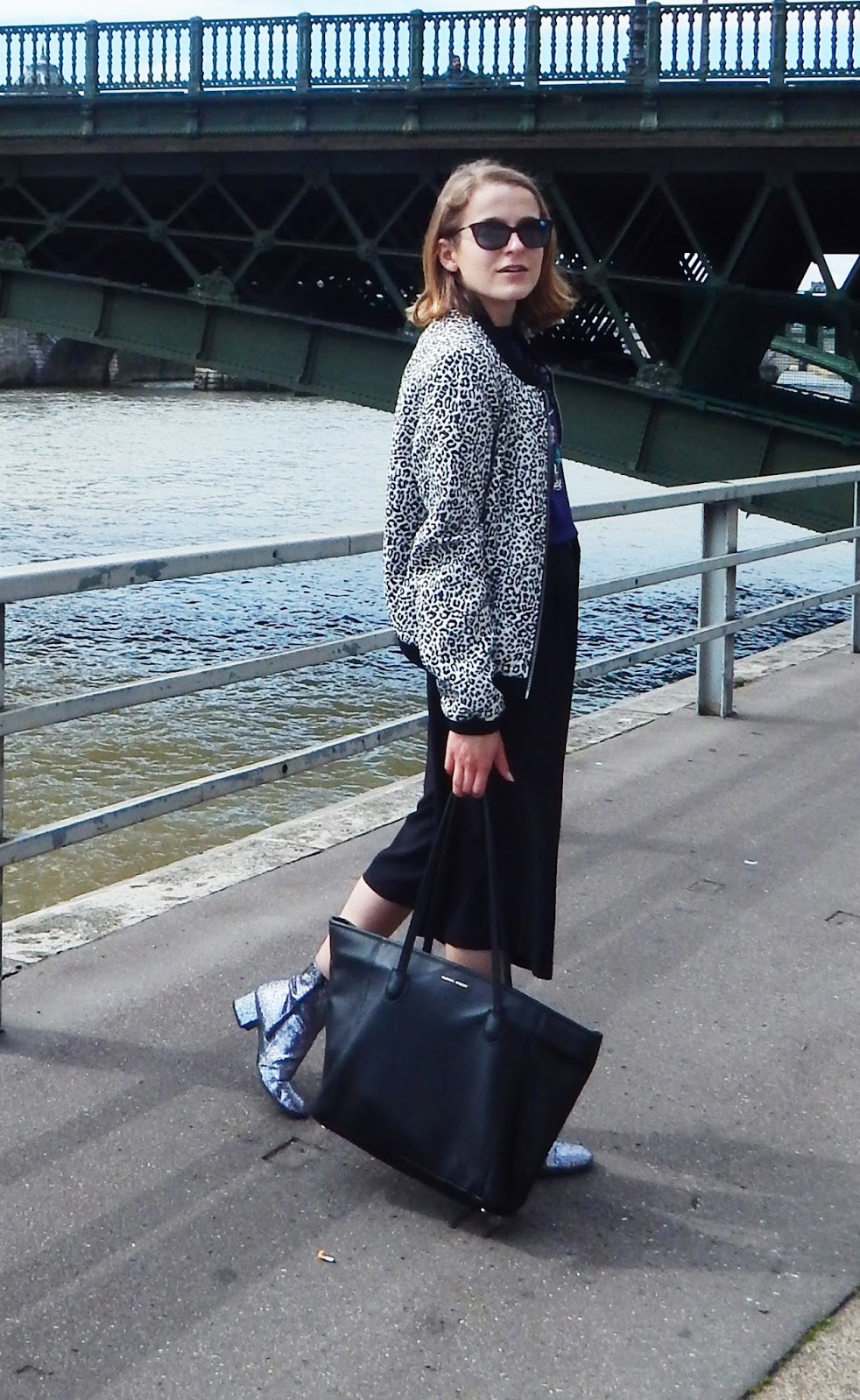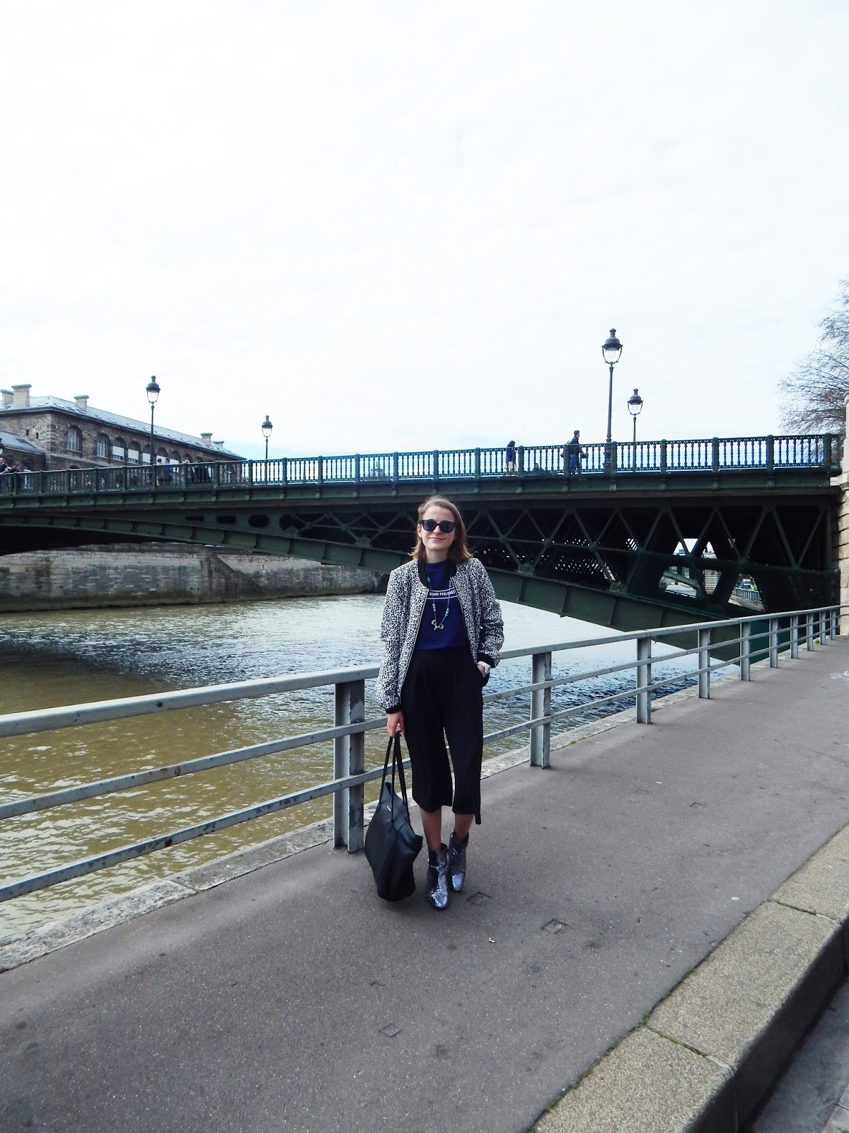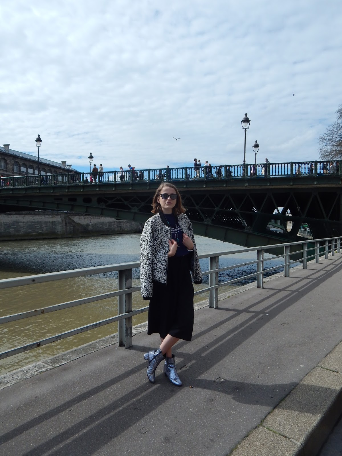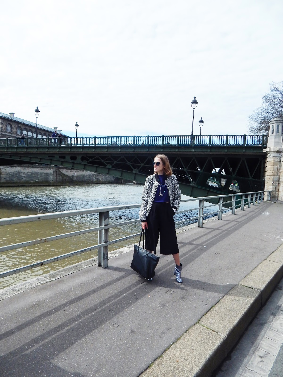 Trop de queue en boutique, j’ai essayé mes achats à l’hôtel et la jupe-culotte est parfaite ( j’ai pris du S). Avec, j’avais apporté mon crop top H&M, acheté il y a plusieurs mois, payé en soldes 3€, rien à dire. Avec la jupe-culotte, taille haute, on ne voit pas qu’il s’agit d’un crop top, mais ce n’est pas plus mal. Mon bomber que j’avais pris pour ces trois jours, mon collier eu à Noel, mes bottines à paillettes qui ne m’ont pas quittée ( pas trouvé les Lollipops vues dans ma wishlist), et mon gros sac Mango pour mettre tout mon bazar. Je vous partagerai comme d’habitude ma vidéo, pour voir tous ms achats parisiens et il y en a un peu…