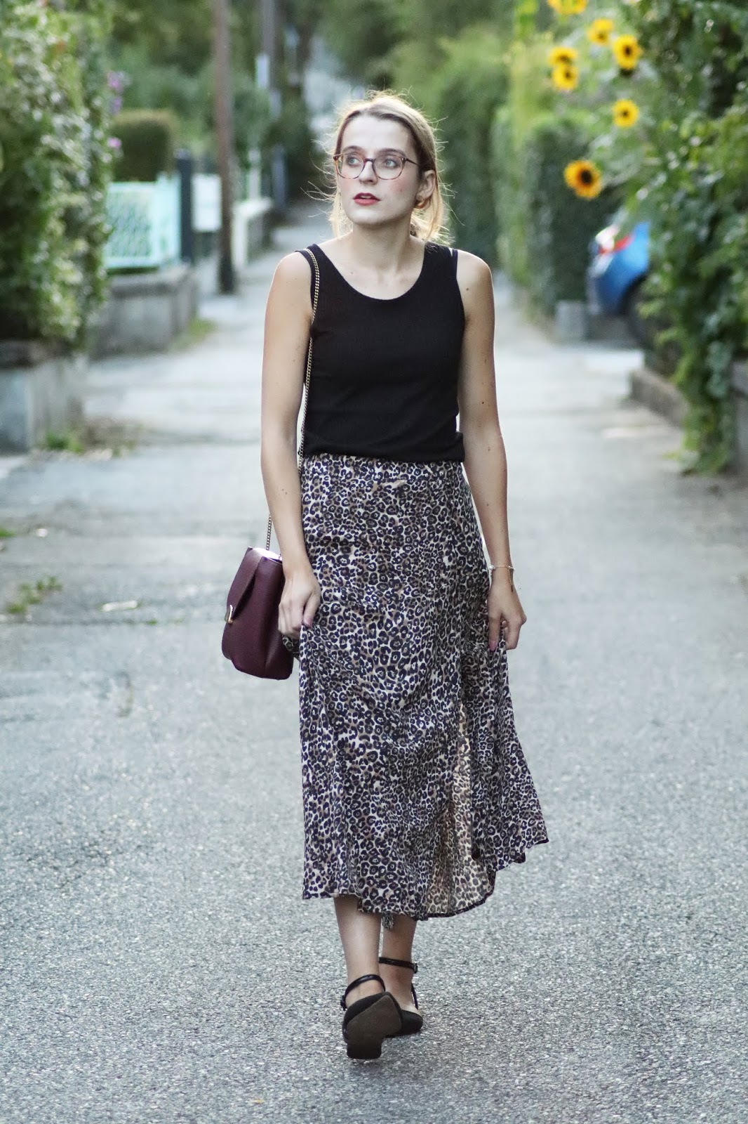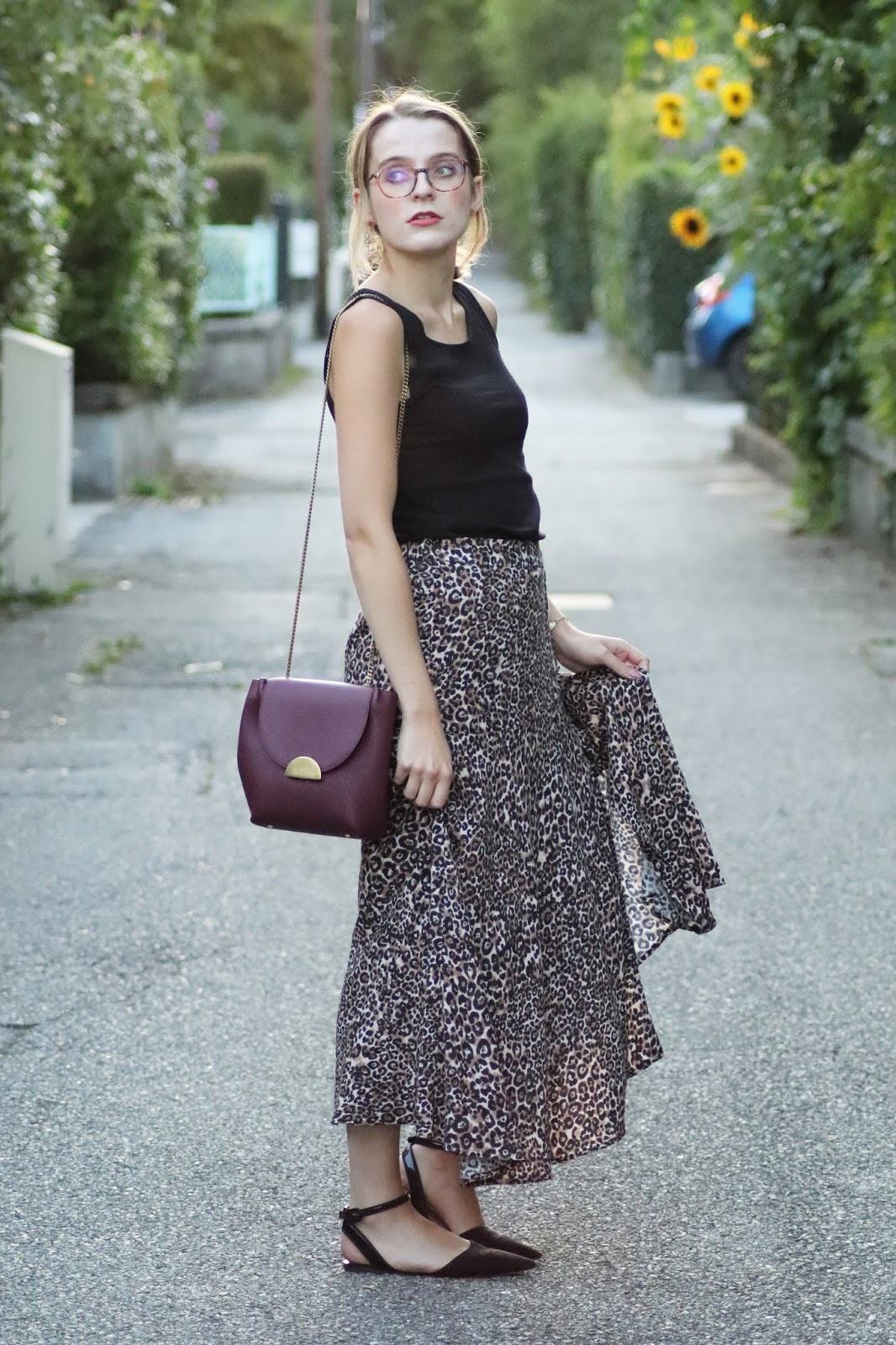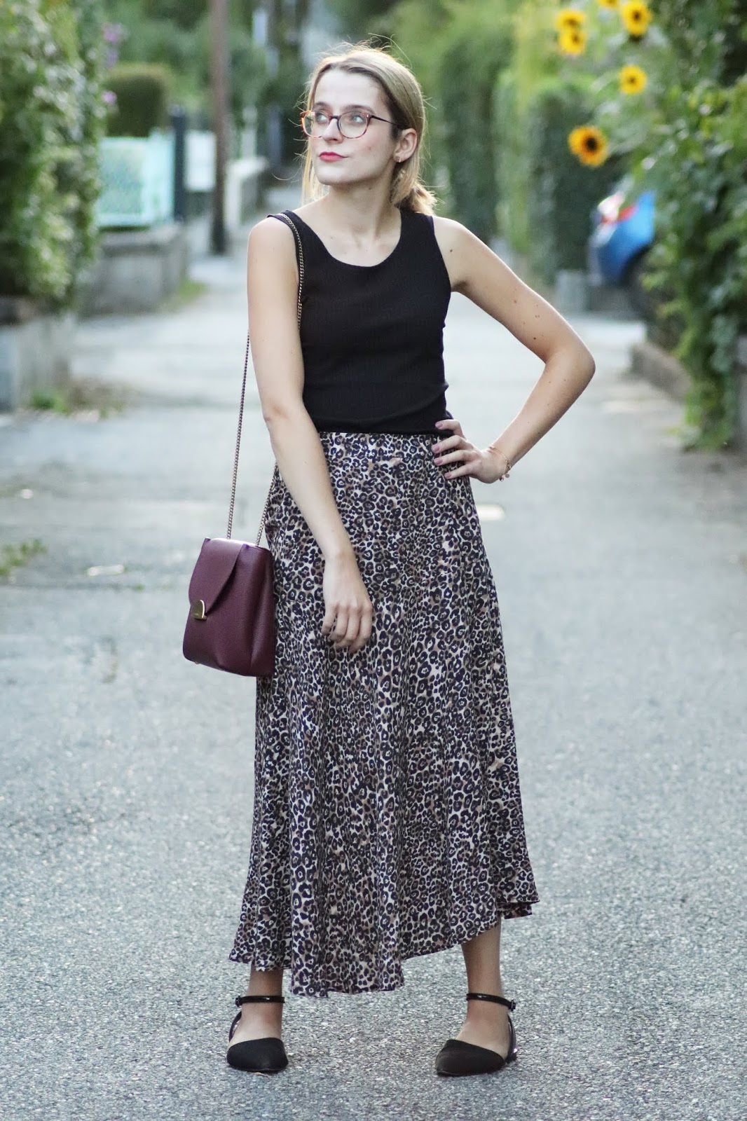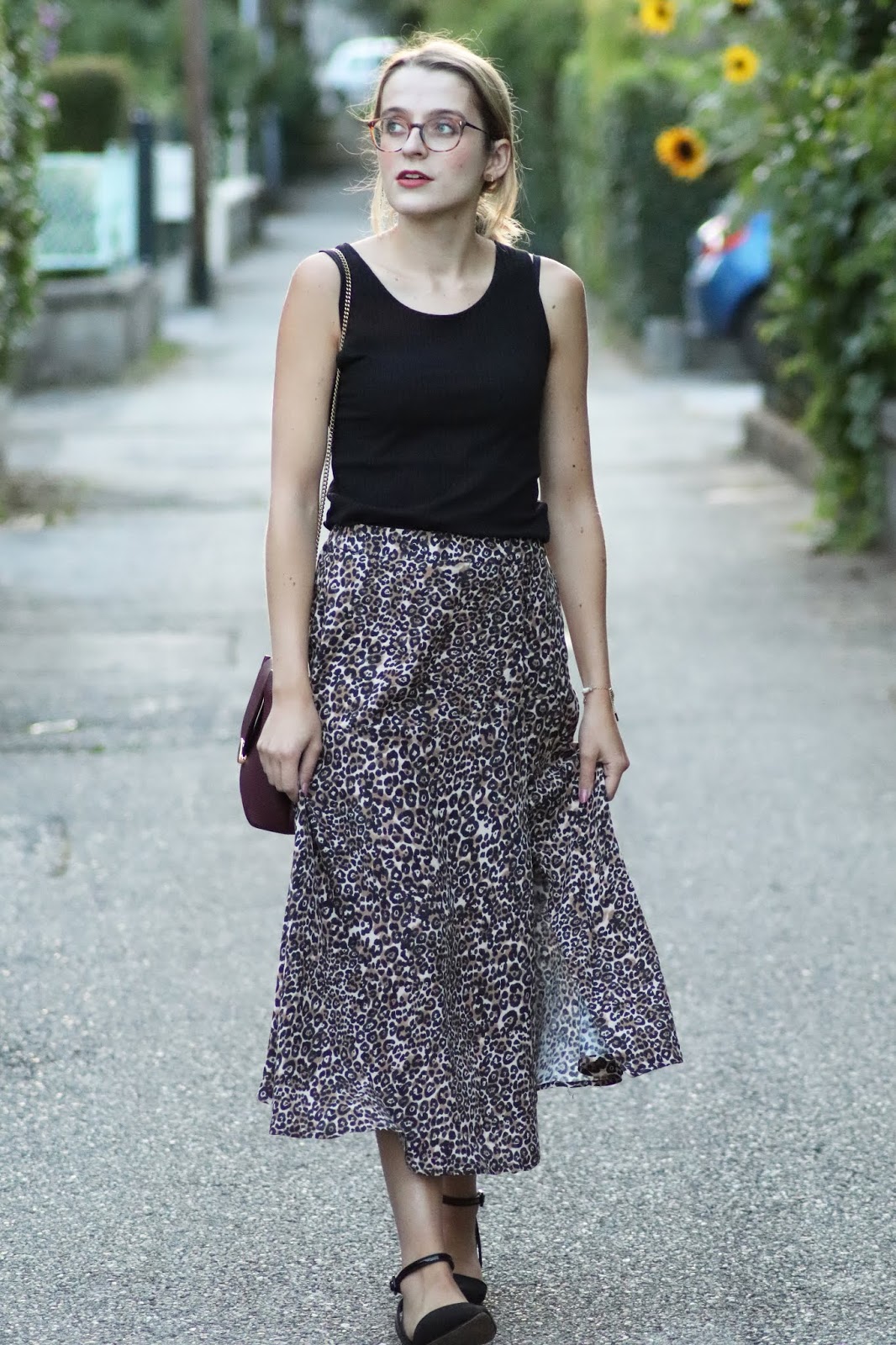 J’avais très envie de vous montrer ma nouvelle jupe imprimé léopard shoppée chez Stradivarius lors d’un cours séjour à Paris semaine dernière. Je pense que ce n’est pas une nouveauté vous le savez, mais j’adore la marque espagnole, qui propose des vêtements très fashion, à des prix vraiment abordables. Bon au niveau de la qualité, la robe que je portais dans mon dernier look s’est décousue, ainsi que la jupe d’une copine… J’aime beaucoup le léopard, et ce jour-là je suis aussi repartie avec une robe à l’imprimé similaire ahah. Je la porte avec mon nouveau petit haut Mango, acheté à Milan pour 10€, que je porte pour au moins la troisième fois. Tout simple, confortable, il va avec tout.