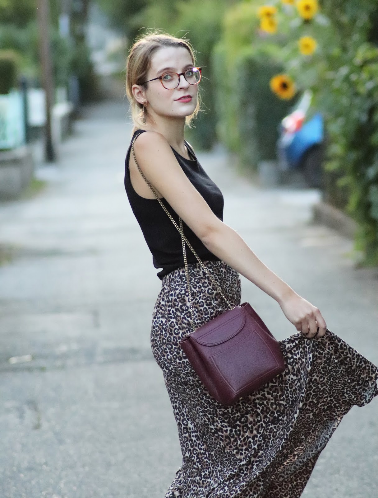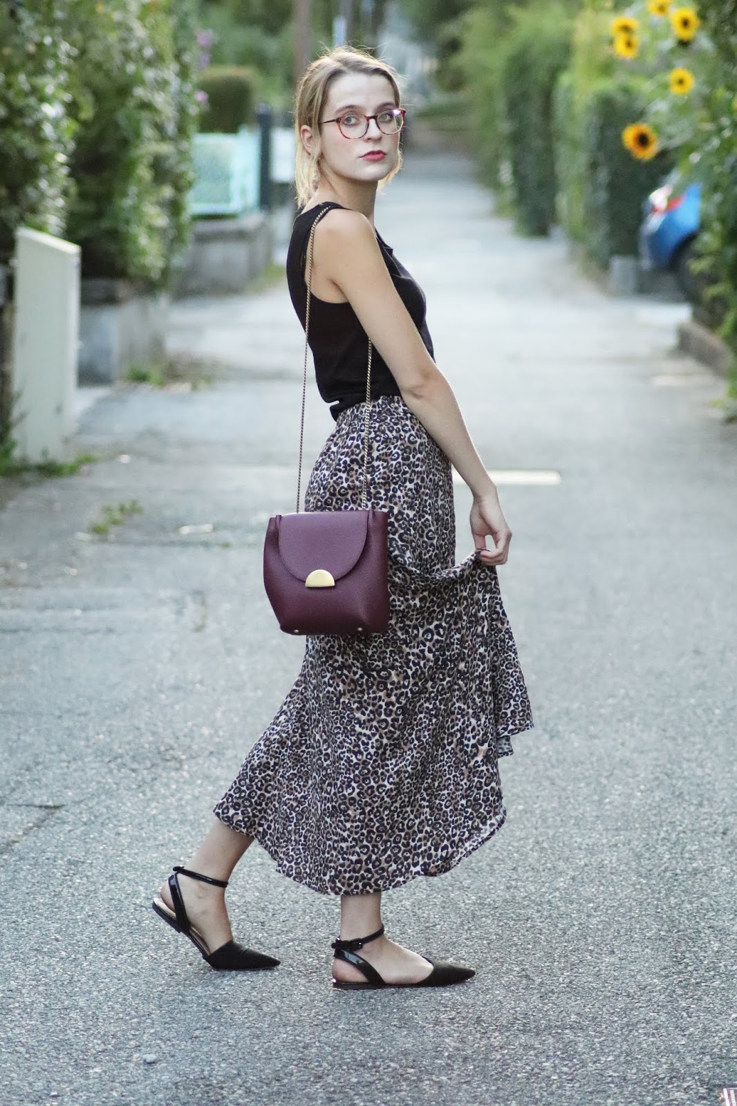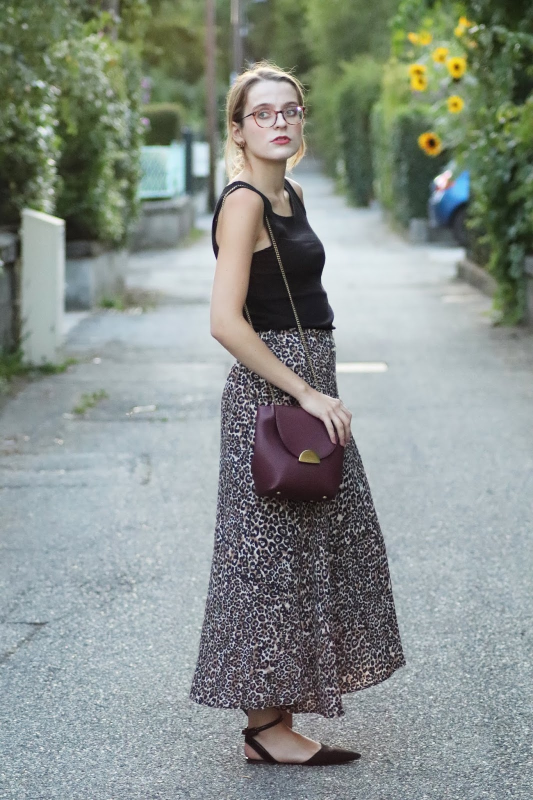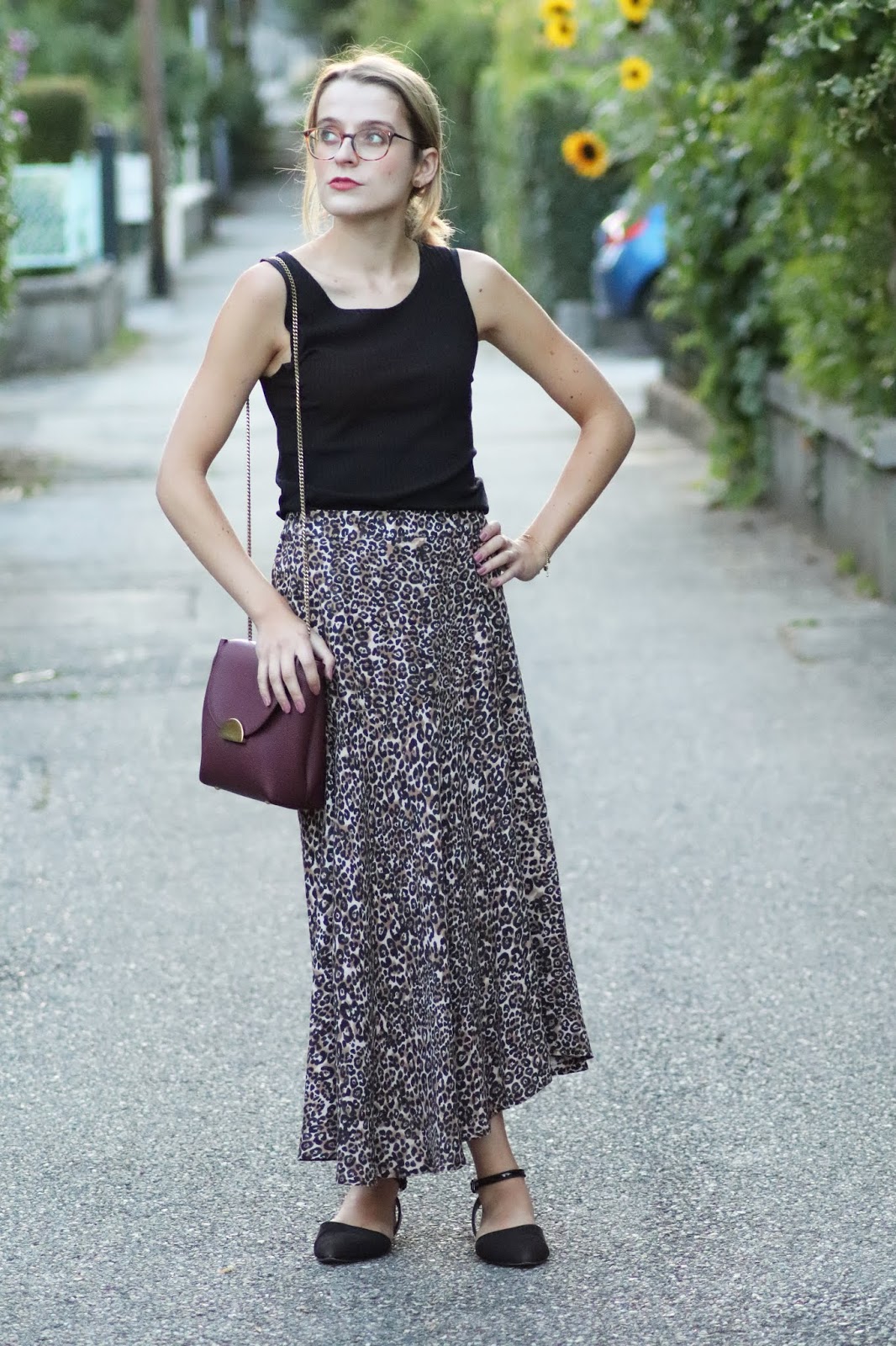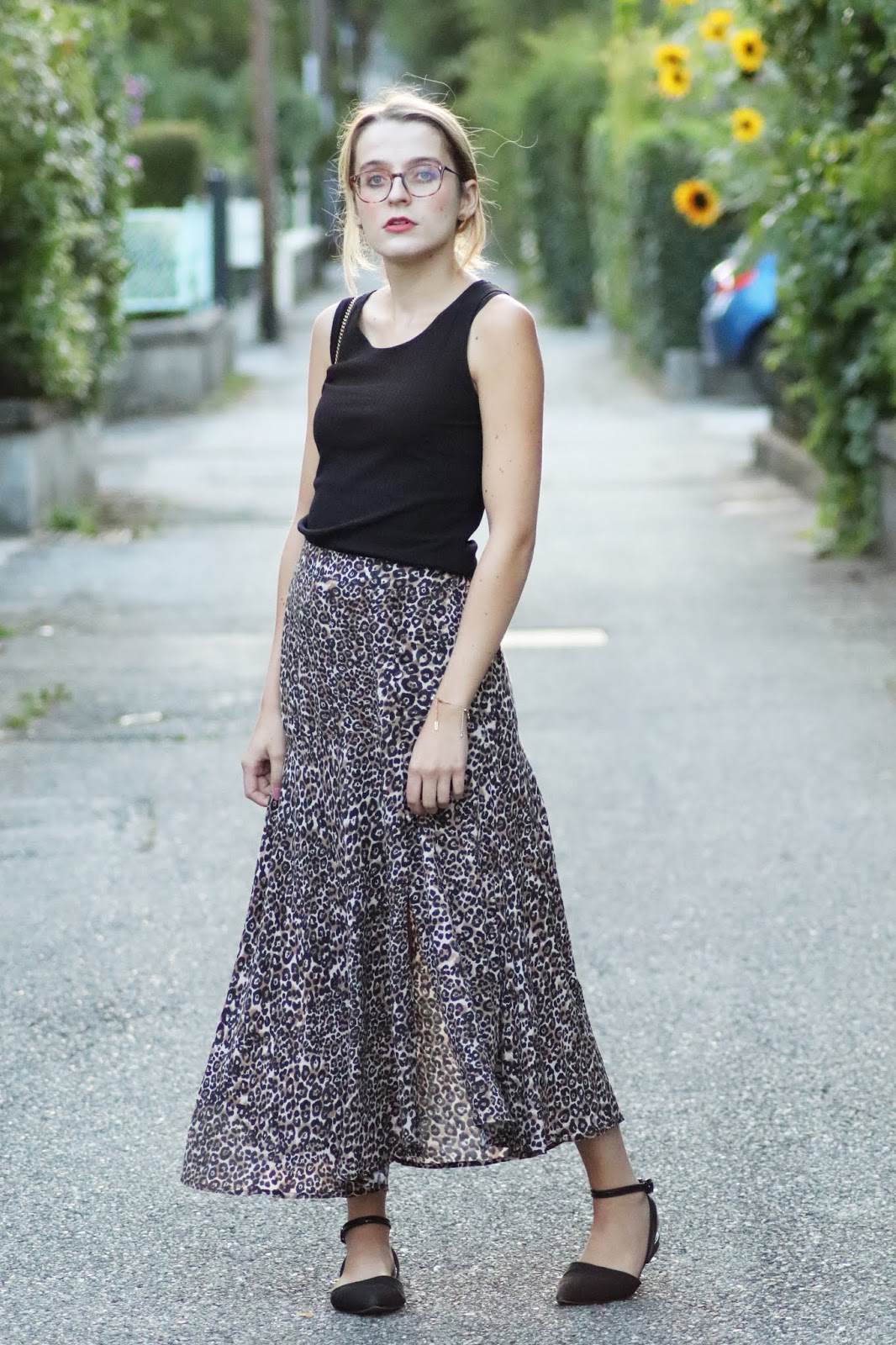 J’avais très envie de vous montrer ma nouvelle jupe imprimé léopard shoppée chez Stradivarius lors d’un cours séjour à Paris semaine dernière. Je pense que ce n’est pas une nouveauté vous le savez, mais j’adore la marque espagnole, qui propose des vêtements très fashion, à des prix vraiment abordables. Bon au niveau de la qualité, la robe que je portais dans mon dernier look s’est décousue, ainsi que la jupe d’une copine… J’aime beaucoup le léopard, et ce jour-là je suis aussi repartie avec une robe à l’imprimé similaire ahah. Je la porte avec mon nouveau petit haut Mango, acheté à Milan pour 10€, que je porte pour au moins la troisième fois. Tout simple, confortable, il va avec tout.