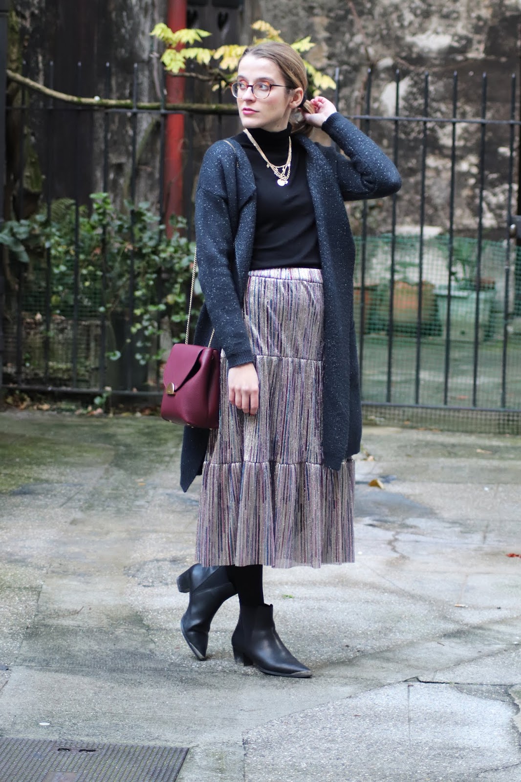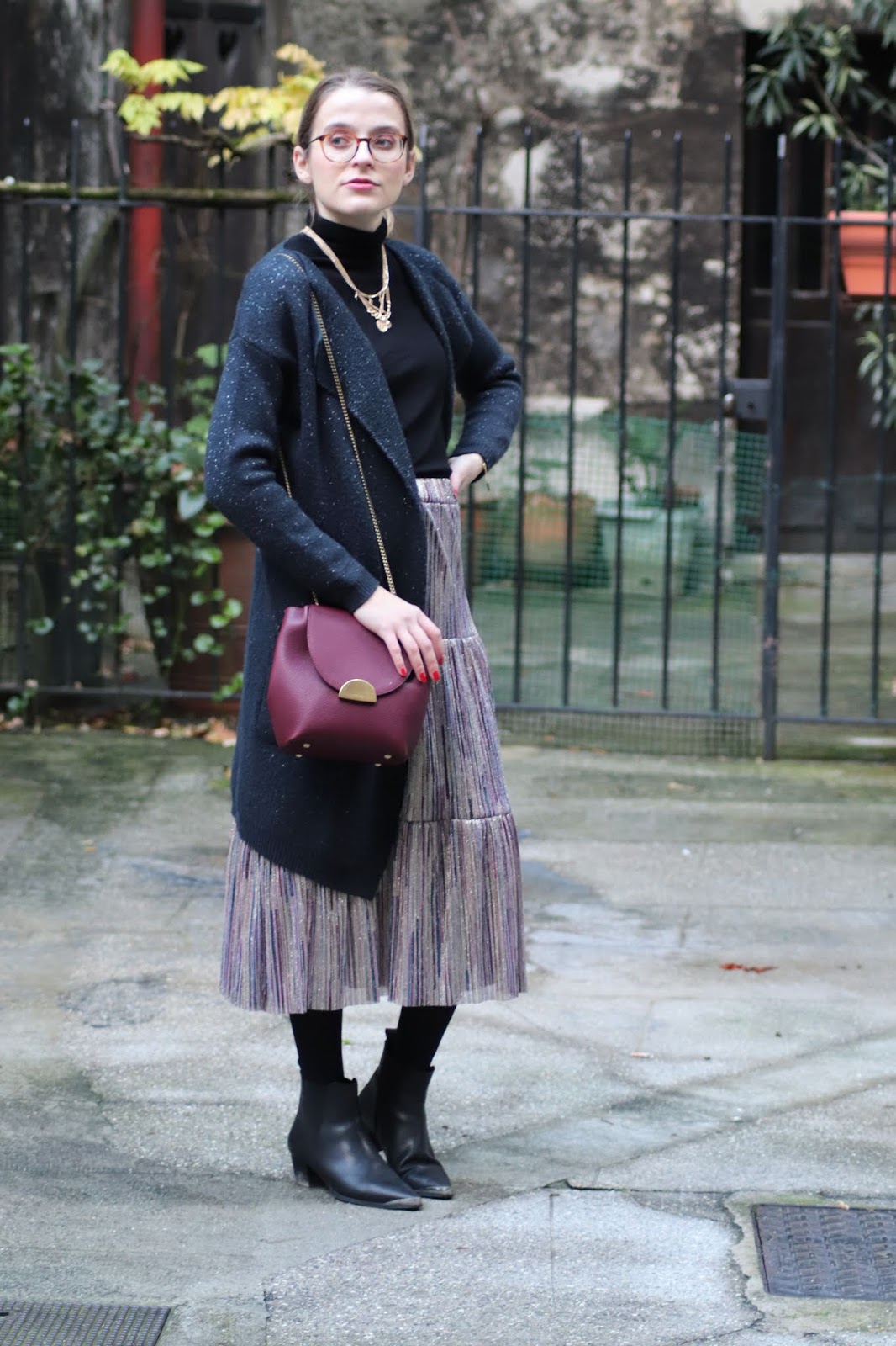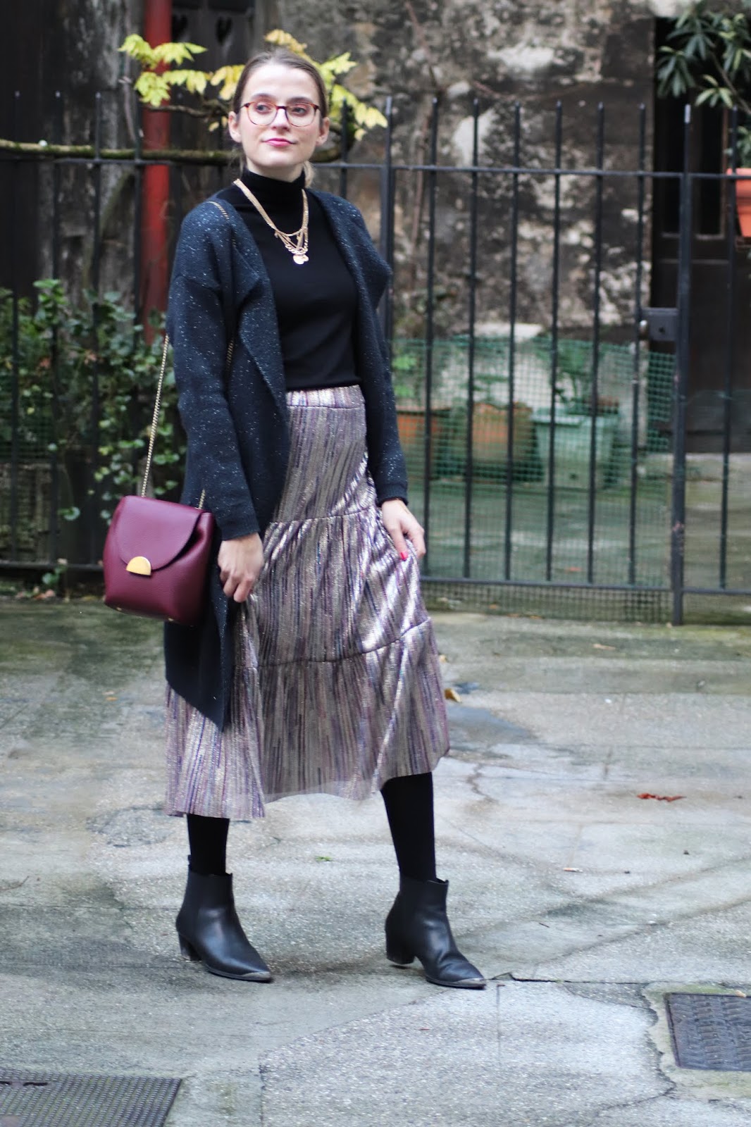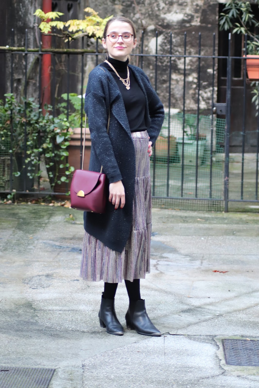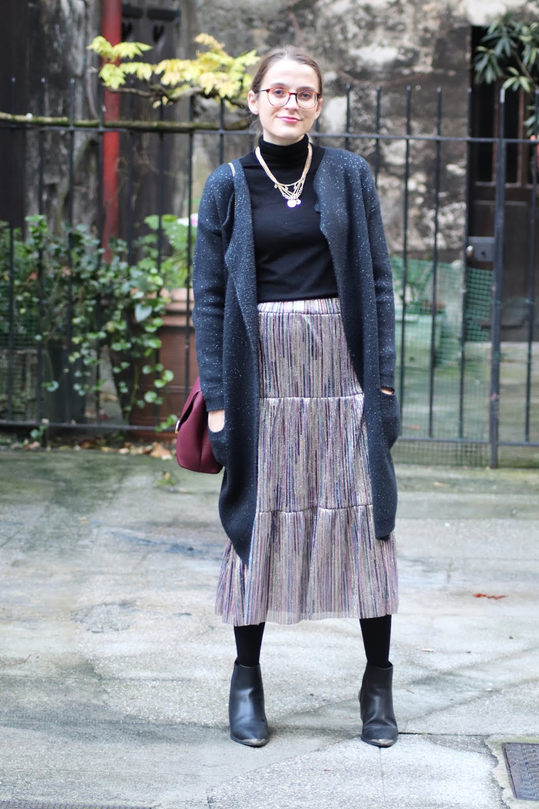 Gilet/Jacket: Promod; Haut/Top: Zara; Jupe/Skirt: Johanna Paris; Sac/Purse: Polene; Bottines/Booties: Asos