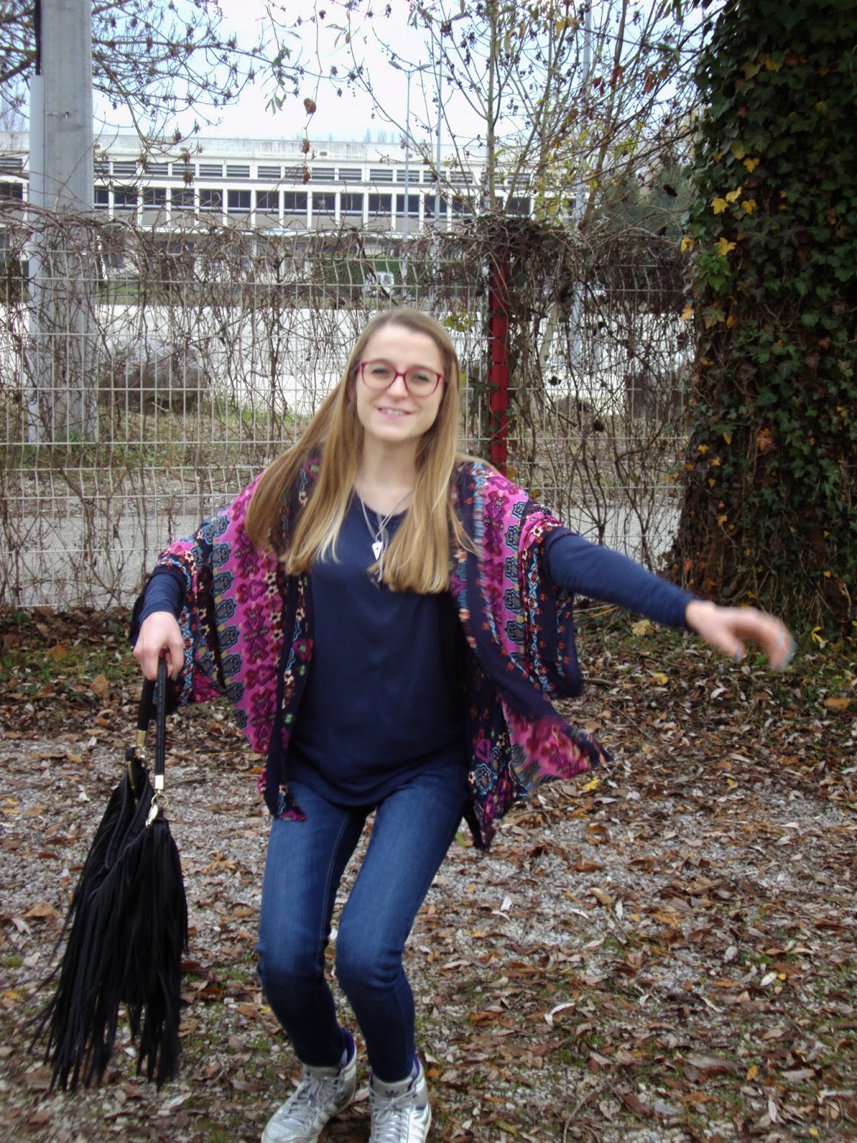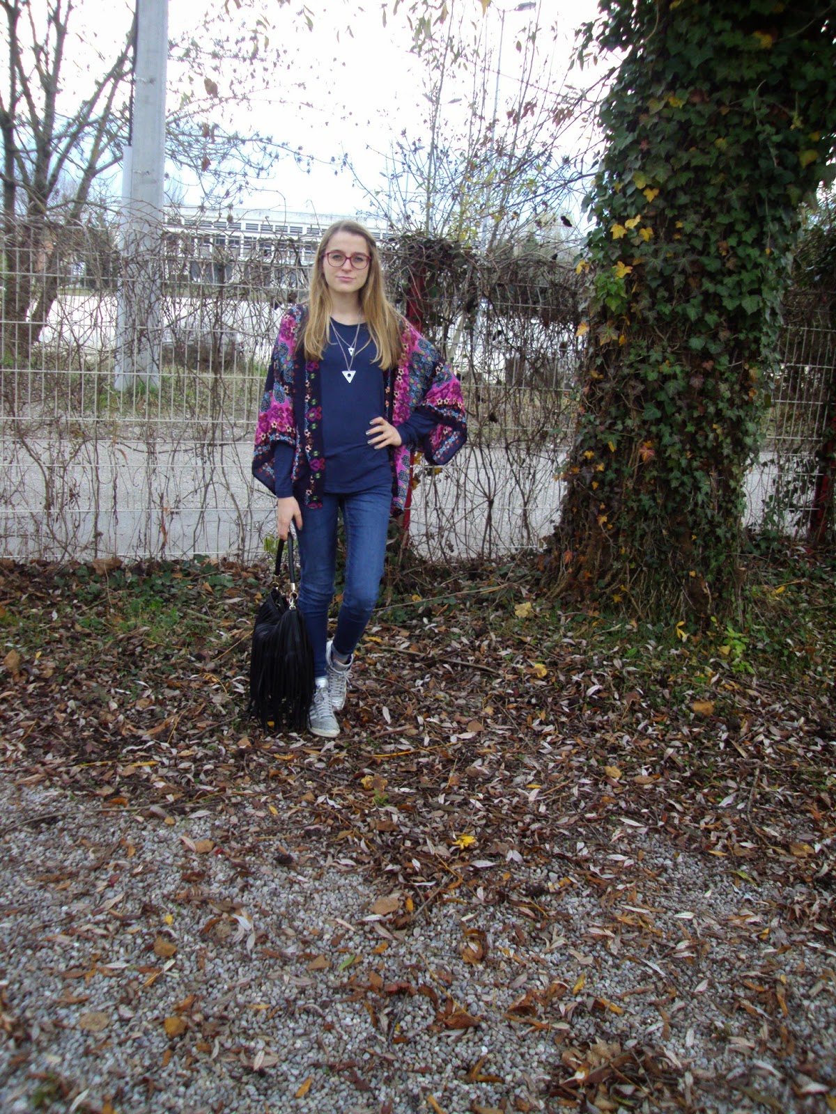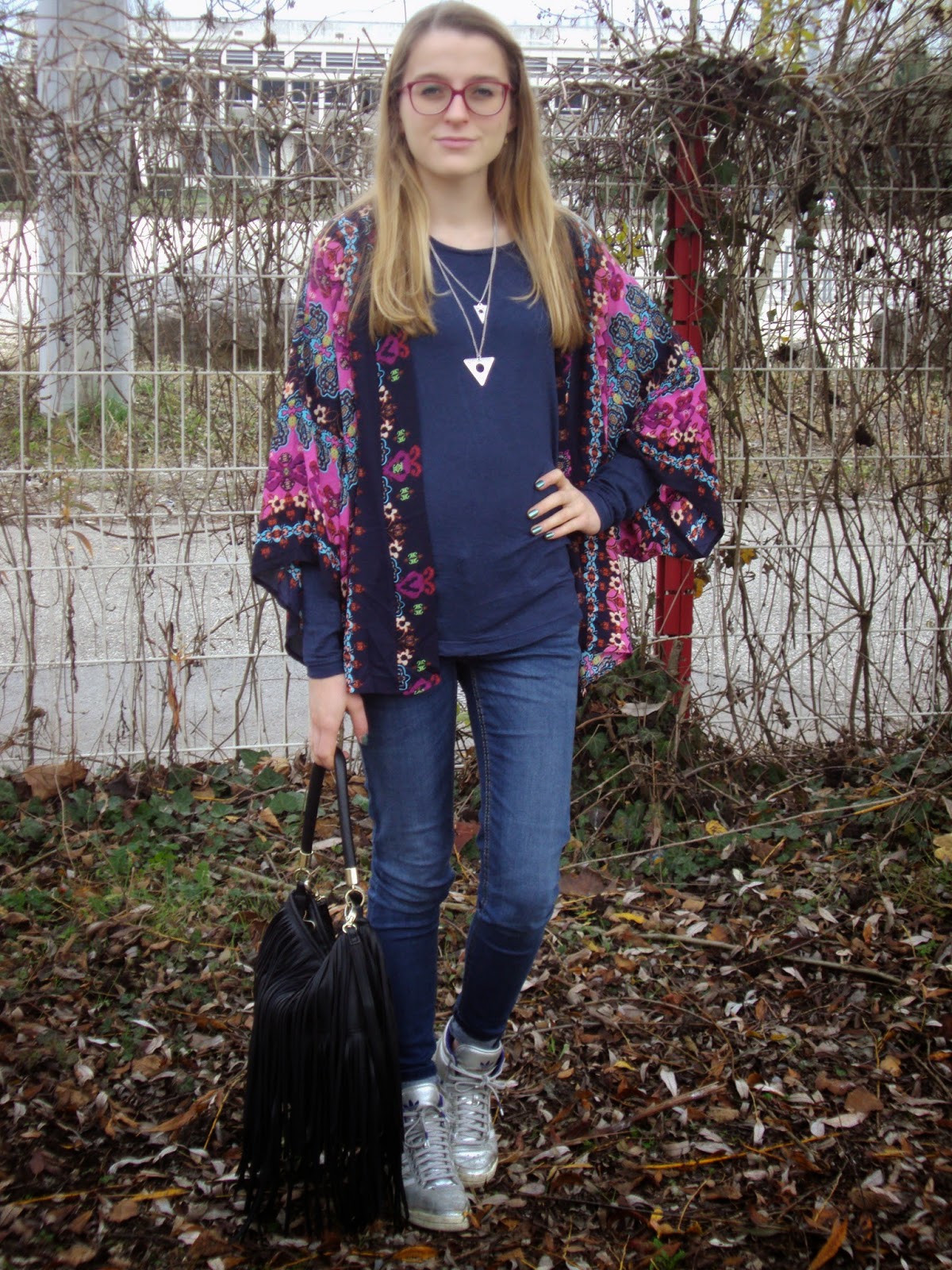 Kimono: Oasap; Haut/Shirt: Jennyfer; Collier/Necklace: Brandy Melville; Sac/Bag: H&M; Jean: Levi’s; Sneakers: Adidas de Rome