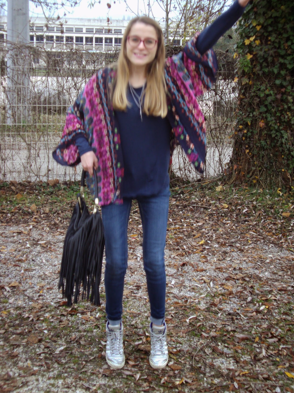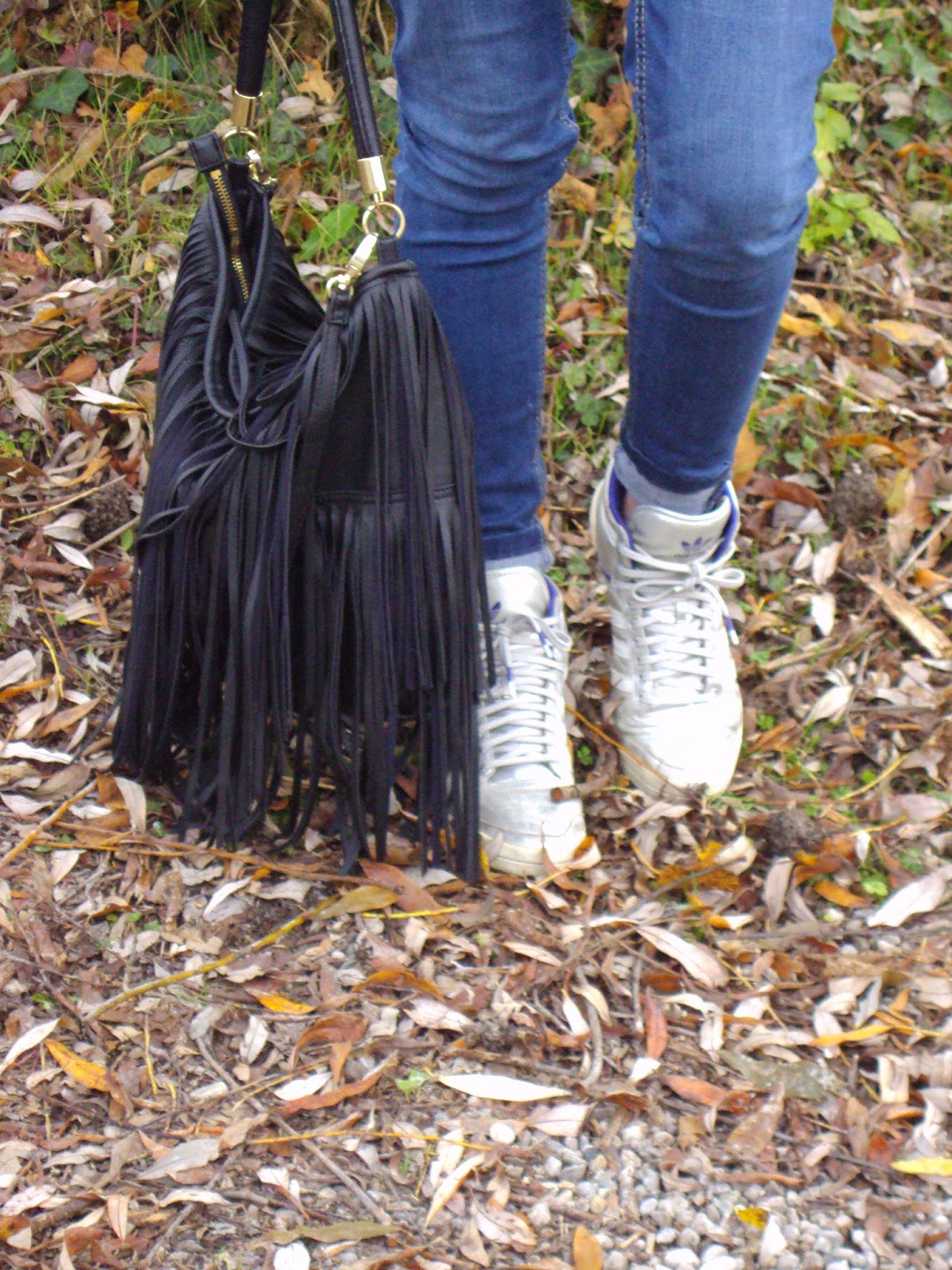 Mes Adidas pas mises depuis très longtemps, mon sac frangé et voilààà! Au niveau du make-up, je porte un crayon baume issu de la nouvelle ligne de make-up de Etam, pareil pour le crayon pour les yeux ainsi que ce magnifique vernis. Je vous en reparle aussi bientôt de la nouvelle ligne d’Etam. Enorme coup de coeur!