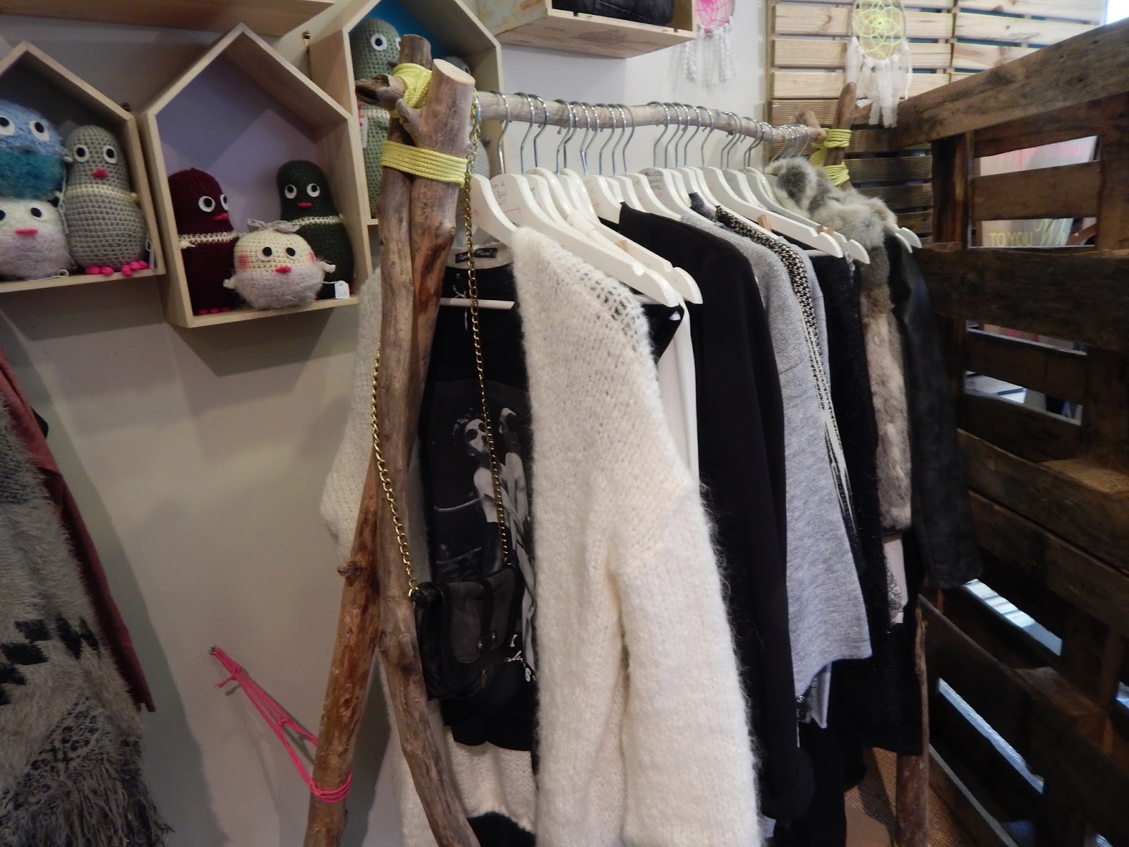 C’est pourtant une rue où je me gare souvent, et je ne l’avais jamais remarquée. Depuis j’y suis allée plusieurs fois et j’ai été emballée par la beauté de cette boutique. Esthétiquement parlant, c’est une des plus jolies qu’il m’ait été donné de voir. Du coup, la troisième fois que j’y suis venue après avoir acheté deux Paulette ( un pour moi et un pour une amie), et lorgné plusieurs fois sur le petit gilet blanc frangé que vous allez voir dans les photos, je me suis dit qu’elle méritait largement que j’en dédie un article spécial, et la rubrique « L’adresse » s’y prêtait totalement. La responsable de la boutique est adorable et lorsque je lui ai proposé, elle a tout de suite accepté. Je précise que Charly&Gaby est un concept-store qui revend le magazine Paulette ( important), et que la responsable ( Charlotte d’où le nom Charly), créée elle même les sacs vendus dans la boutique ( le rose façon cartable est mon préféré, il me fait un peu penser au Alexa de Mulberry), ainsi que les petites peluches trop mignonnes, ainsi que les attrape-rêves et les petits paniers en osier. J’ai été super impressionnée par cette jeune femme qui créée pleins de choses et qui a même un atelier pour créer des sacs dans l’arrière boutique. J’adore l’univers qu’elle a su donner à sa boutique qui est à son image: élégante, jolie et sophistiquée. Je vous conseille très fortement d’y aller. D’ailleurs vous pouvez la suivre sur son