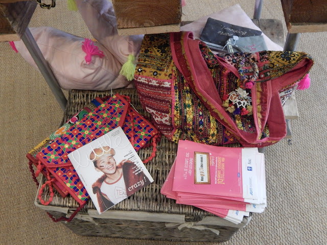 | Cette jolie petite table où il y a des carnets, bracelet, pochettes, Paulette et petites peluches. |