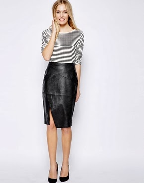 Jupe en cuir Oasis sur Asos, 63 €. Un rendu sexy avec le cuir et la fente sur le côté