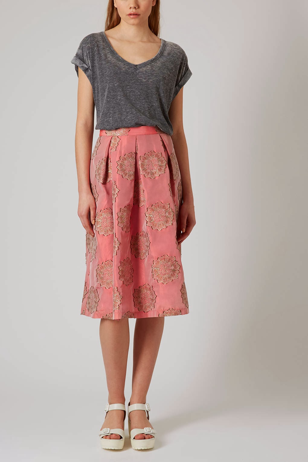 Voilà une petite sélection de jupes midi colorées,  en vinyle, en neoprene, en cuir, en jacquard, en coton ou en taffetas, toutes ces jupes nous montrent que la jupe midi nous donne un coup de jeune.