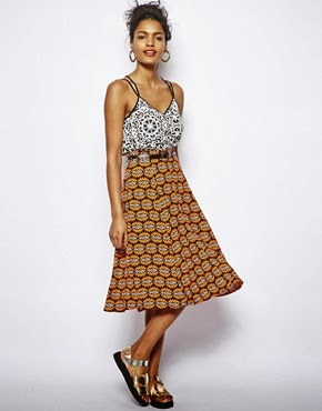 Jupe River Island imprimée,  42 € sur Asos, avec un rendu ethnique grâce au  mix d’imprimés entre le haut et la jupe.