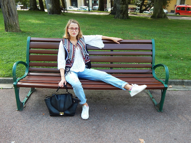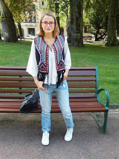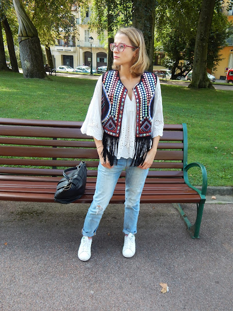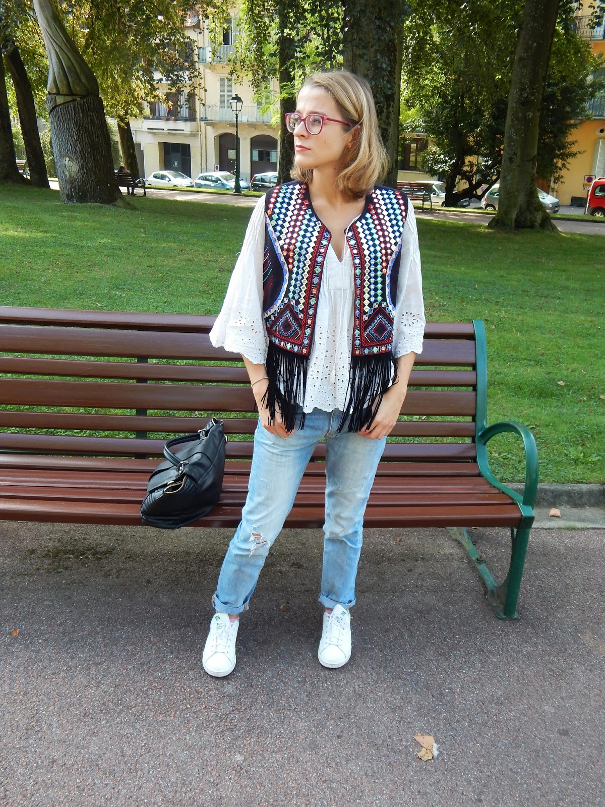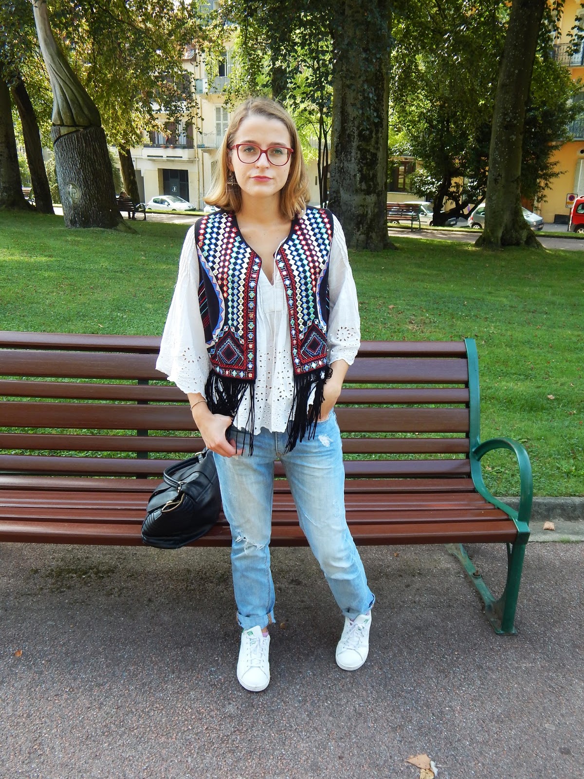 Blouse: Zara; Gilet/Jacket: Vis ta vie chez Charly&Gaby; Jean; Sac/Bag: Pimkie; Baskets/Sneakers: Stan smith