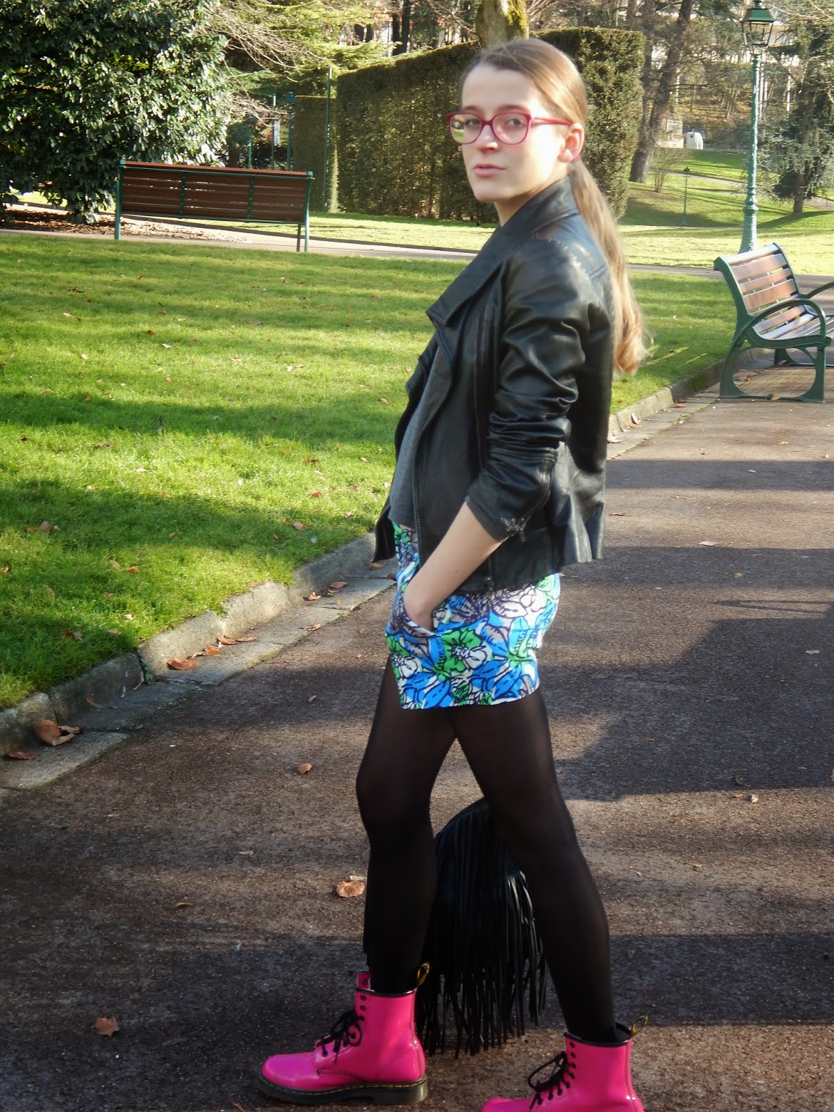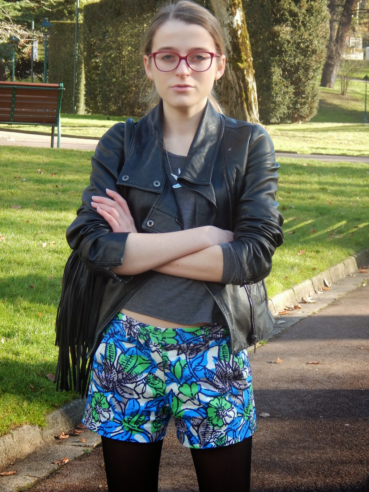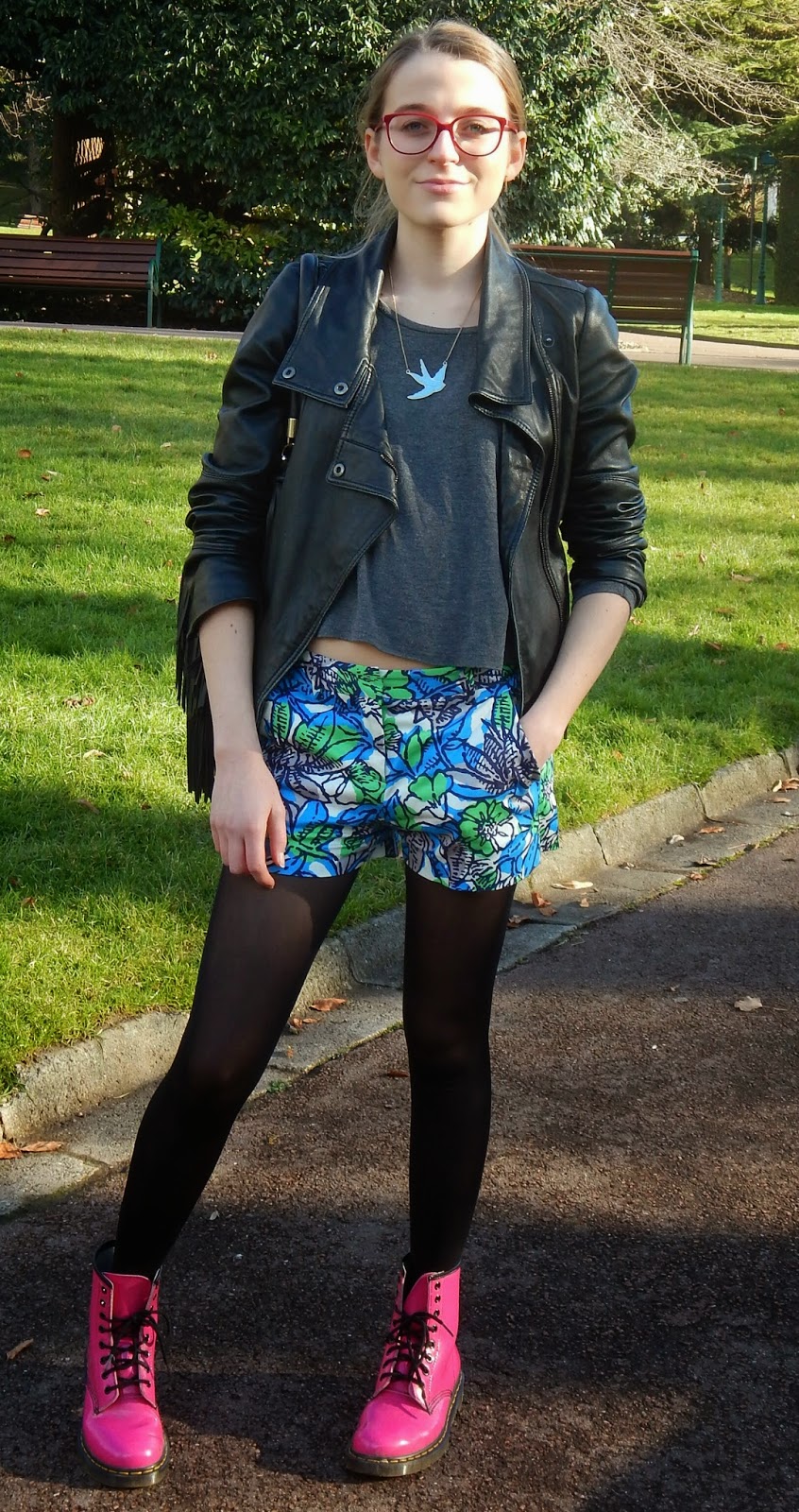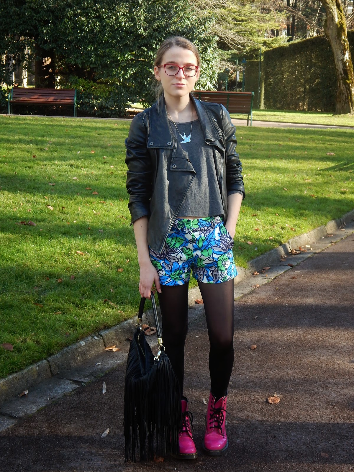 Veste/Jacket: Mango; Haut/Shirt: Brandy Melville; Collier/Necklace: Hema; Short: Zara; Sac/Bag: H&M; Bottes/Boots: Doc Martens