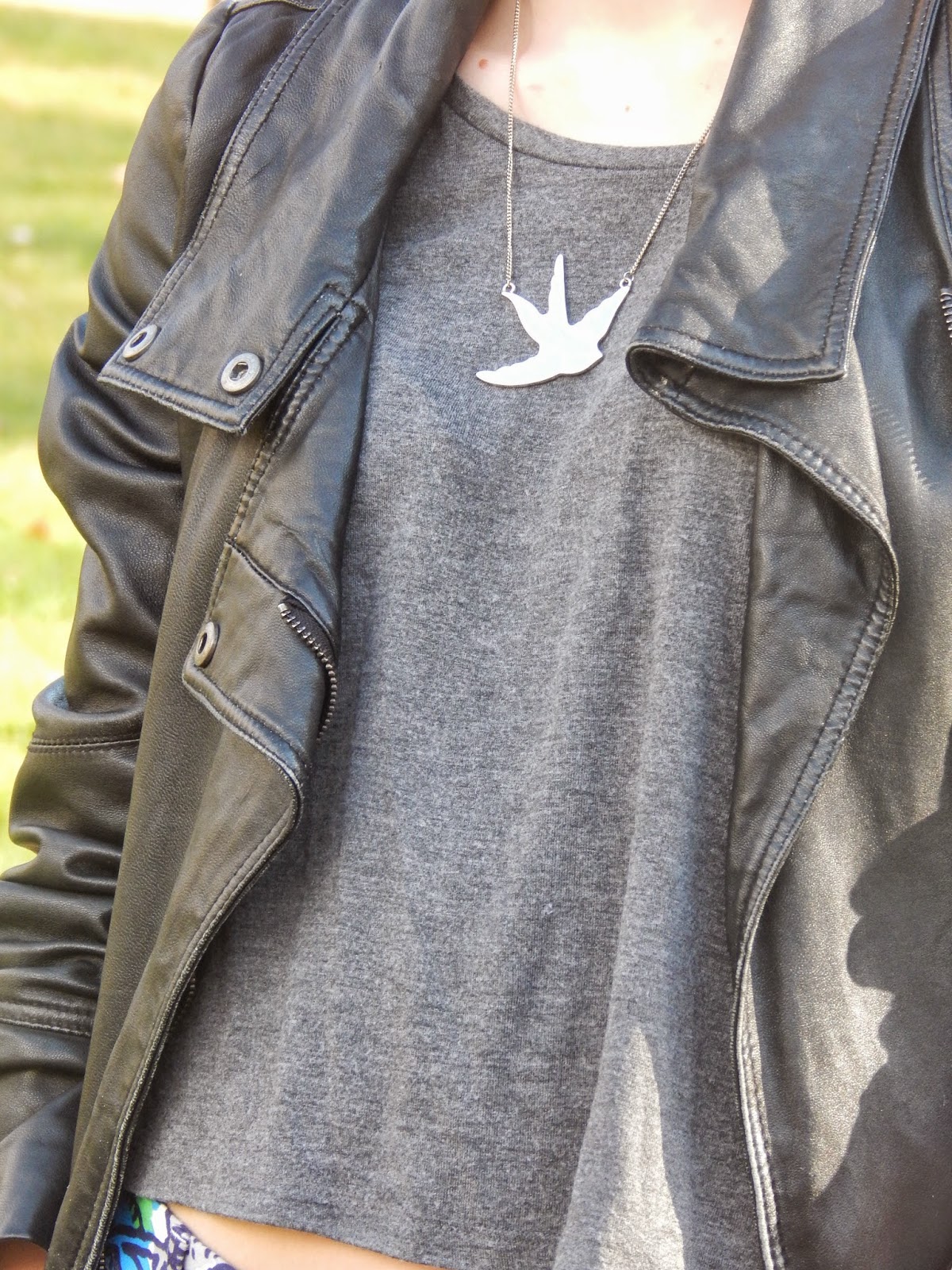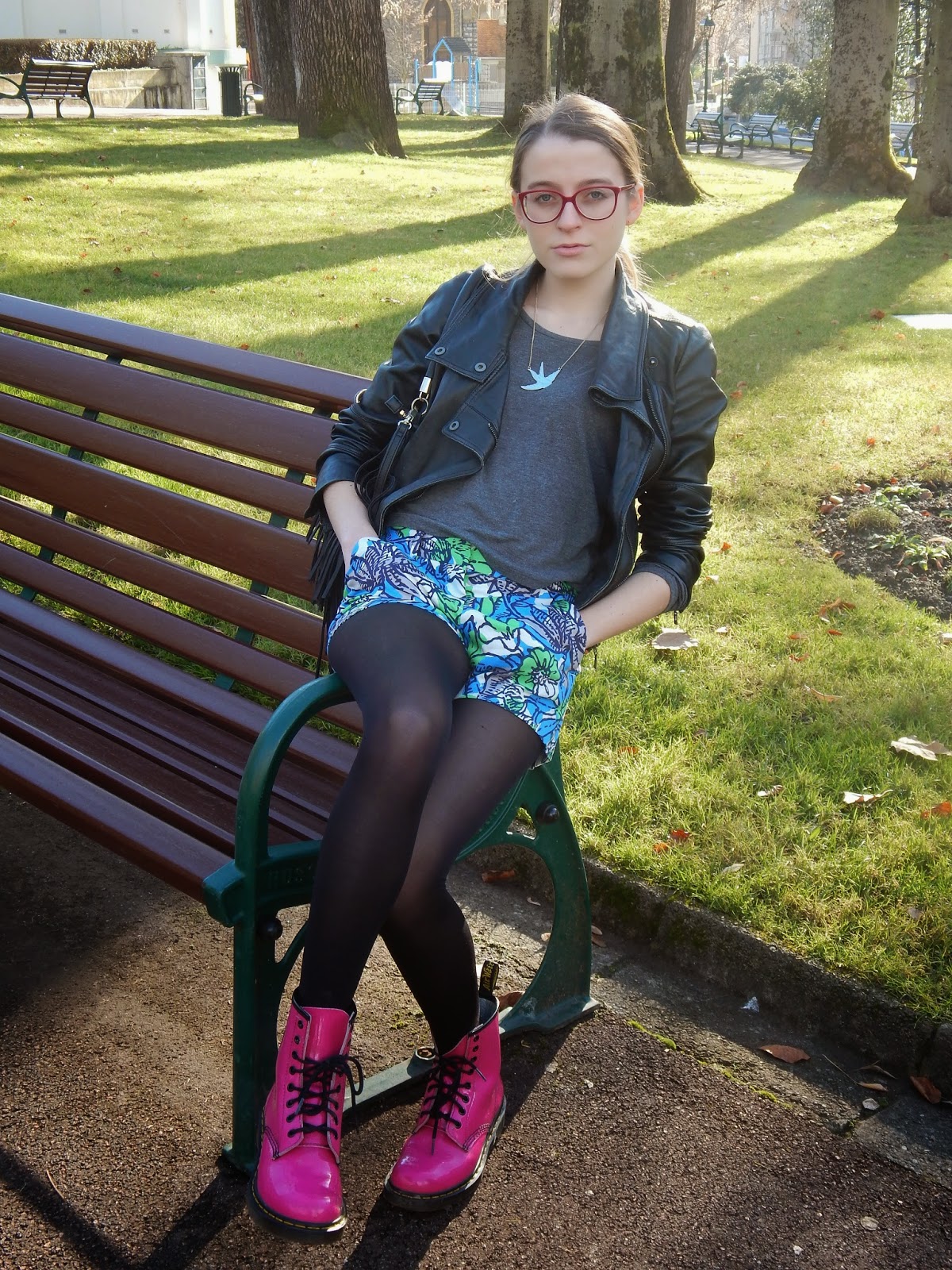 Une tenue shootée pendant les douces températures il y a quelques semaines. Pour changer, j’ai décidé de sortir le short d’été. Avec des collants et le tour est joué. Parce que les jeans, c’est bon. Mon haut Brandy super soft, comme quoi j’ai bien fait d’acheter mes basiques je les mets vraiment souvent. Mon petit collier oiseau de chez Hema, mon perf Mango ( combien d’années il a celui-là?), et mes Doc Martens. Un look estival qui m’a vraiment plu.