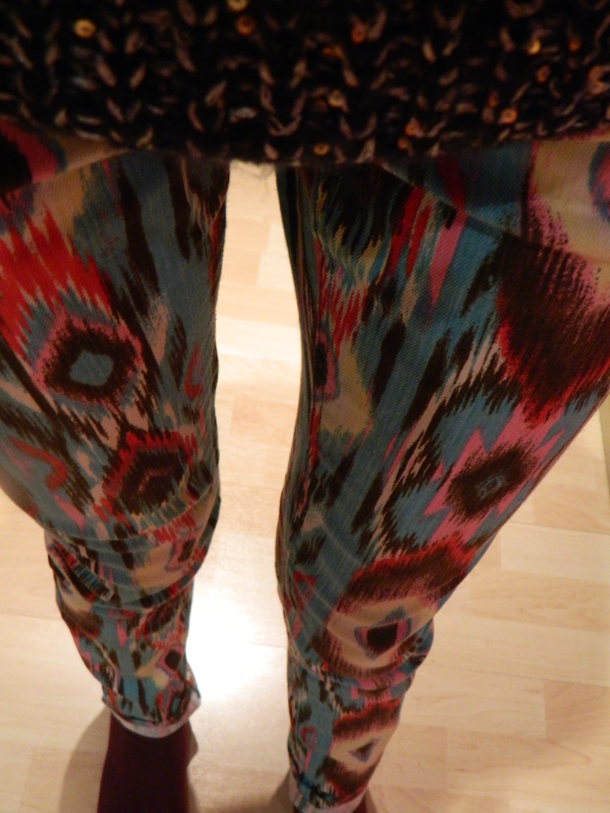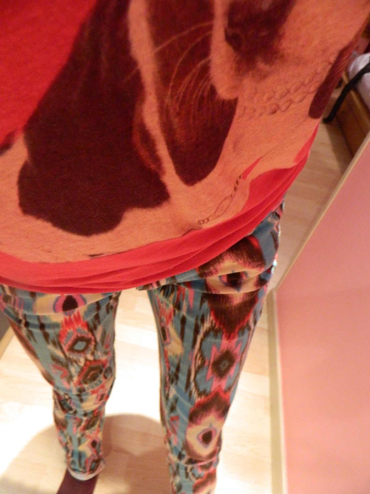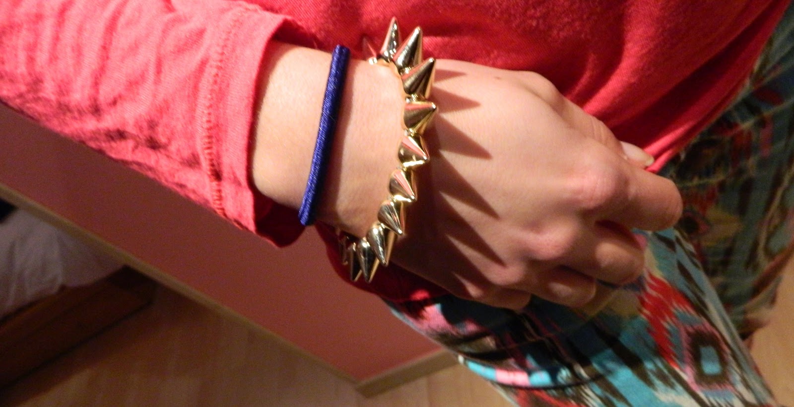 Salut à toutes! Je vous montre enfin mon nouveau bracelet que j’ai gagné lors d’un concours sur le blog de Marine: http://www.tendancez-vous.com/. Il est vraiment trop choupi, n’est pas trop encombrant, bref il est top. Ce jour là, il faisait très froid donc j’ai mis ce haut avec imprimé un peu spécial que j’aimais bien. Un pull par dessus et mon pantalon psyché. Je ne me suis pas foulée, mais bon avec le froid qu’il faisait je m’en fichais un peu. Voilààà